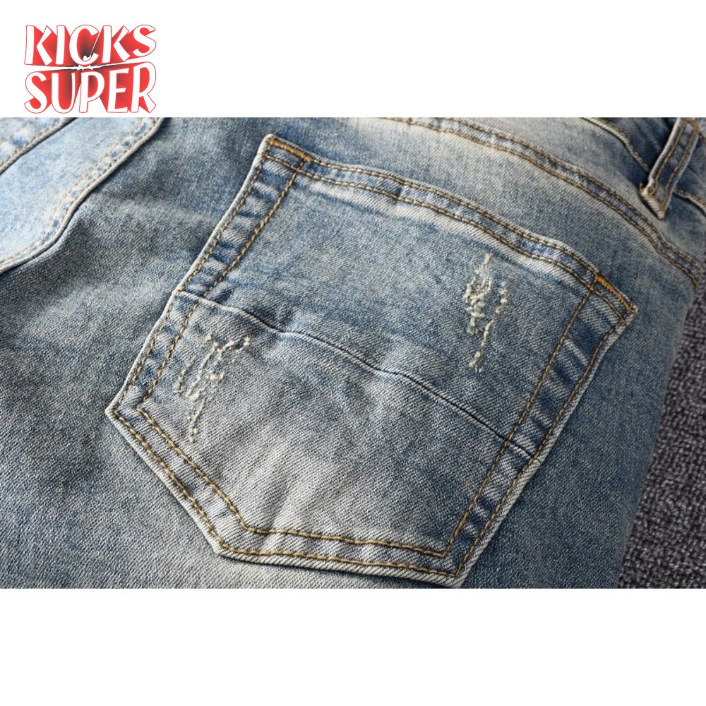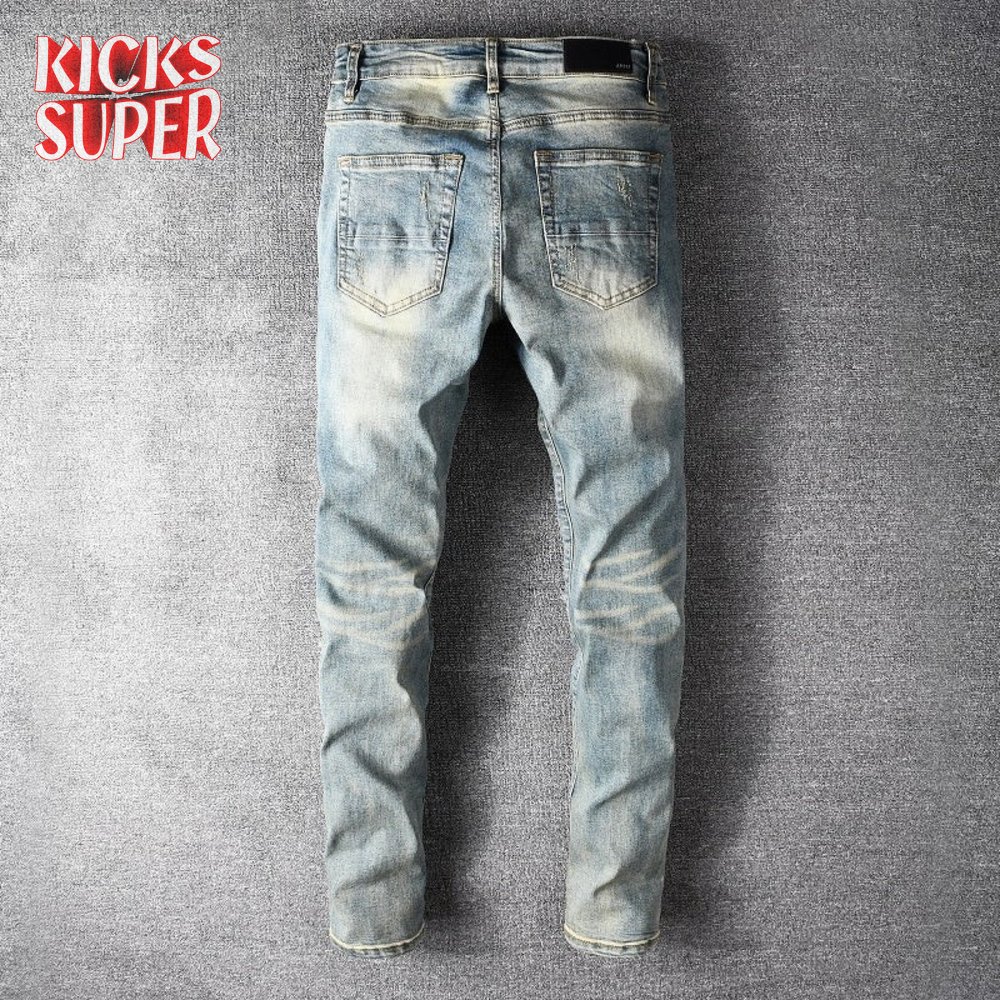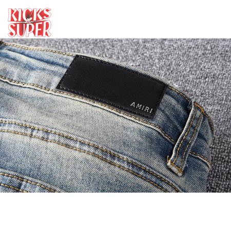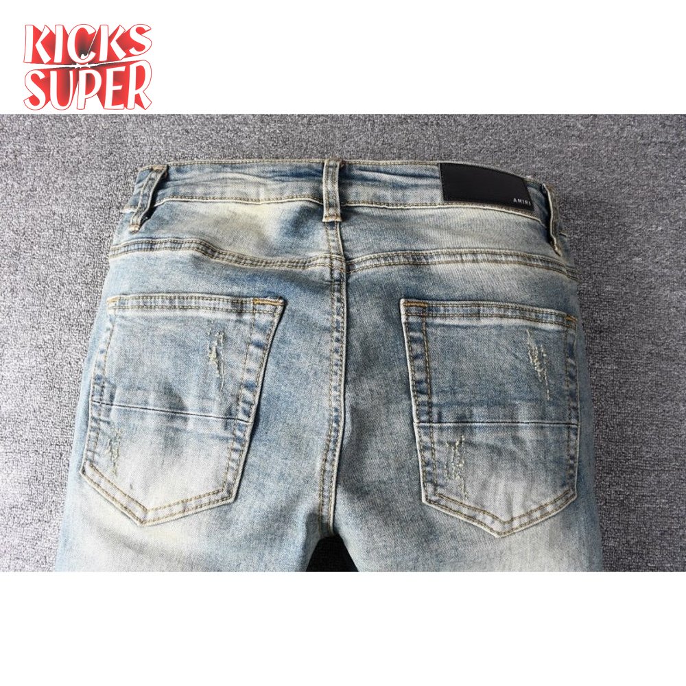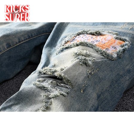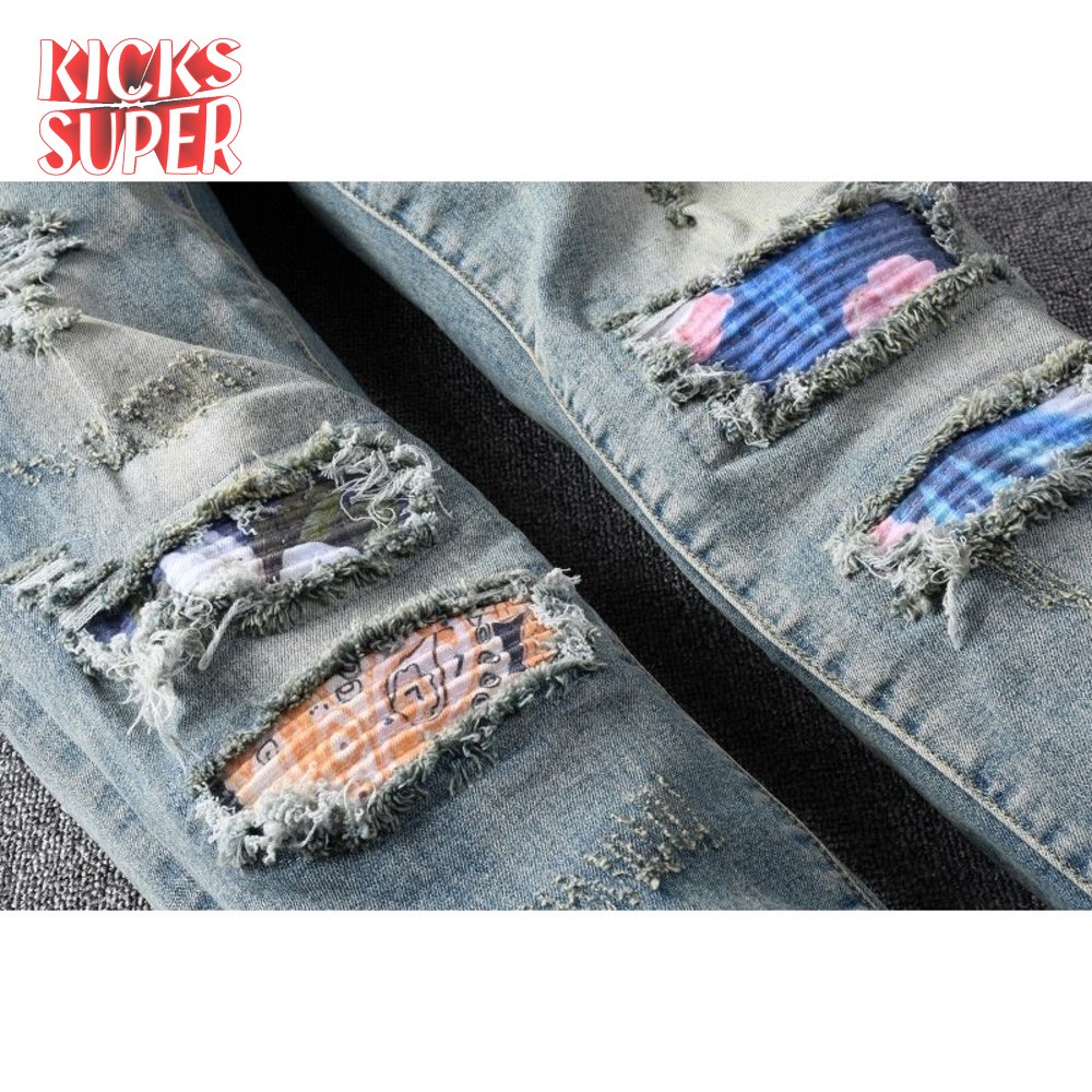 Amiri Bandanna Flower Rip Jeans Light Blue