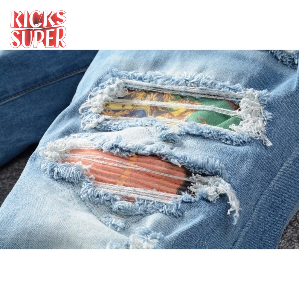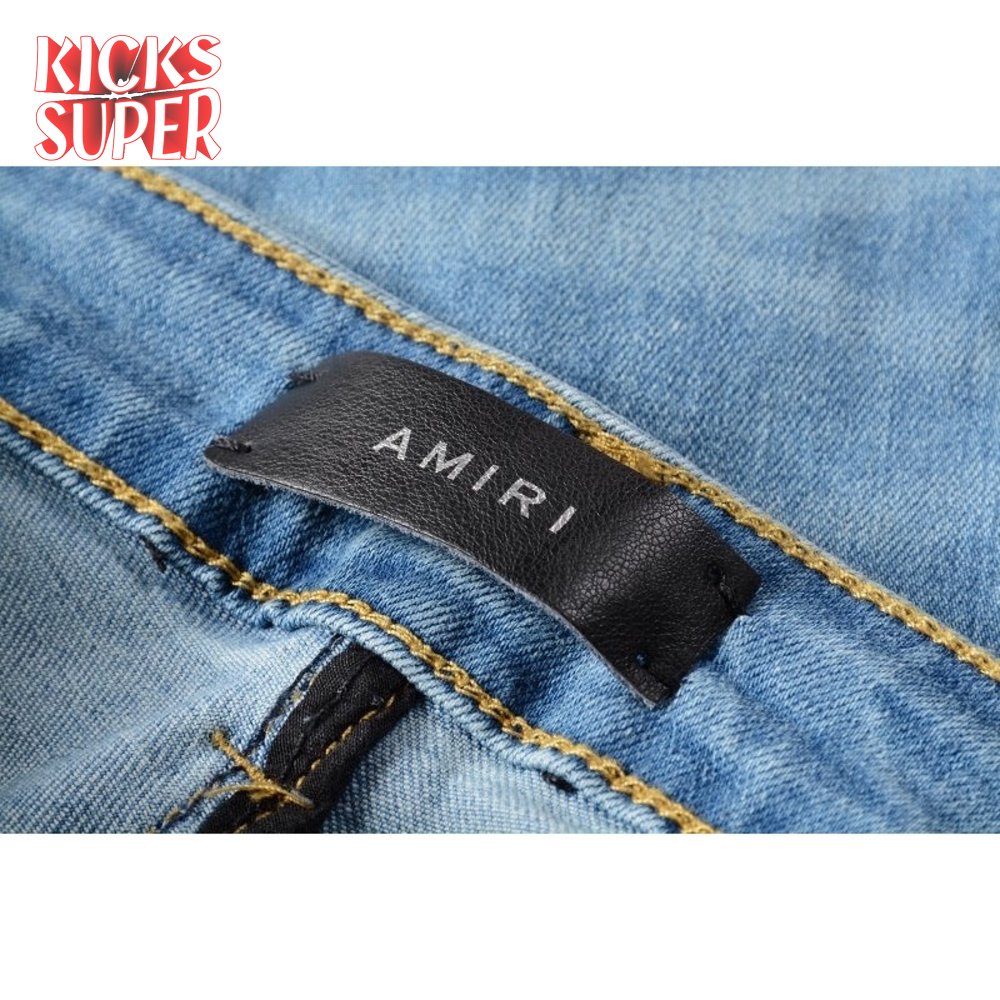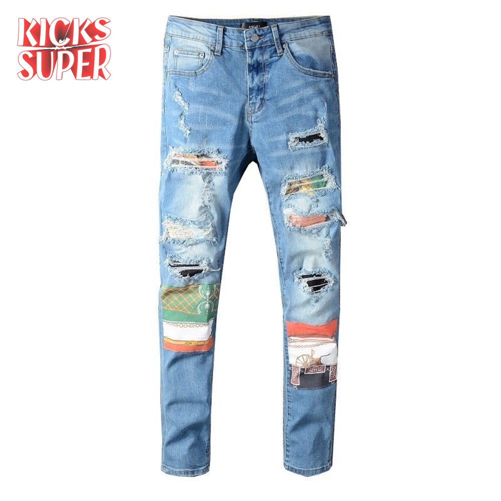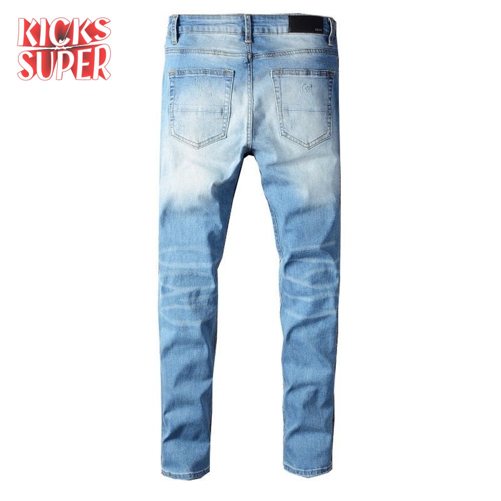 Amiri Chain Design Rip Jeans Light Blue
