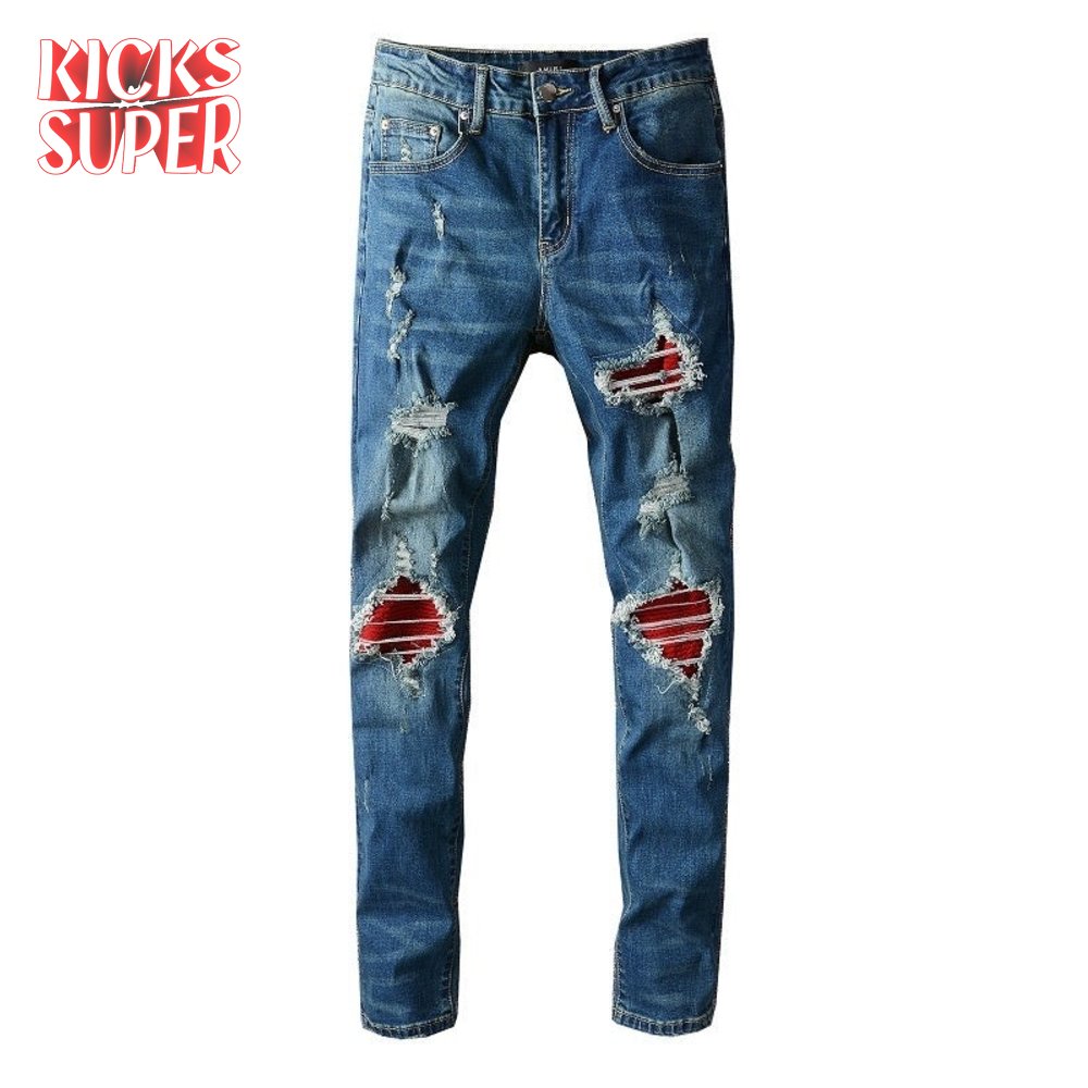 Amiri Design Rip Jeans Dark blue / Red