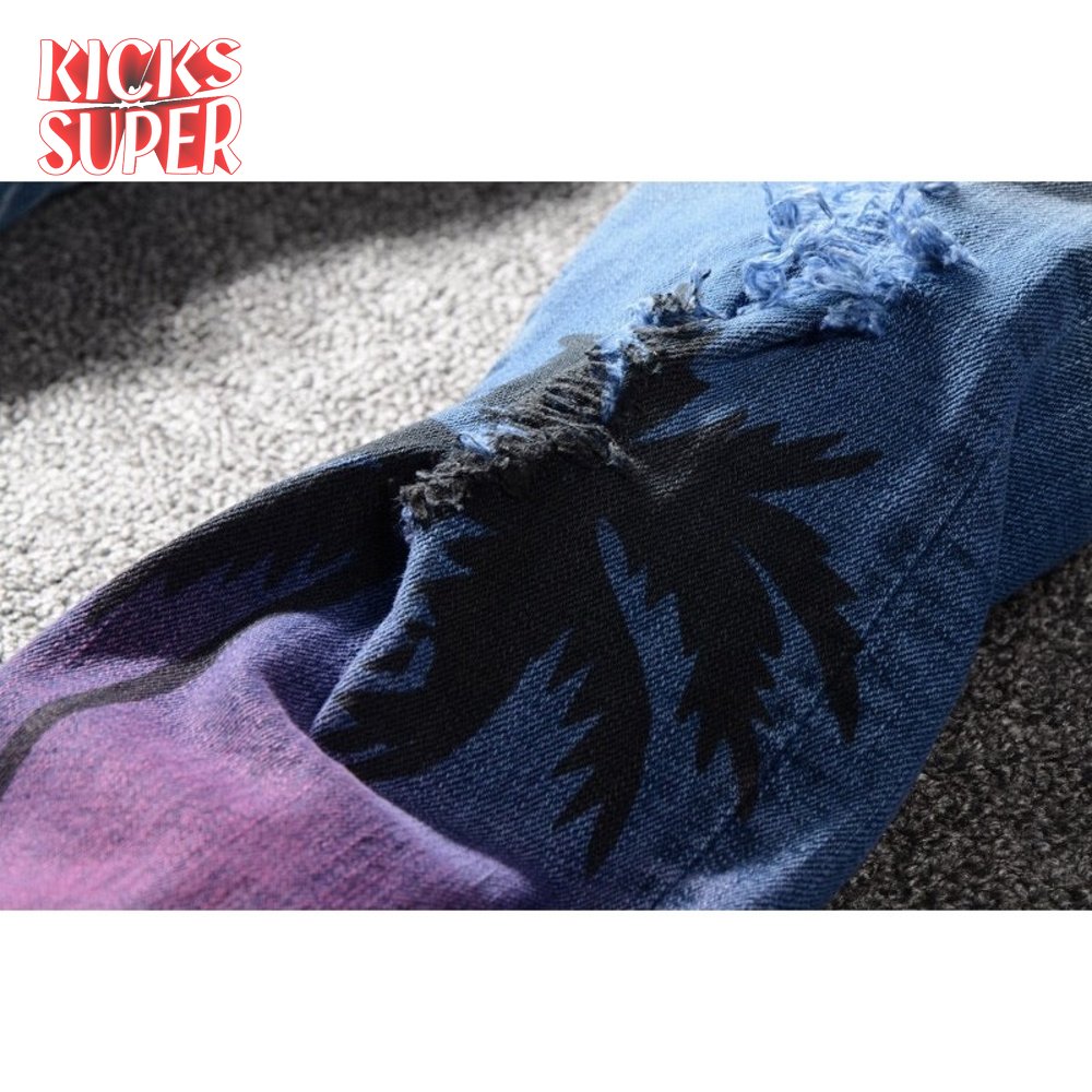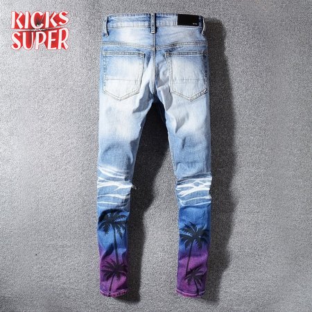 Amiri Palm Tree Jeans Light Blue/ White / Purple