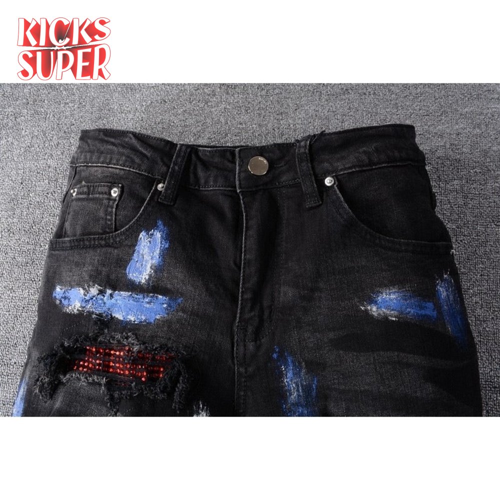 Amiri Rhinestone Splatter Jeans Black/Blue/Red