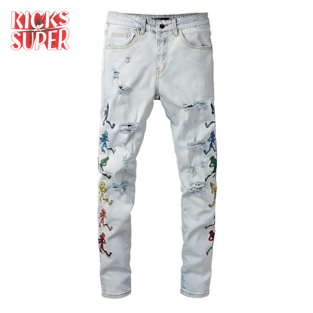 Amiri Skeleton Patch Jeans White