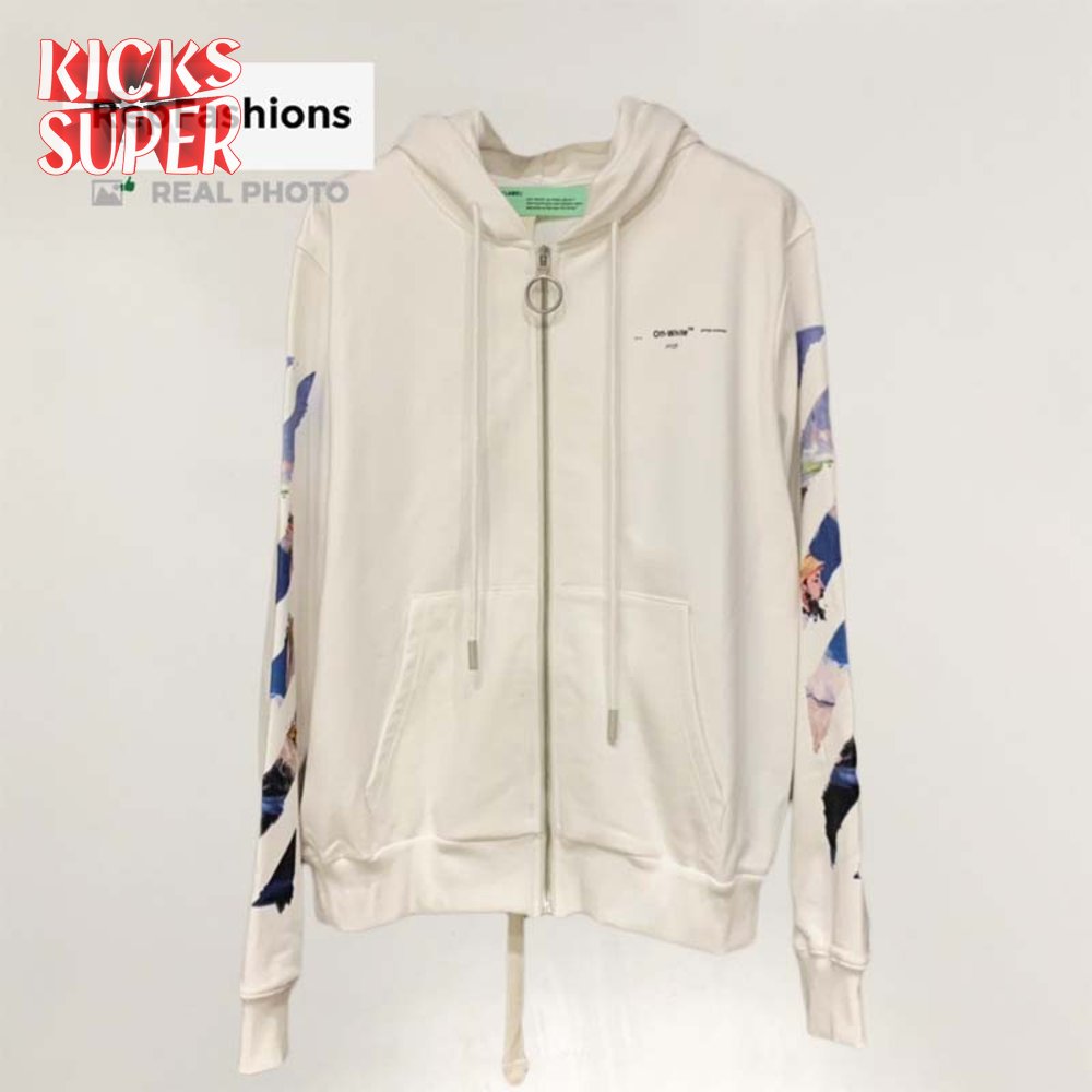 Off White Colored Arrows Zip Up Hoodie