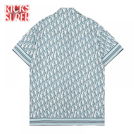 Dior Homme Blue And White Colorblock Print Men's Short-Sleeved Shirt