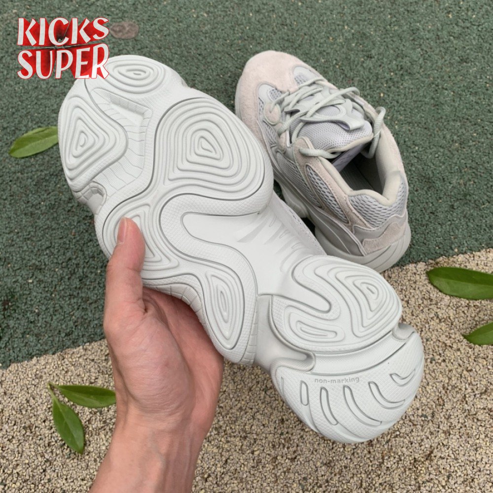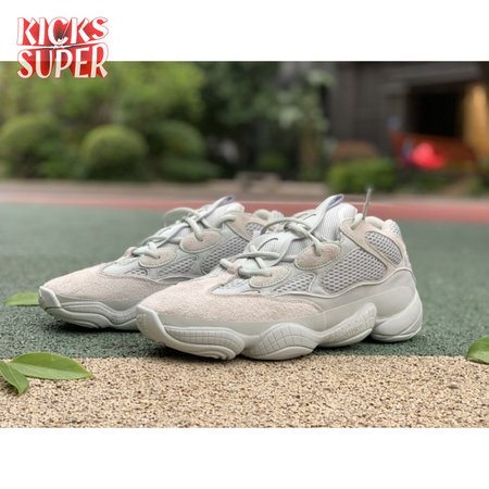 The Yeezy 500 "Salt" sticks with the same monochromatic design used on previous colorways of the bulky lifestyle silhouette. Here, a light grey shade is applied to the layered upper, built with a combination of cow suede, premium leather, mesh and nubuck accents. A rubber wrap atop the midsole provides added durability while reflective trim around the eyelets provide visibility in low-light conditions.