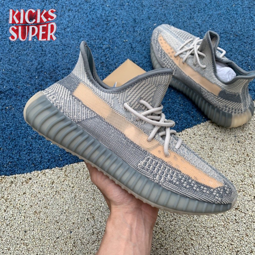 The adidas Yeezy Boost 350 V2 "Ash Blue" carries a re-engineered Primeknit upper constructed from a blend of slate blue, grey and black fibers. A pale yellow hue distinguishes the post-dyed monofilament side stripe woven into the sneaker"s lateral side panel, delivering added breathability and an unexpected pop of color. The sock-like upper rides on a full-length Boost midsole, wrapped up in a semi-translucent rubber cage for improved stability and durability.