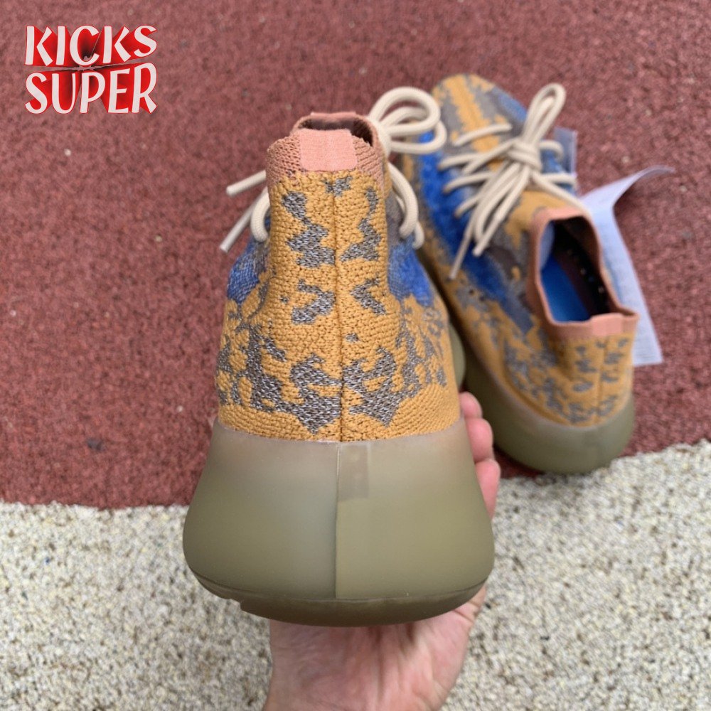 The adidas Yeezy Boost 380 "Blue Oat Reflective" makes use of a Primeknit upper in a blend of orange and brown hues, resulting in a unique camo-like pattern that"s enlivened with a contrasting pop of blue on the translucent monofilament window. Reflective thread is woven into the sock-like build, offering added visibility in low-light conditions. The responsive Boost midsole is encased in semi-translucent rubber and supported by a herringbone rubber outsole.