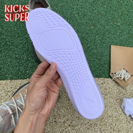 The Yeezy Boost 380 "Pepper Non-Reflective" applies a neutral color scheme to its breathable Primeknit upper, featuring a snug, sock-like fit that allows for a secure fit with or without laces. A muddy tan finish distinguishes the sneaker"s translucent monofilament window, allowing the signature detail to stand out against a knit backdrop in lighter grey and Off-White tones. A full-length Boost midsole supports the lightweight build, equipped with a raised heel for a smooth ride.