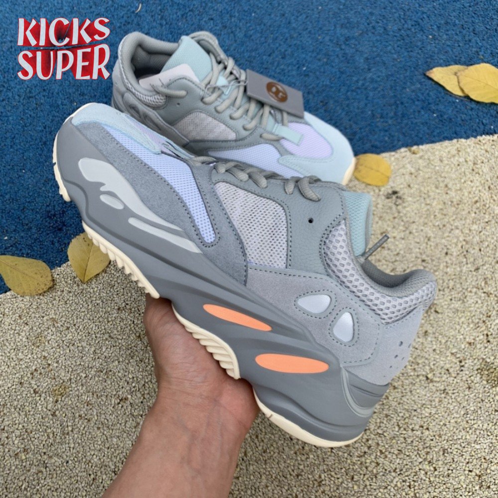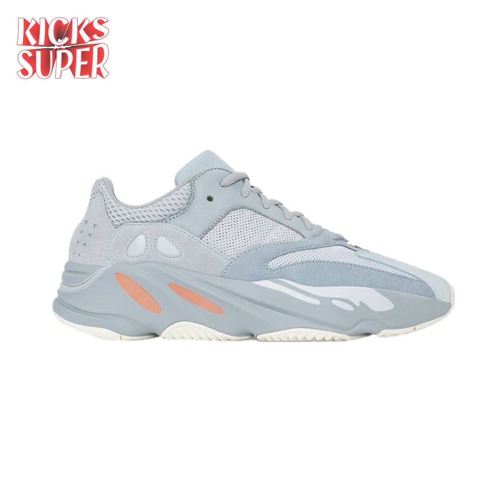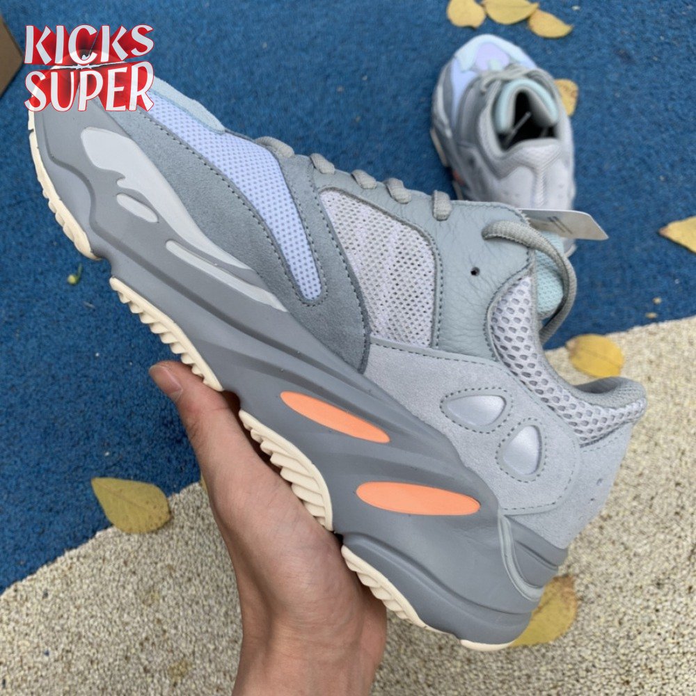 The adidas Yeezy Boost 700 "Inertia" is part of the Yeezy Season 8 lineup that launched March 2019. The "Inertia" colorway showcases the original 700 upper, with a heavily paneled construction made with premium suede, mesh and smooth leather sections. Cast primarily in cool grey tones, the sneaker includes hits of Tangerine for contrast. The shoe"s signature chunky midsole is equipped with full-length Boost cushioning for responsive comfort.