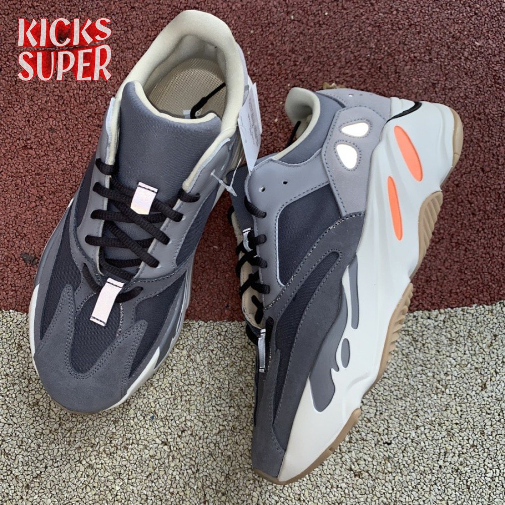 The adidas Yeezy Boost 700 is a combination of heritage functionality and Kanye West's unorthodox design style. Launched in September 2019, this Magnet version is engineered with a neoprene, suede and leather build in a palette of grey gradients. Reflective accents remain at the heel for visual interest in low light. The sculpted Boost-filled midsole flaunts defined pops of color while gum rubber for the outsole exudes throwback appeal.
