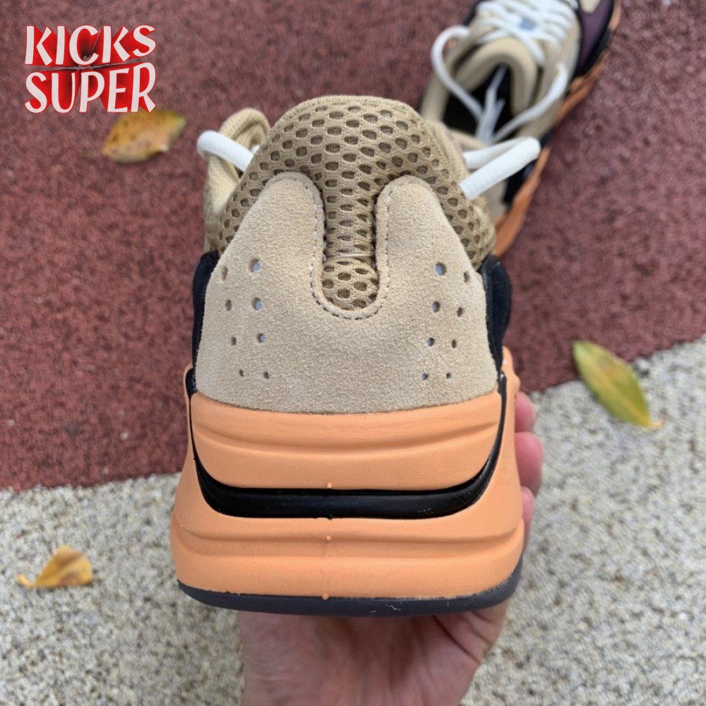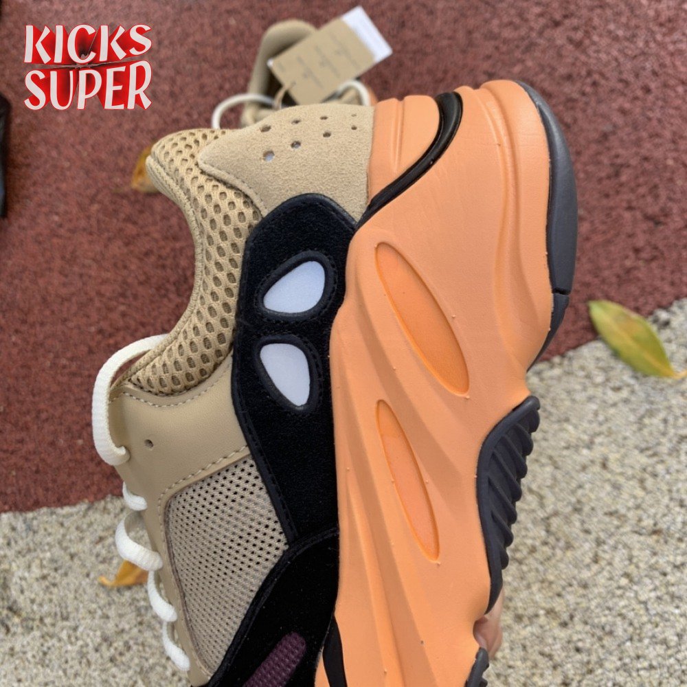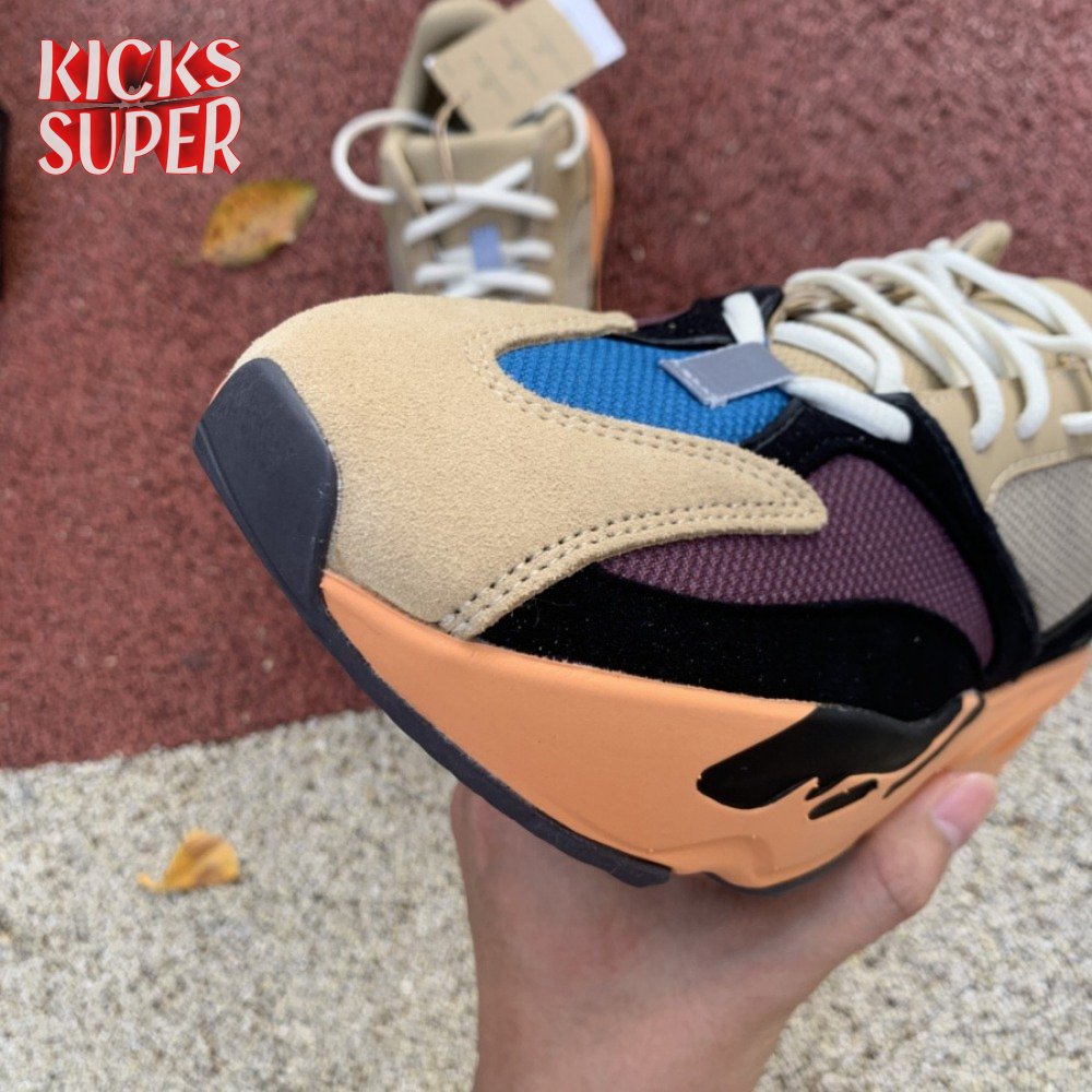 The adidas Yeezy Boost 700 "Sun" treats the lifestyle runner to a lively color scheme that accentuates the silhouette"s multi-layered build. The majority of the mesh and leather upper is rendered in varying shades of yellow, contrasted by a black suede overlay that extends to mesh forefoot panels in blue and teal. A clashing coral finish is applied to the bulky midsole, featuring full-length drop-in Boost cushioning for a smooth ride. Underfoot, a herringbone rubber outsole delivers optimal grip.