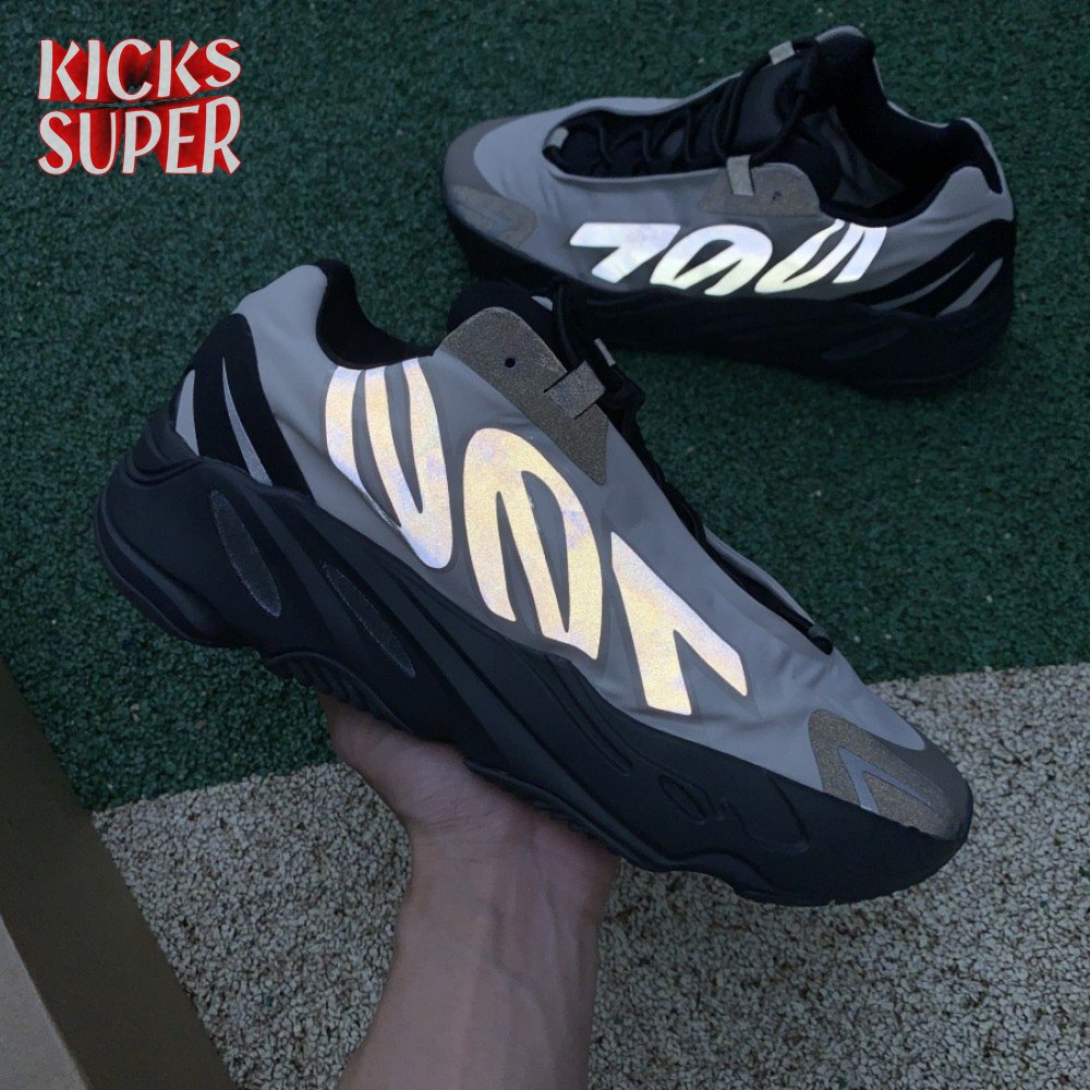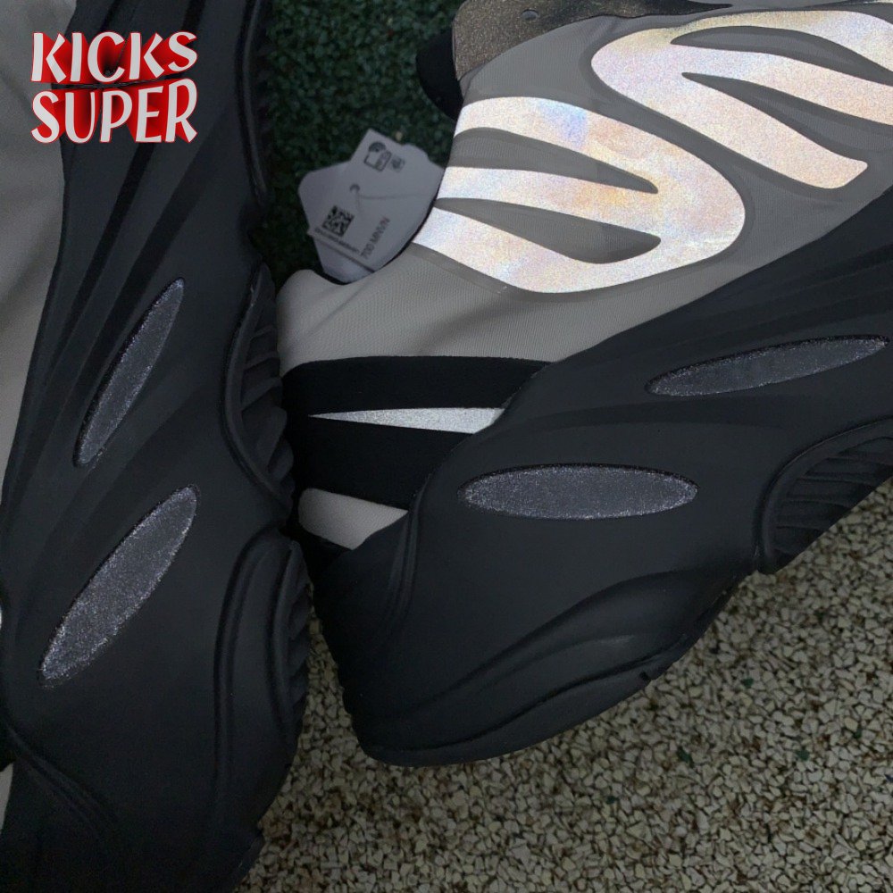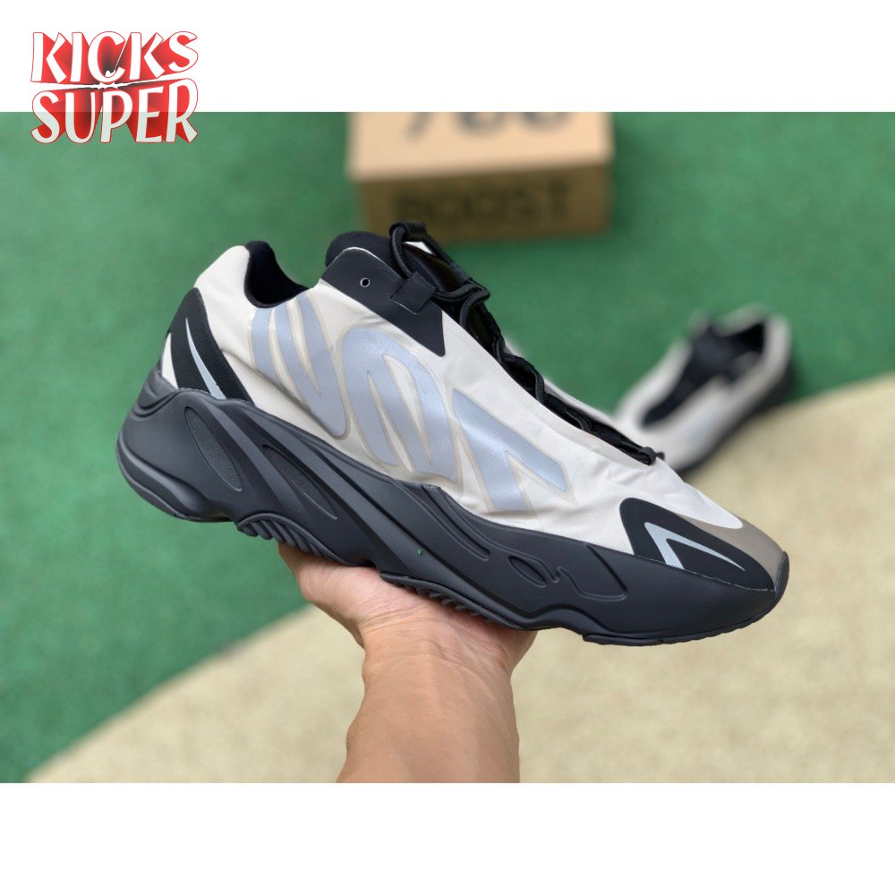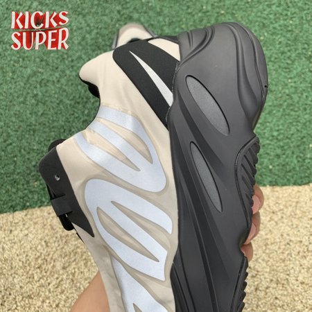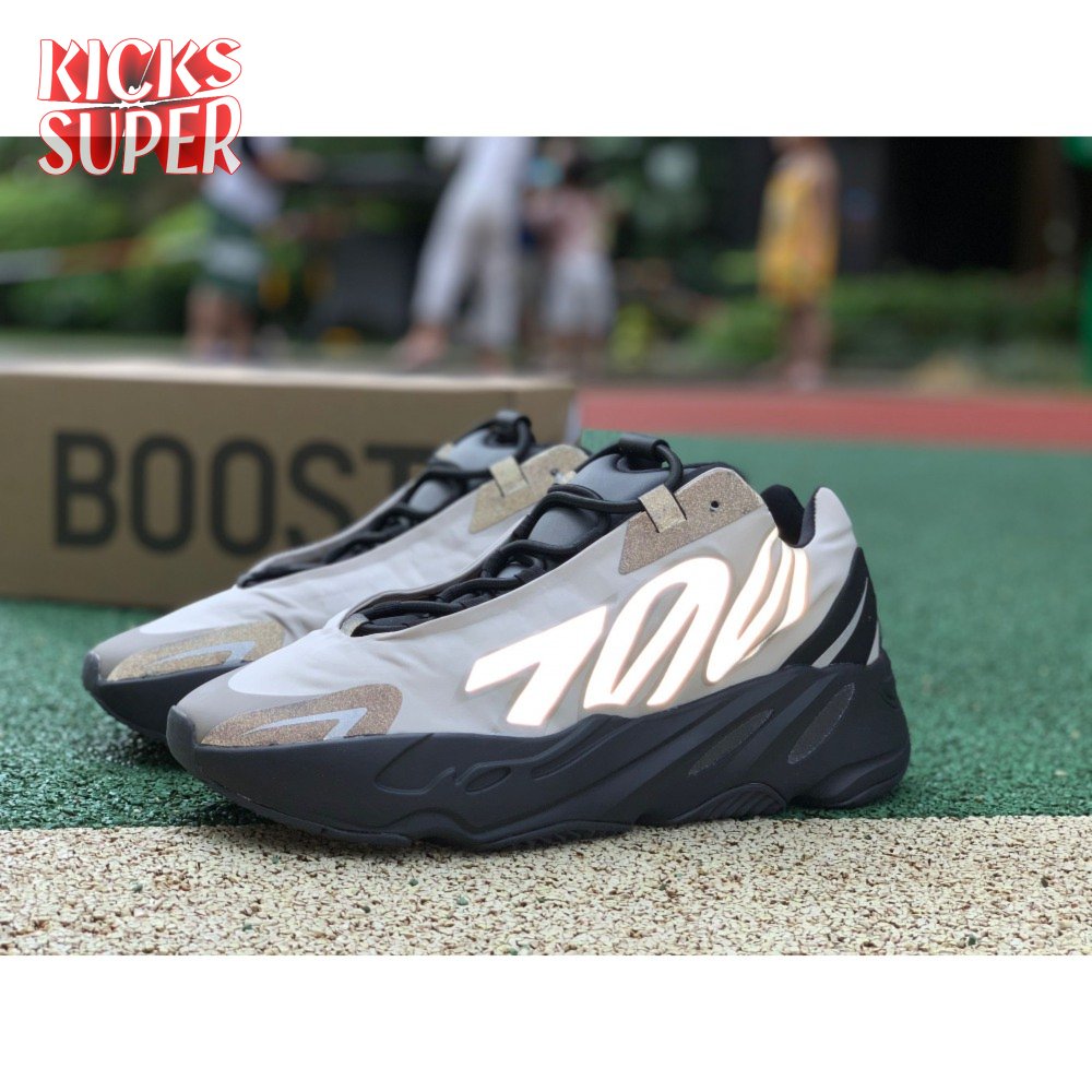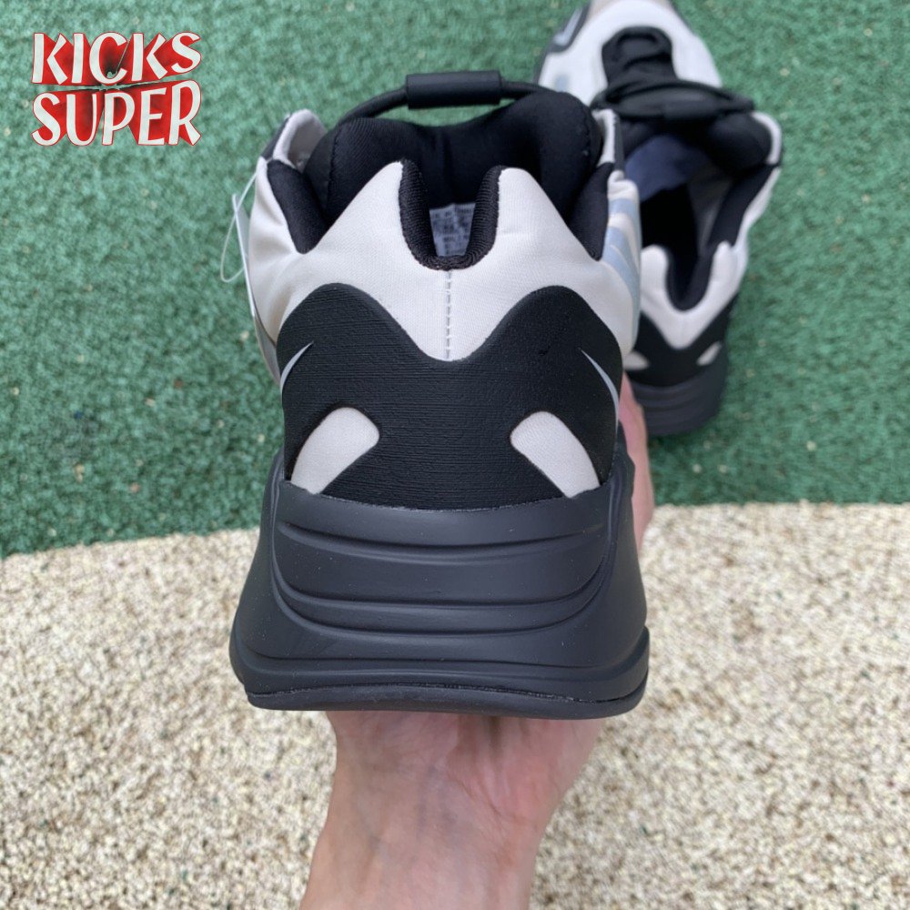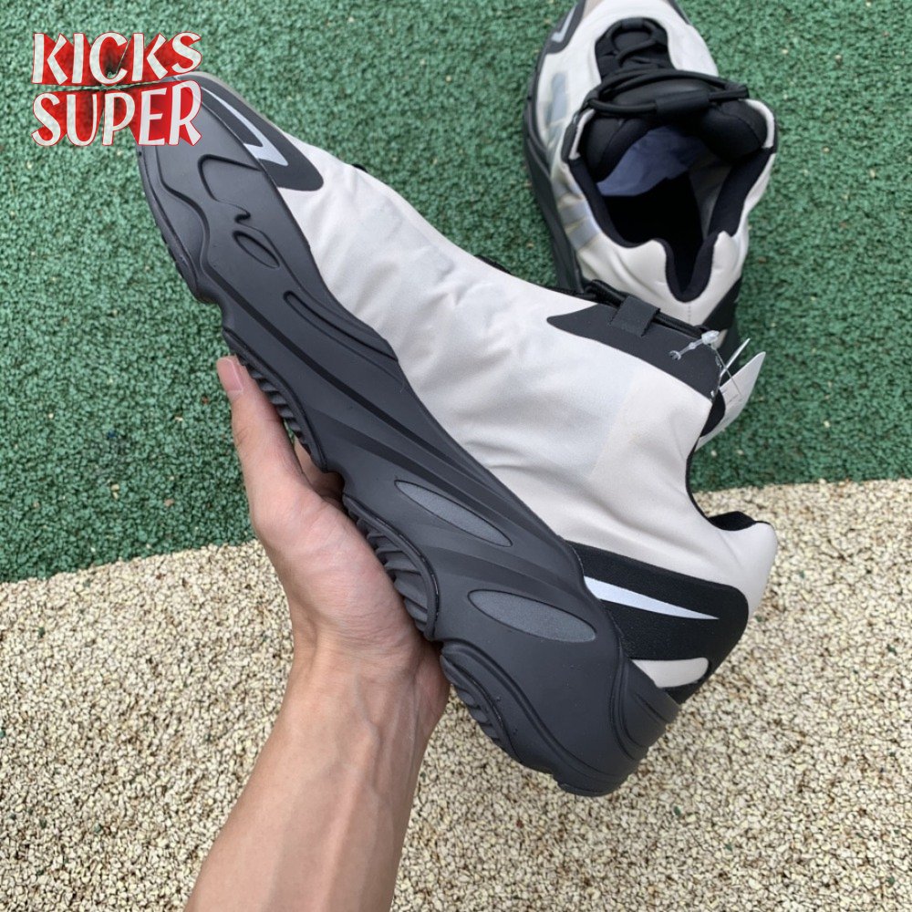 The adidas Yeezy Boost 700 MNVN "Bone" makes use of a high-contrast color scheme, highlighted by a cream polyester upper with black no-sew overlays at the toe and heel. No-tie bungee laces provide easy on and off, while reflective 700 branding on the sneaker"s quarter panel offers added visibility in low-light conditions. The seamless build rests on a sculpted black PU midsole, which houses drop-in Boost cushioning for a smooth ride.