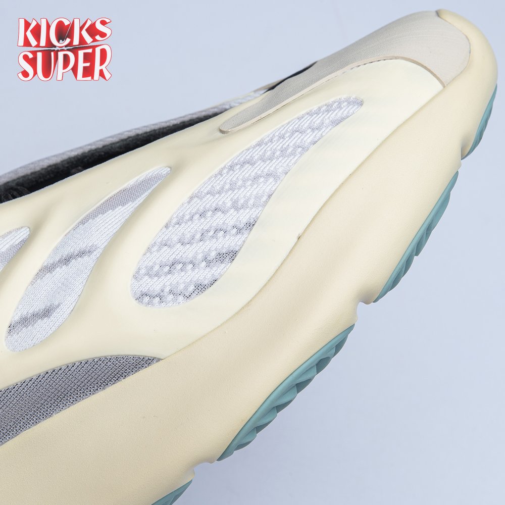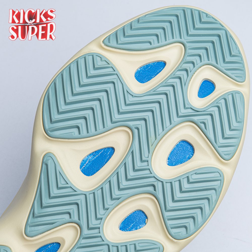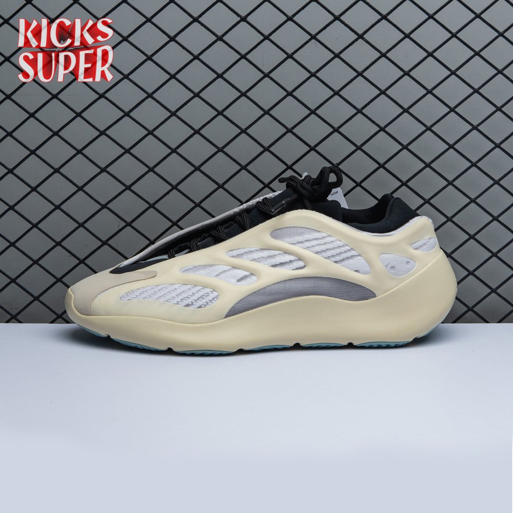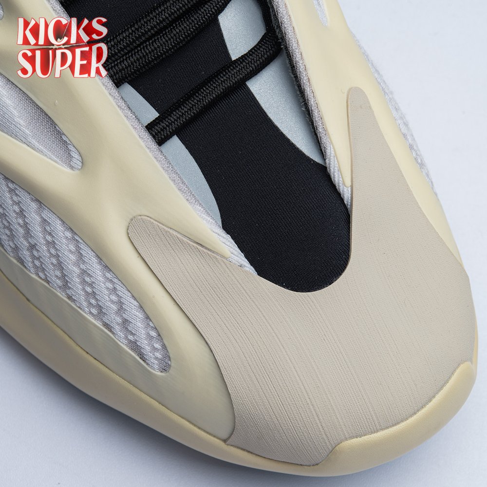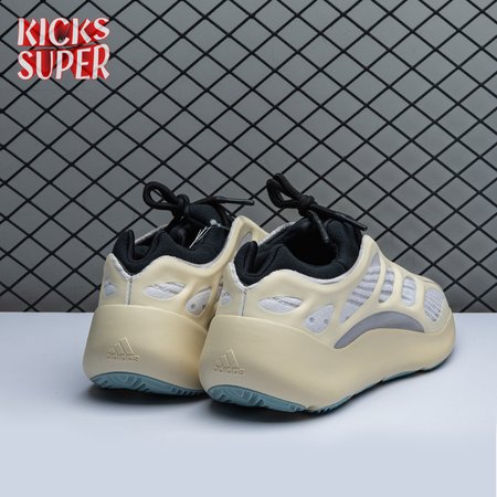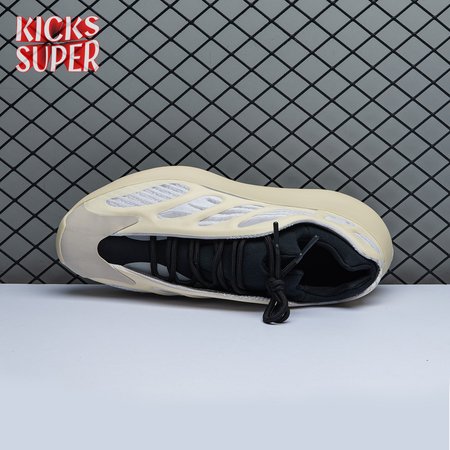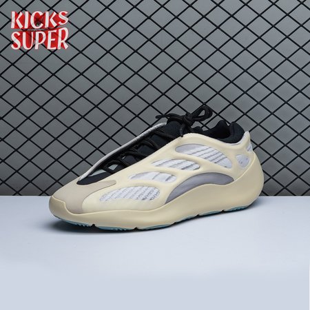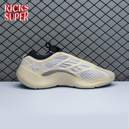 Steering away from his previous retro-inspired slant, Kanye West explores future-facing design with the adidas Yeezy 700 V3. Unveiled in December 2019, this Azael edition receives a black neoprene bootie with a notched collar and striped textile underlay encased in a sculpted, open-work cage. Integrated lacing offers traditional lockdown.