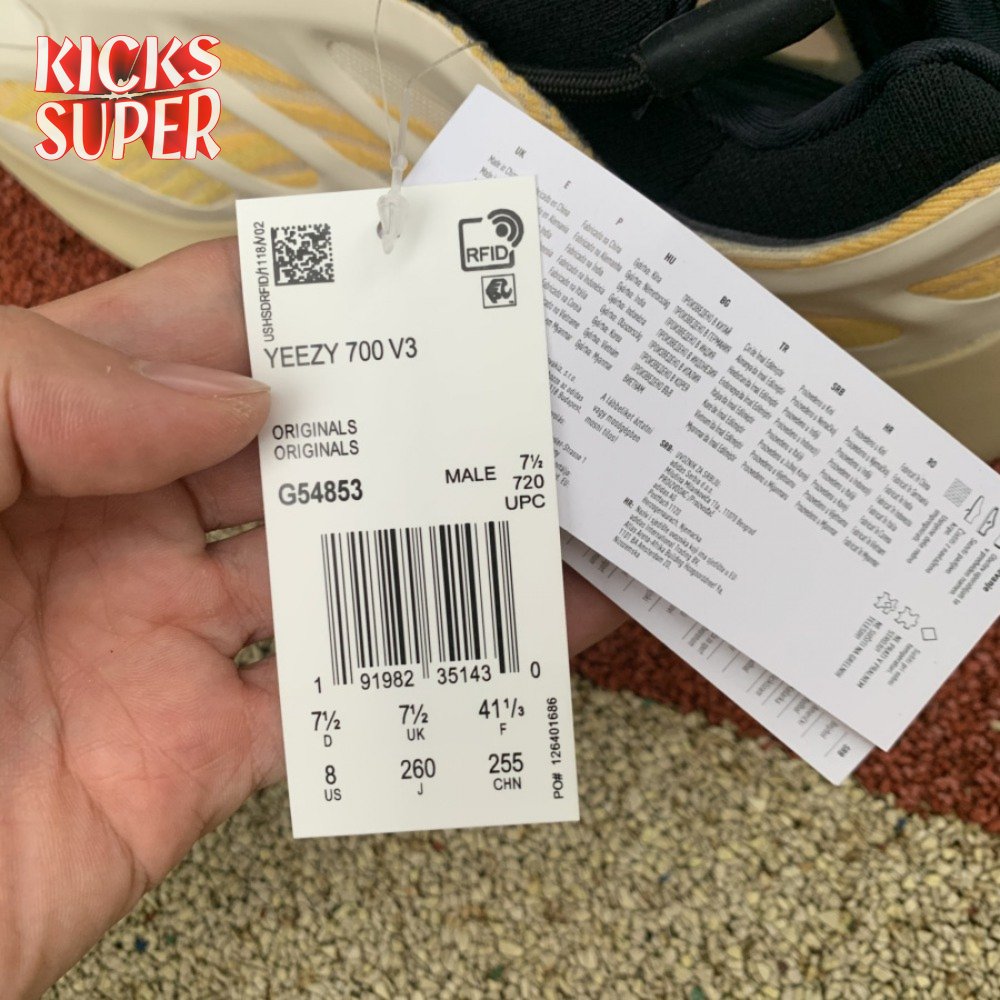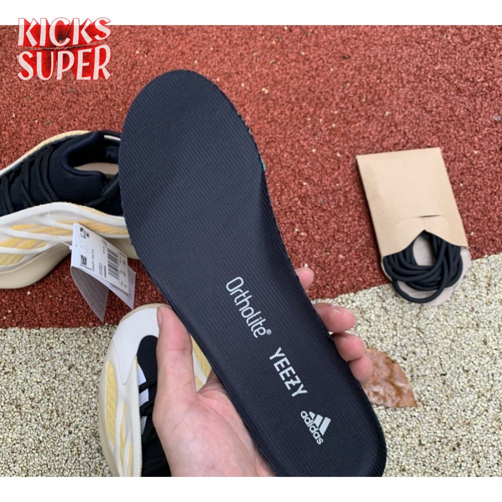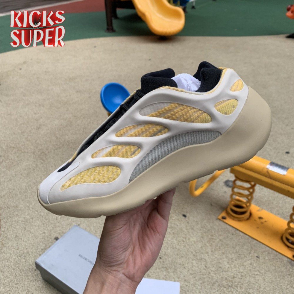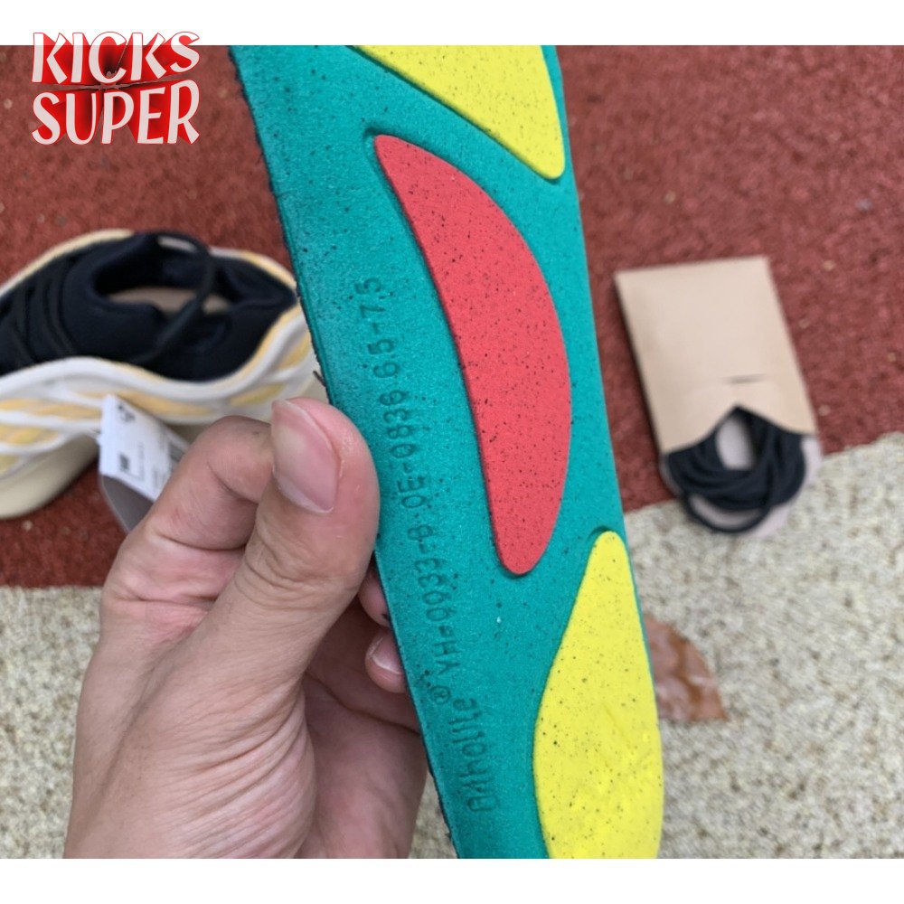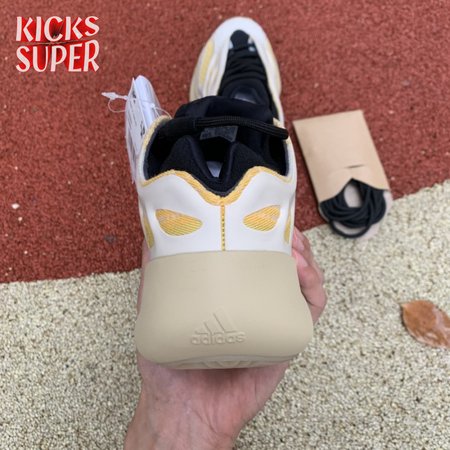 The adidas Yeezy 700 V3 "Safflower" showcases a mostly neutral color scheme in keeping with the Yeezy brand"s signature palette. Subtle hints of color arrive via yellow striations throughout the monofilament engineered mesh upper, overlaid with a glow-in-the-dark RPU cage that extends from heel to toe. The sneaker"s interior bootie construction is rendered in a contrasting black finish, offering a snug, comfortable fit. A PU encapsulated EVA midsole anchors the streamlined silhouette.