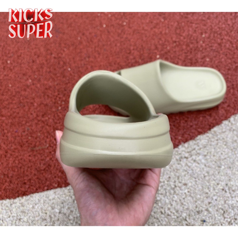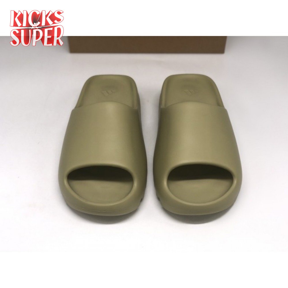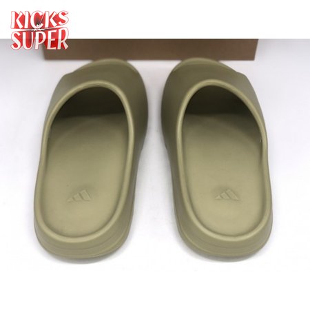 The Yeezy Slide 'Resin' showcases Kanye West"s minimalist interpretation of an athletic sandal. A monochromatic finish in a subtle green hue is applied to the slip-on silhouette, constructed from EVA foam for lightweight durability. The footbed delivers added comfort with a soft top layer, etched with adidas" three-stripe branding at the heel. Underfoot, the outsole is formed with horizontal grooves for enhanced traction.