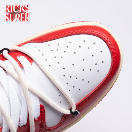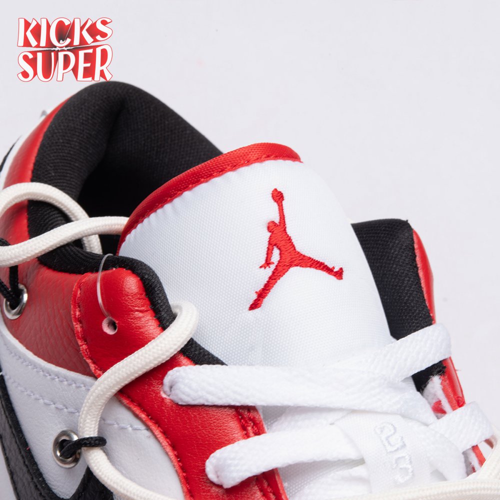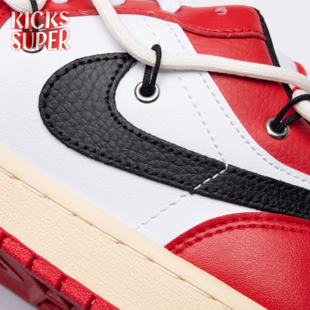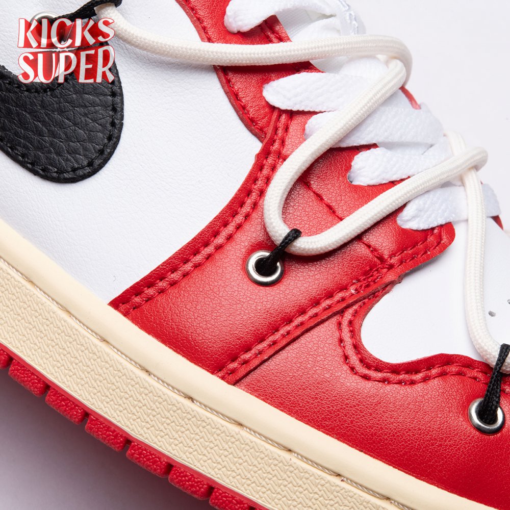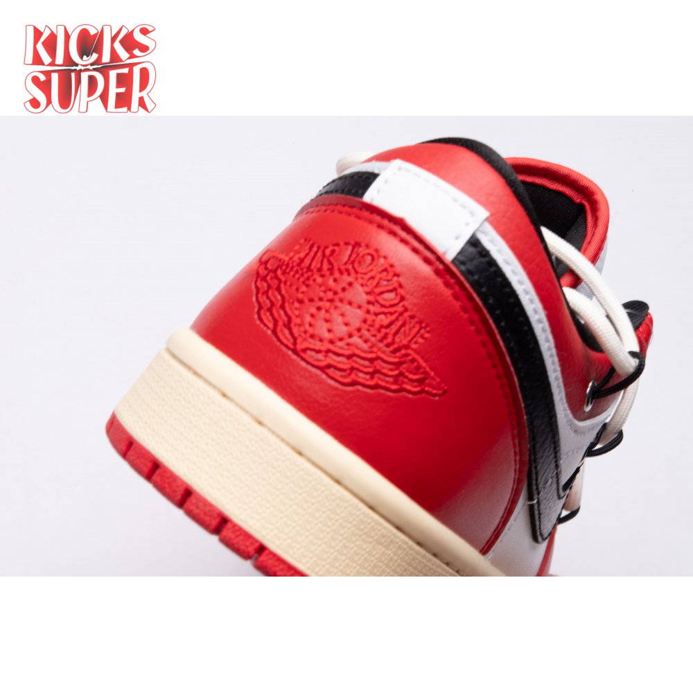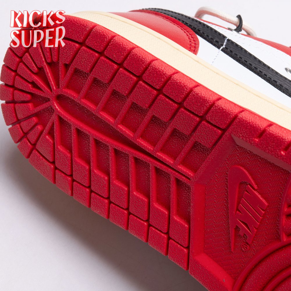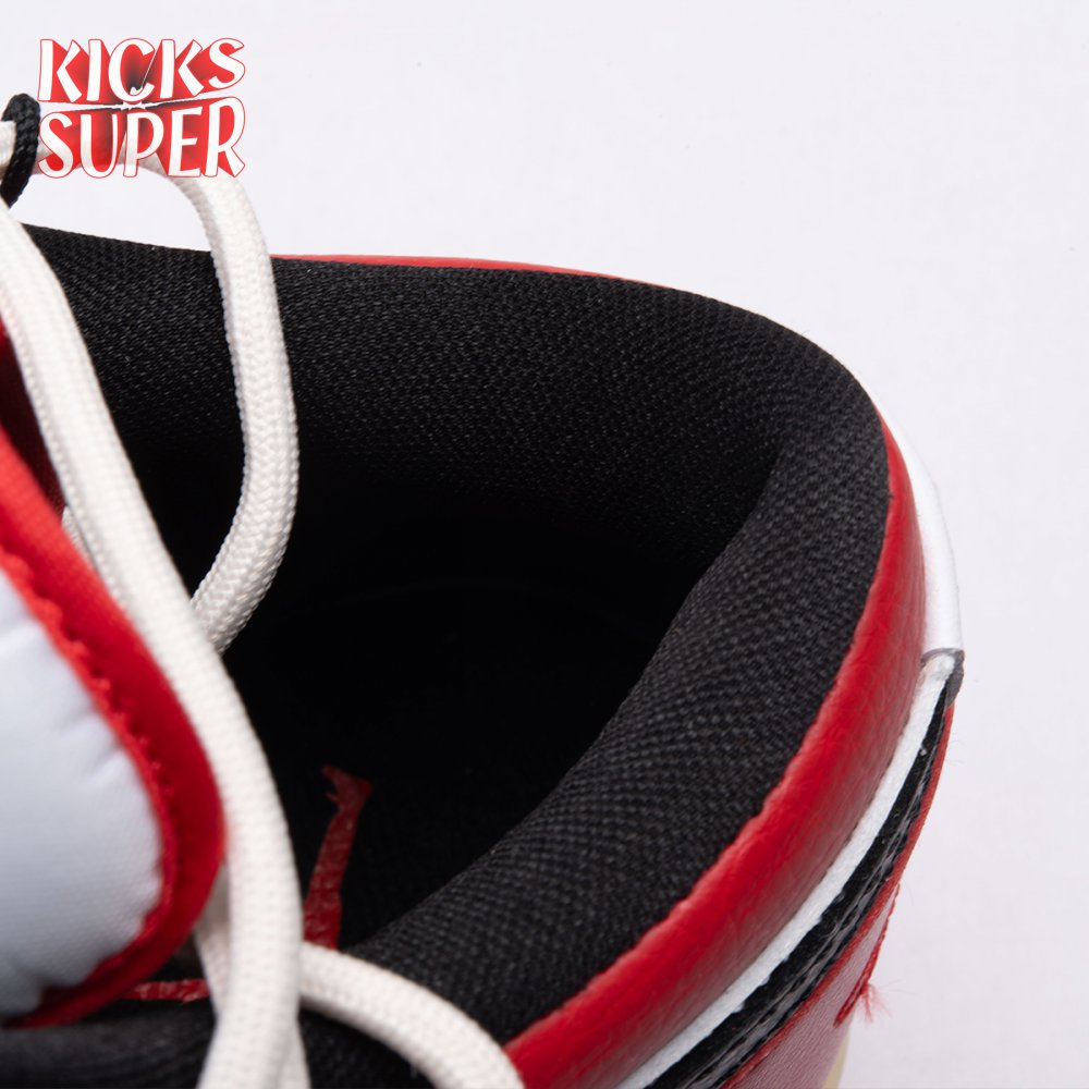 The Air Jordan 1 Retro High OG "Prototype" showcases sharply contrasting color stories between the collar and the rest of the upper. The latter combines a white leather base with reinforced overlays in tan nubuck and grey and black leather. Vibrant shades of blue distinguish the collar, marked with wraparound perforated detailing that indicates where wearers will need to cut if they opt to convert the high-top silhouette into a low-top. An orange mini-Swoosh is embroidered atop the toe box, matching the woven Nike Air tag affixed to the black nylon tongue.