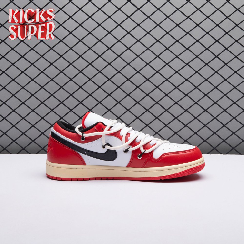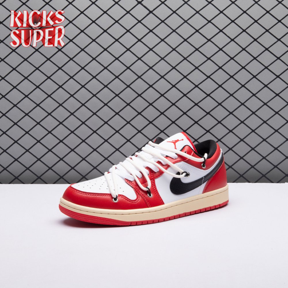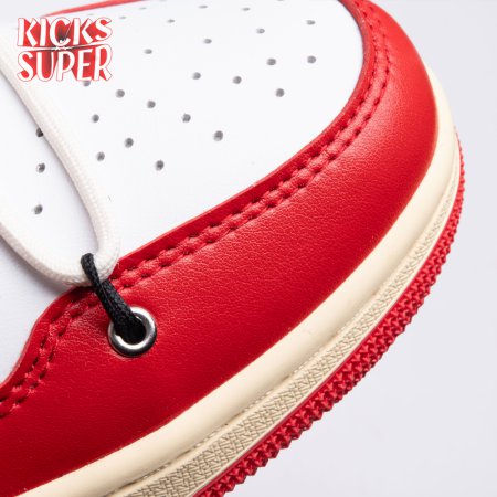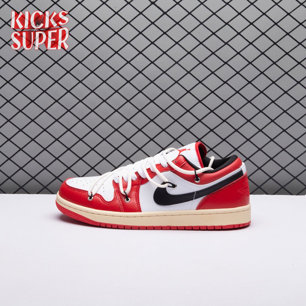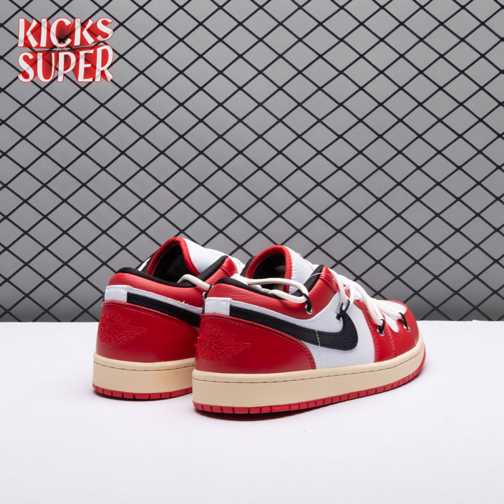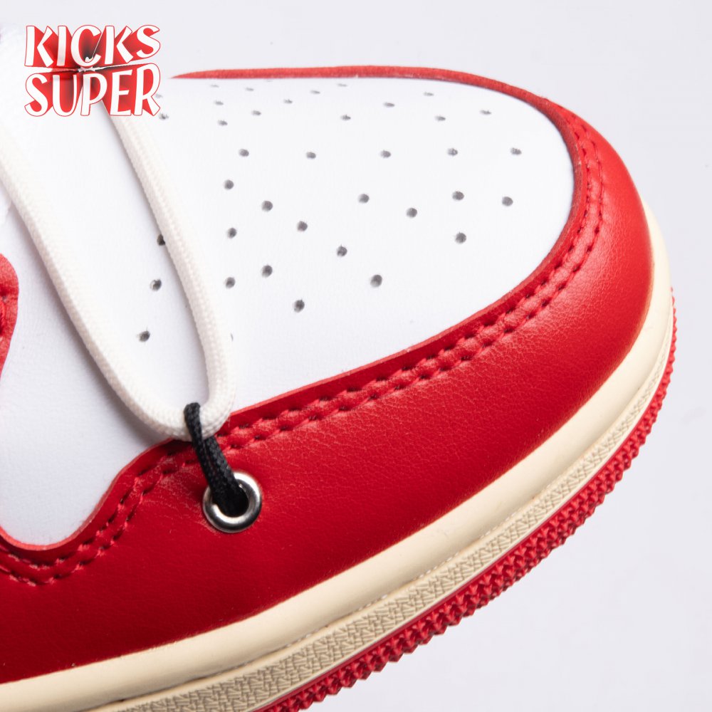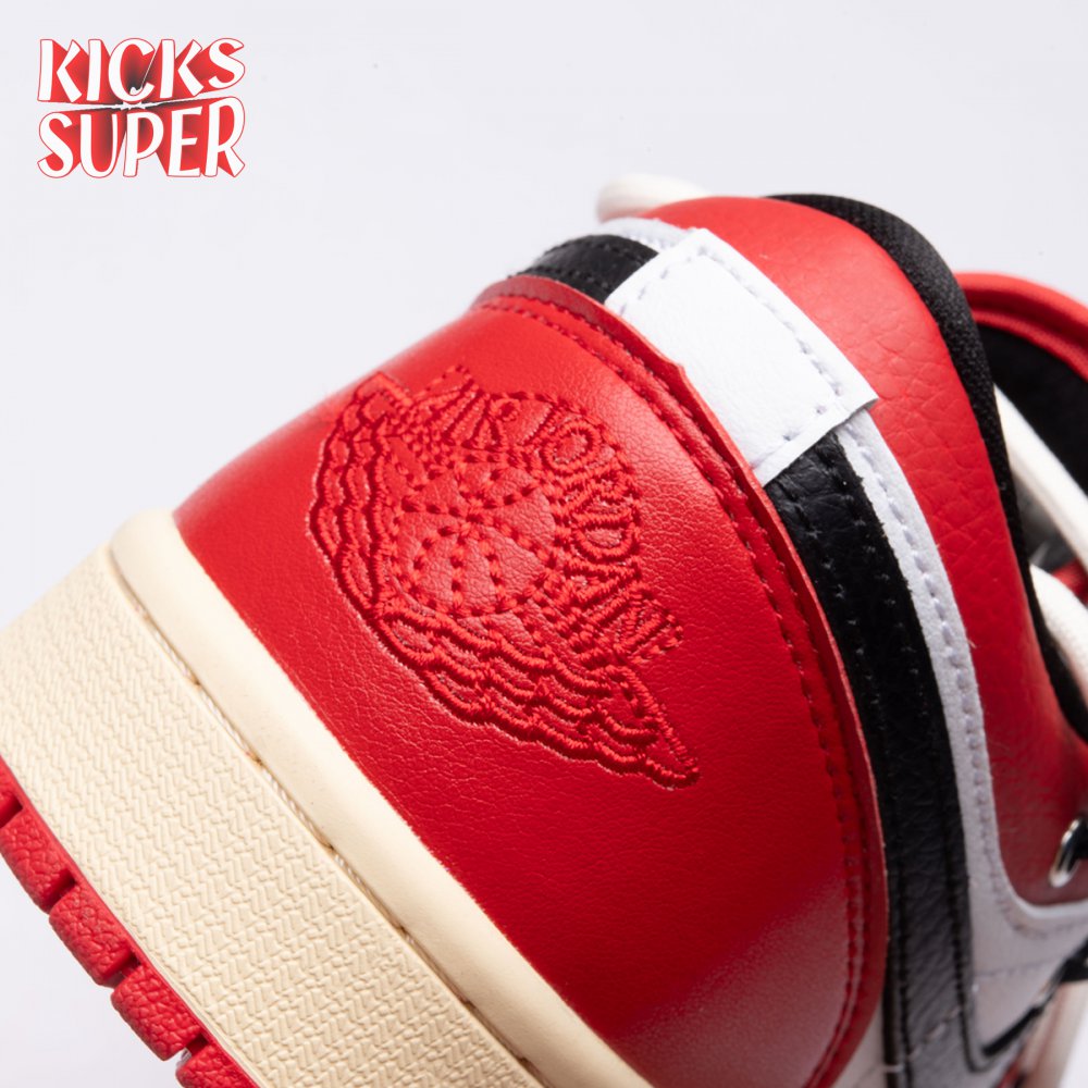 The Air Jordan 1 Retro High OG "Prototype" showcases sharply contrasting color stories between the collar and the rest of the upper. The latter combines a white leather base with reinforced overlays in tan nubuck and grey and black leather. Vibrant shades of blue distinguish the collar, marked with wraparound perforated detailing that indicates where wearers will need to cut if they opt to convert the high-top silhouette into a low-top. An orange mini-Swoosh is embroidered atop the toe box, matching the woven Nike Air tag affixed to the black nylon tongue.