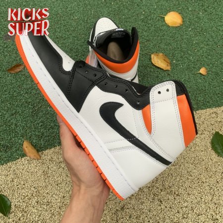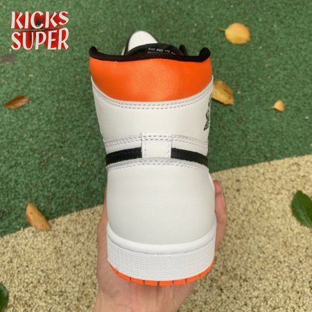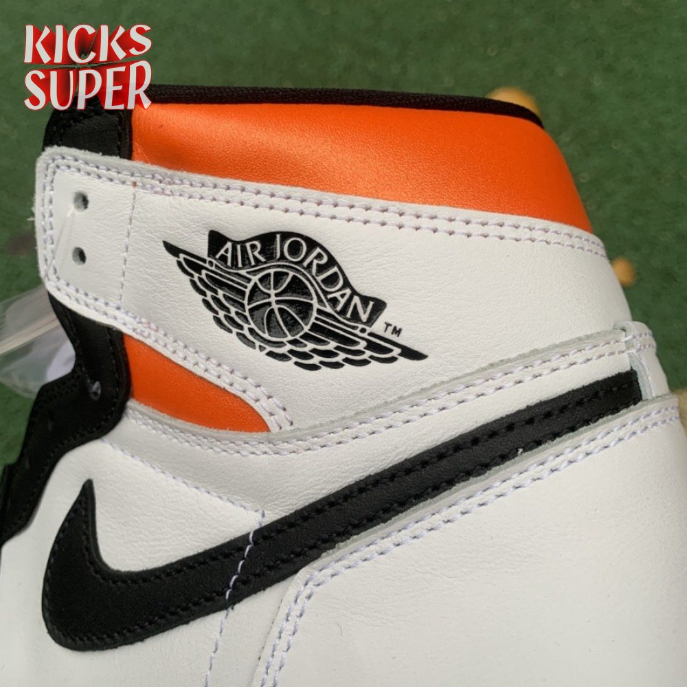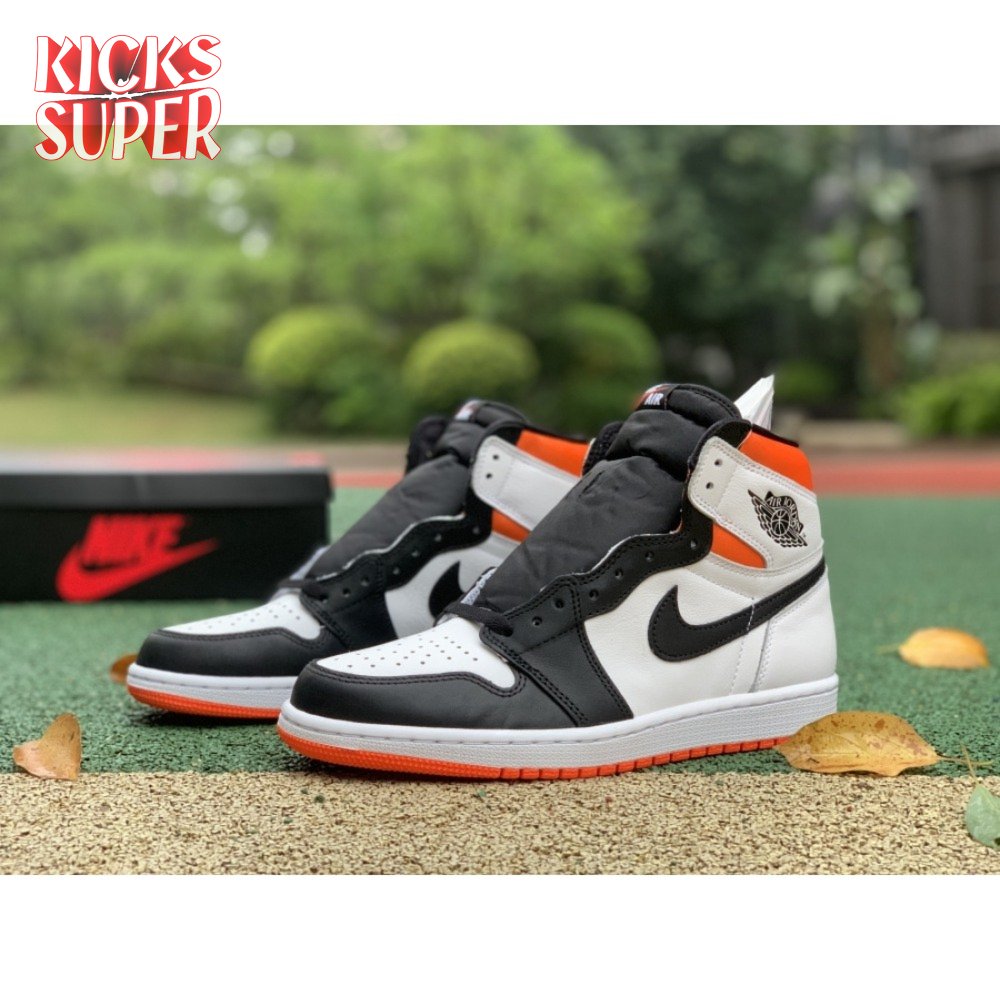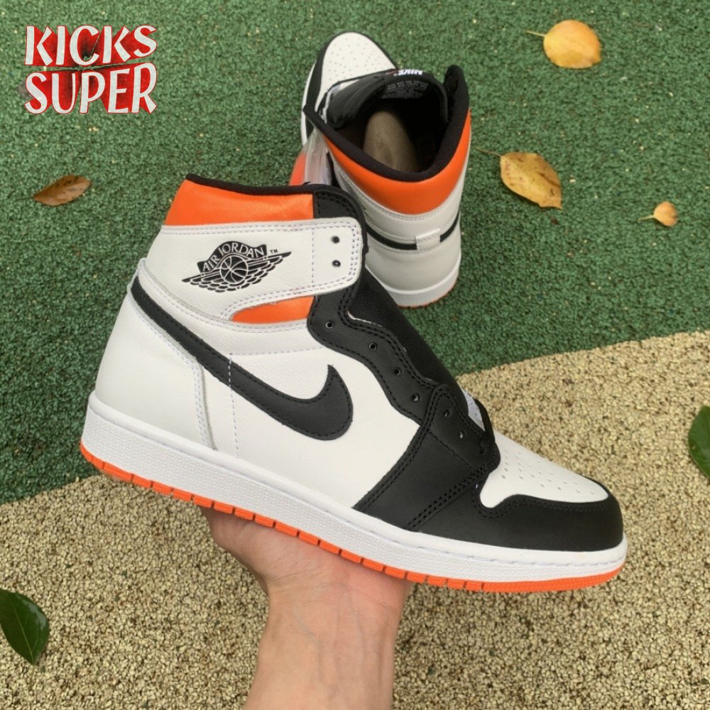 The Air Jordan 1 Retro High OG "Electro Orange" showcases a familiar palette that recalls the coveted "Shattered Backboard" colorway from 2015. The upper is crated from white leather, with contrasting black hits on the eyestay, Swoosh and forefoot overlay. A vibrant orange finish is applied to the padded collar and rubber outsole, featuring a grippy traction pattern carried over from the original 1985 release. An additional pop of orange makes its way to the Nike Air tag atop the nylon tongue.