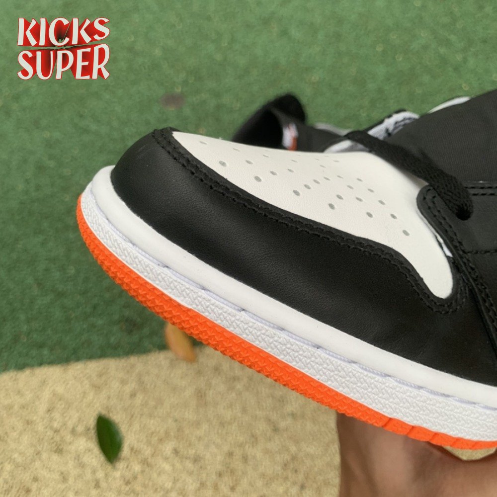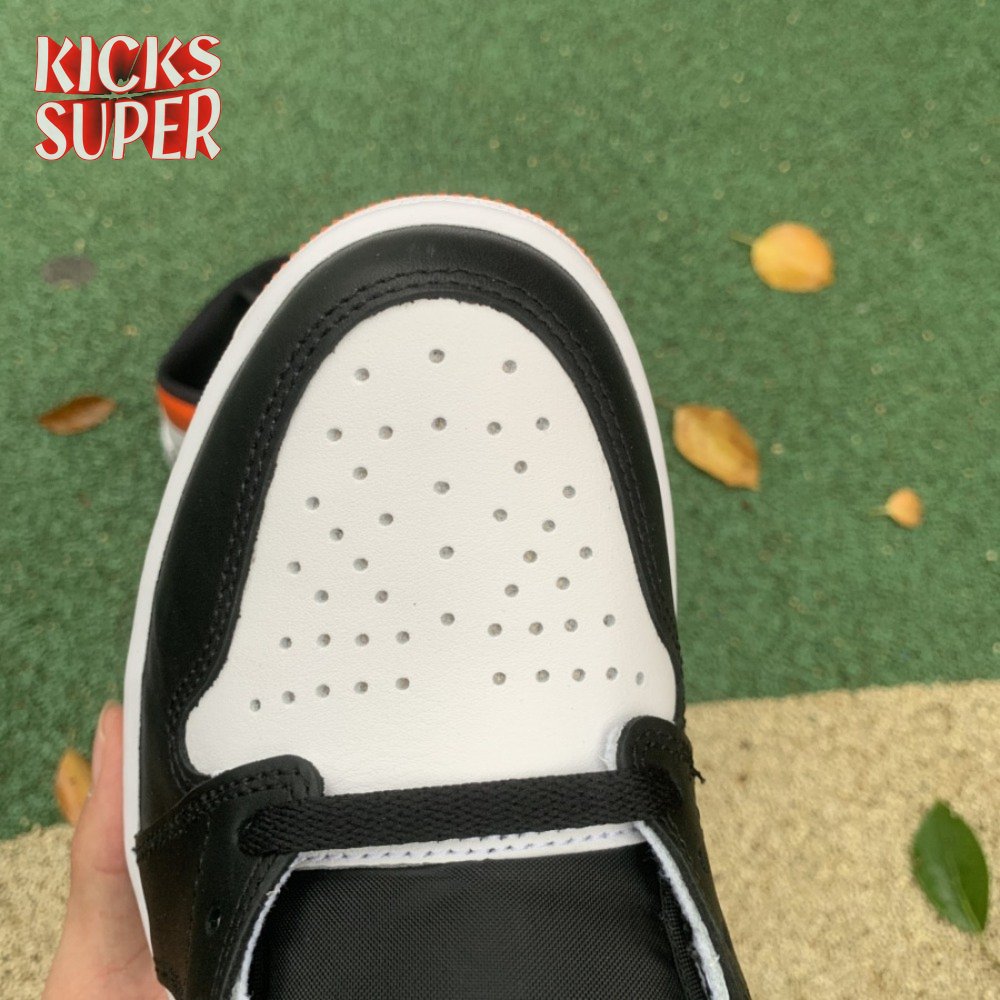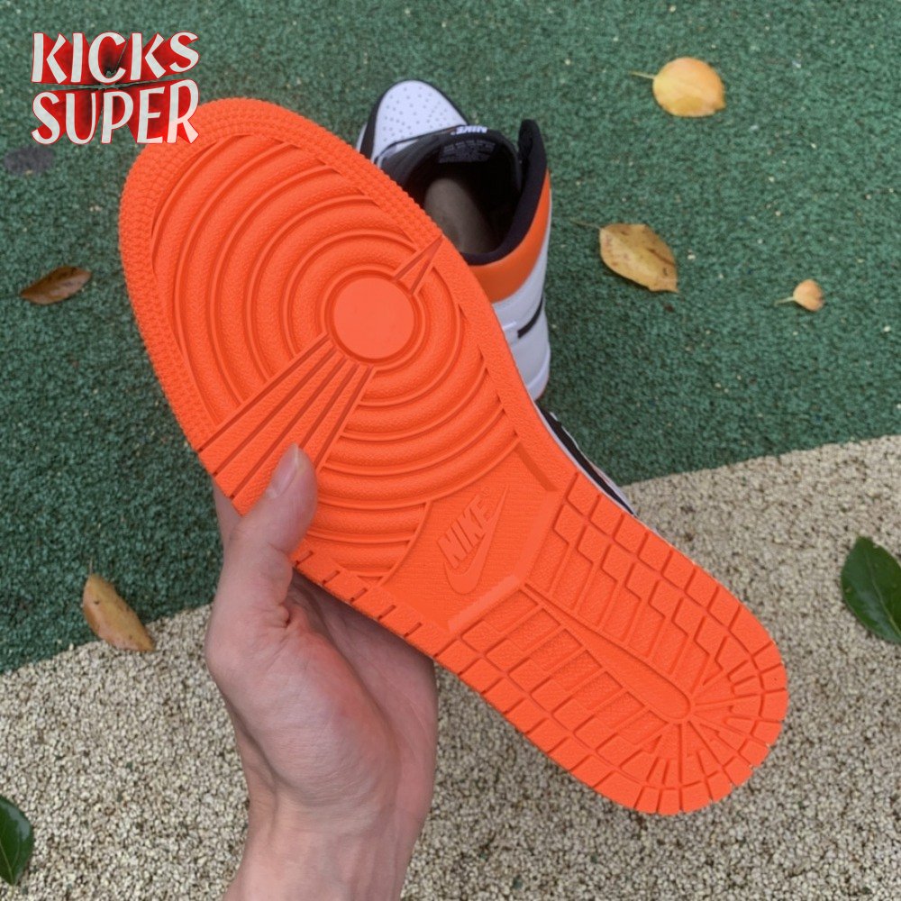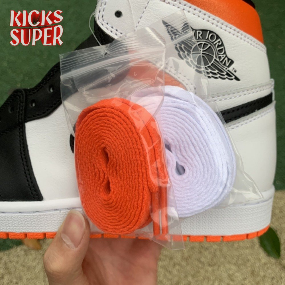 The Air Jordan 1 Retro High OG "Electro Orange" showcases a familiar palette that recalls the coveted "Shattered Backboard" colorway from 2015. The upper is crated from white leather, with contrasting black hits on the eyestay, Swoosh and forefoot overlay. A vibrant orange finish is applied to the padded collar and rubber outsole, featuring a grippy traction pattern carried over from the original 1985 release. An additional pop of orange makes its way to the Nike Air tag atop the nylon tongue.