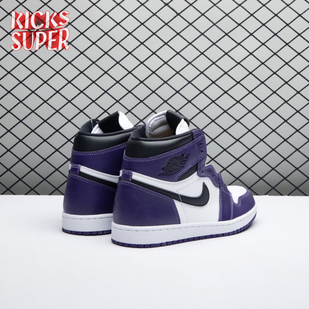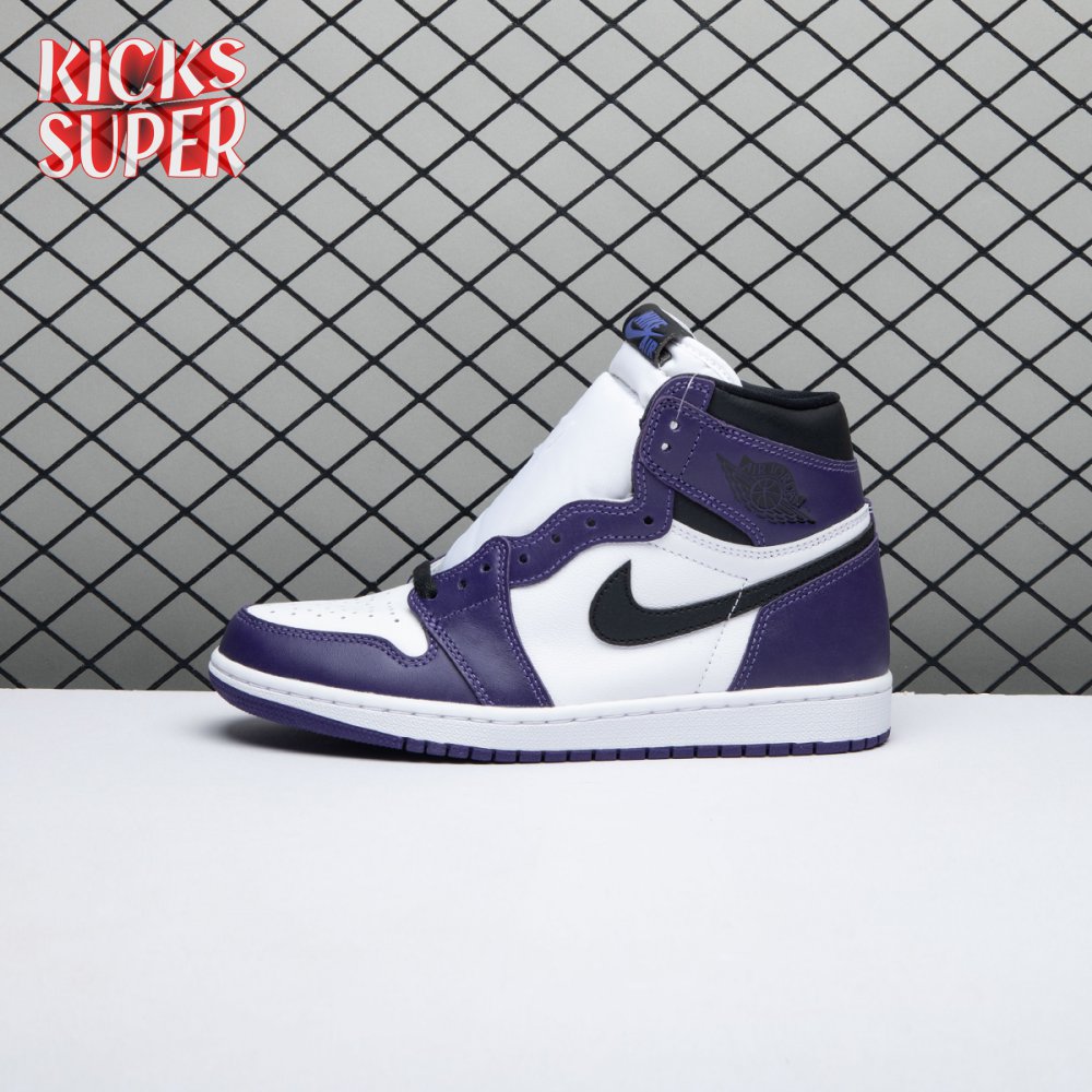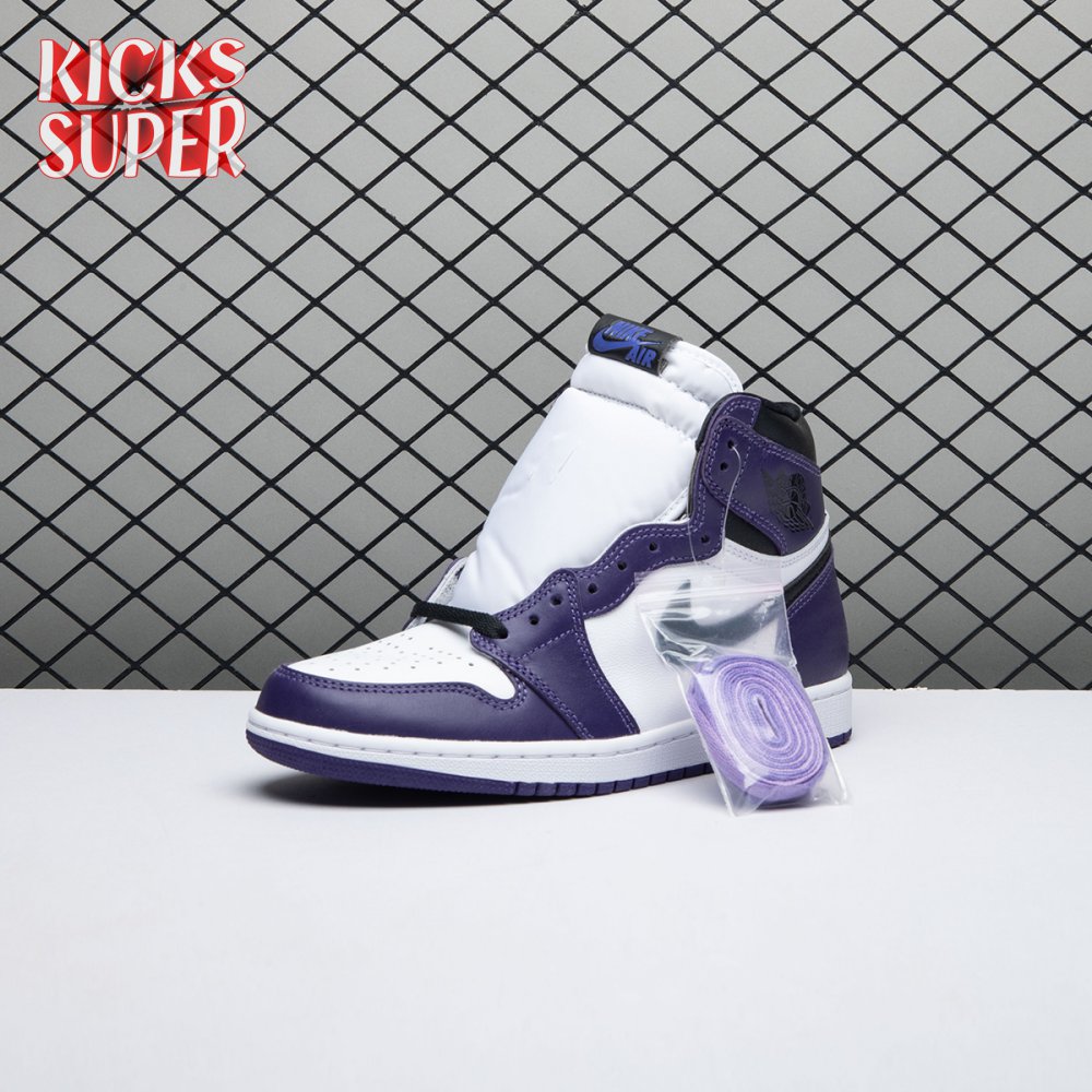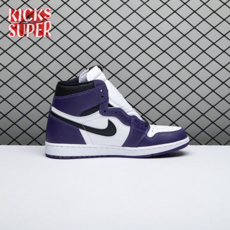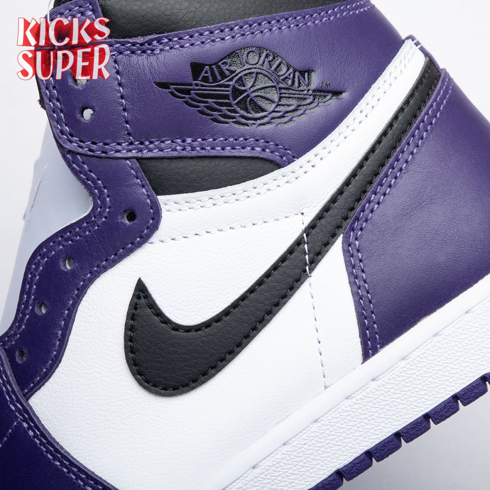 Launching in 2020, the Air Jordan 1 Retro High OG 'Court Purple 2.0' is a sequel of sorts to the 2018 colorway that also featured the same violet accents. Unlike its predecessor, this pair makes use of color blocking reminiscent of the OG "Chicago" colorway, with Court Purple replacing the red paneling of the original. The kicks are finished with a black Nike Swoosh and matching black at the laces and padded collar.