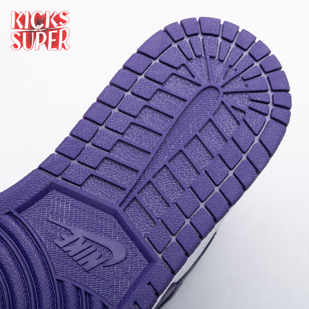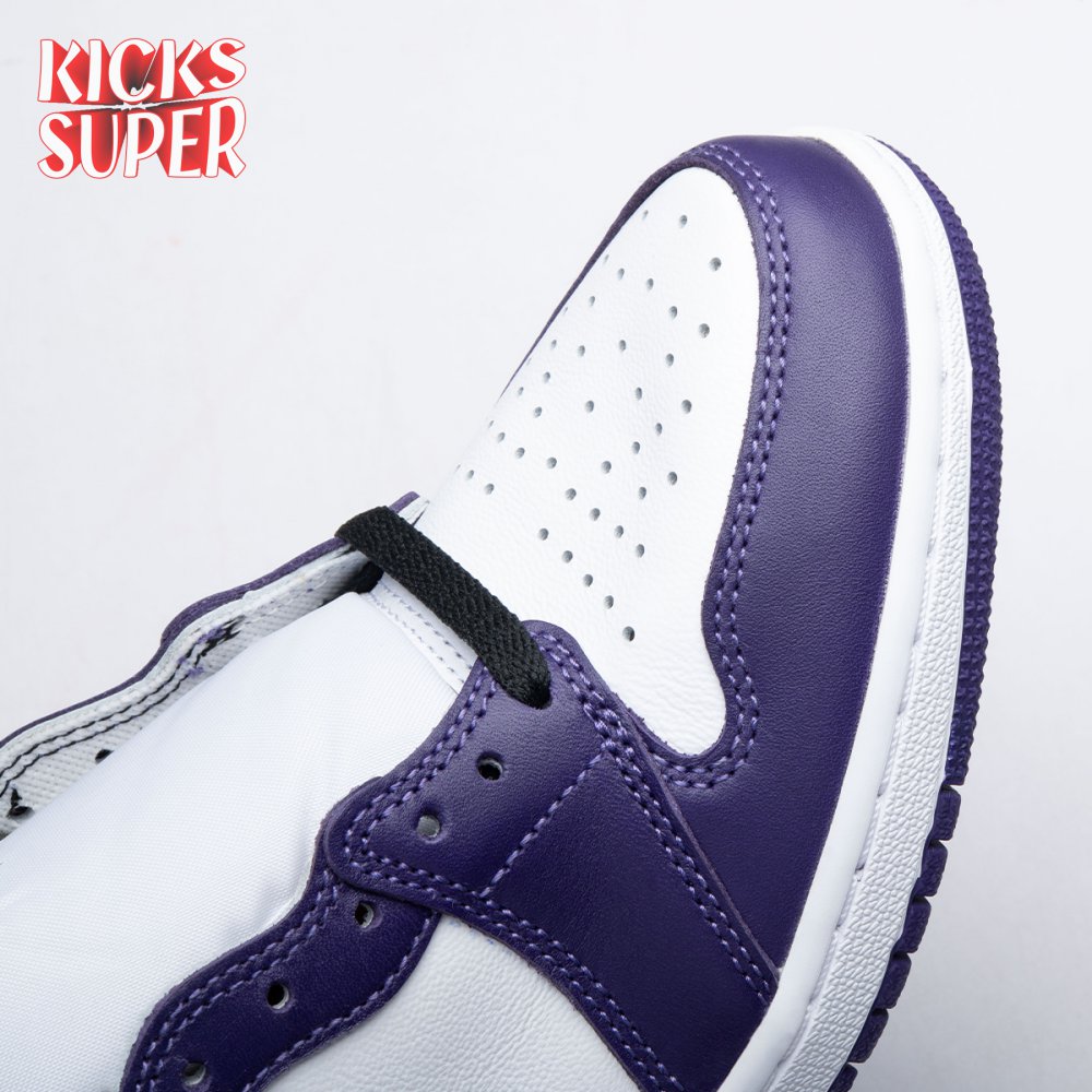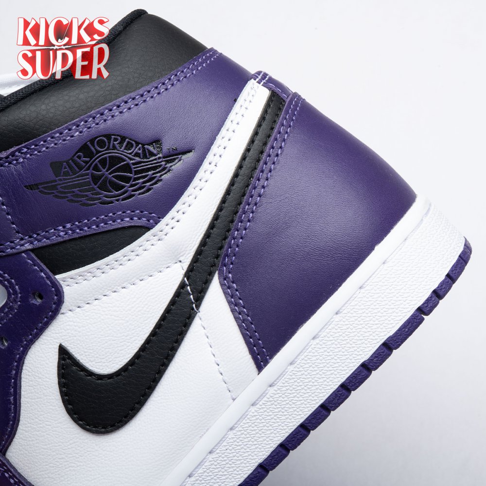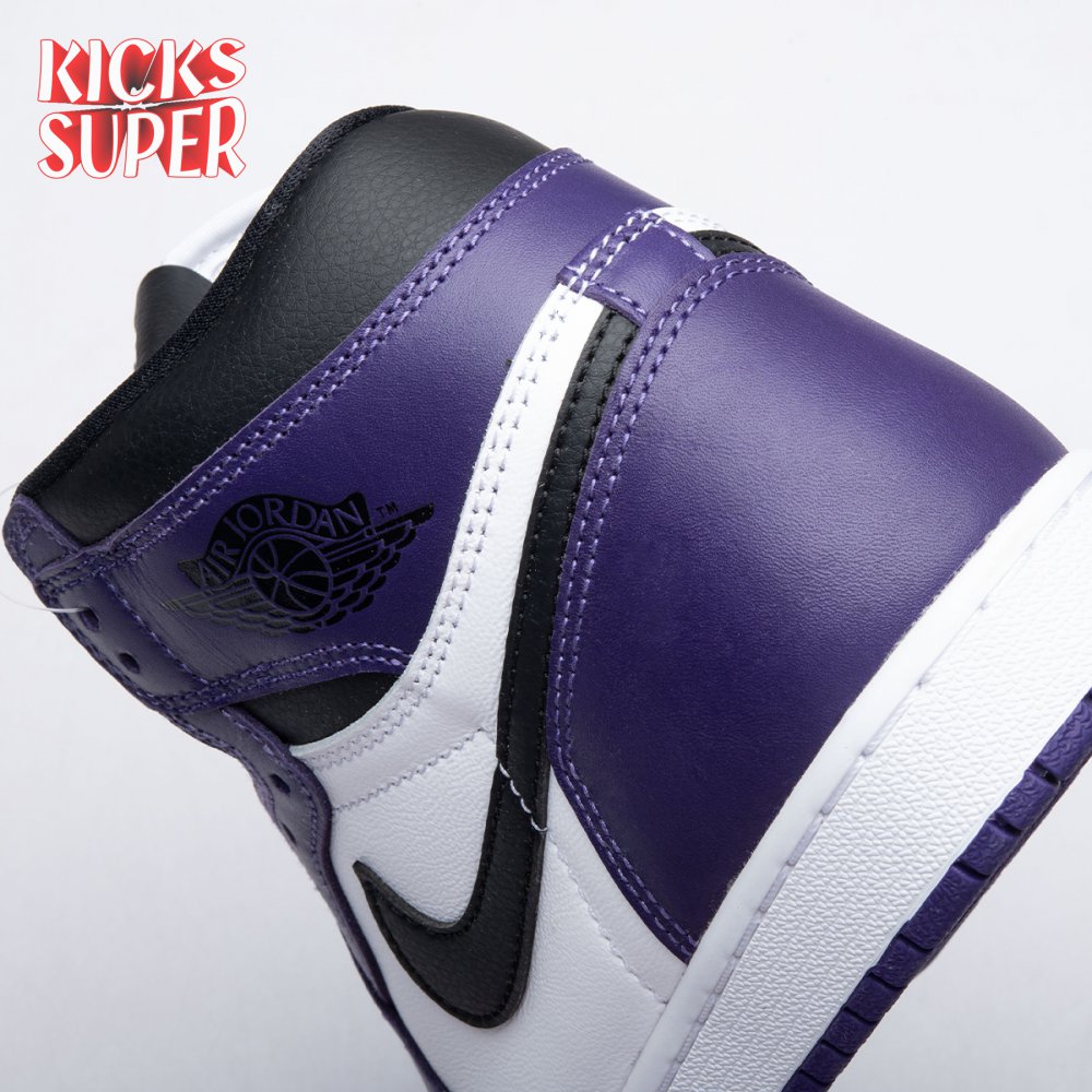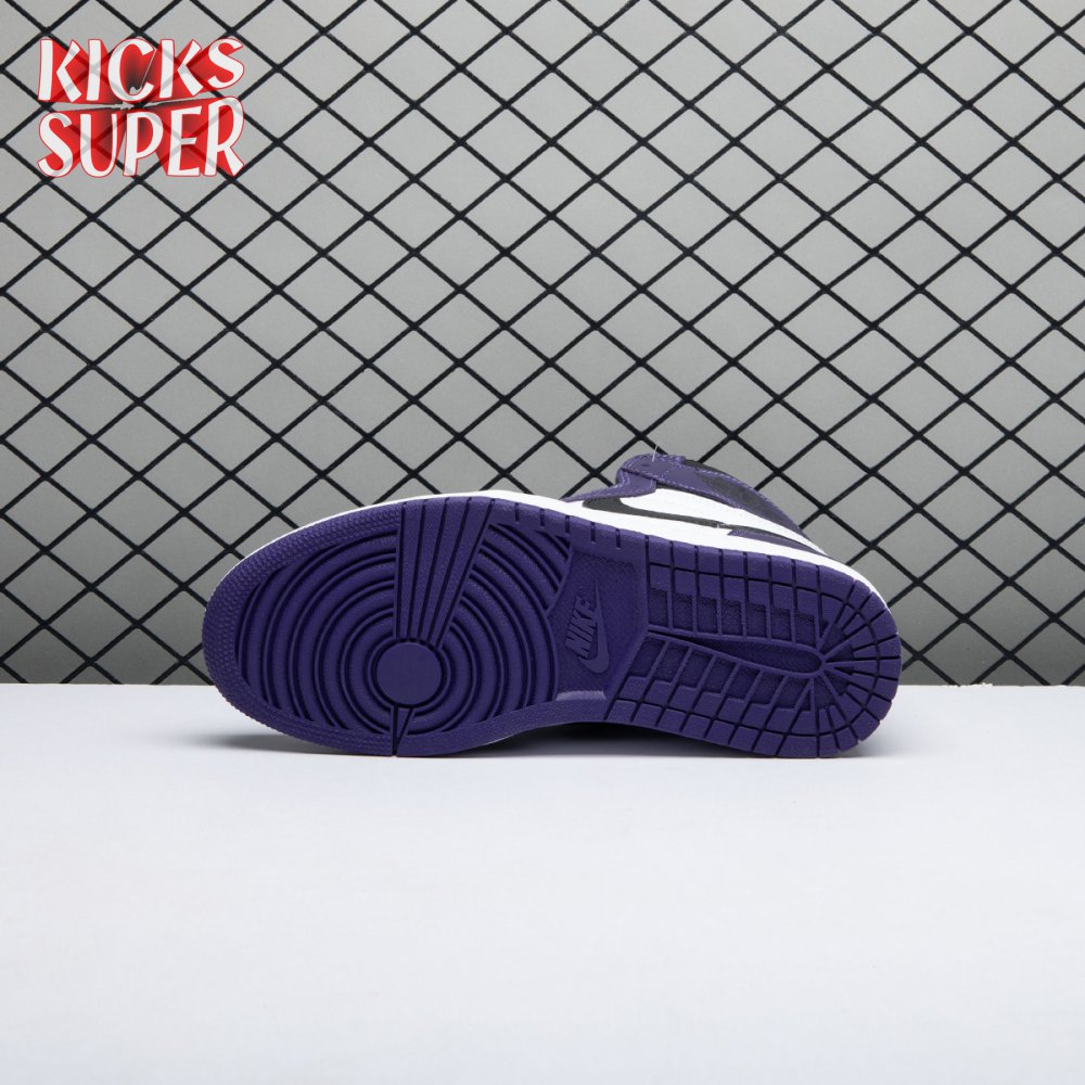 Launching in 2020, the Air Jordan 1 Retro High OG 'Court Purple 2.0' is a sequel of sorts to the 2018 colorway that also featured the same violet accents. Unlike its predecessor, this pair makes use of color blocking reminiscent of the OG "Chicago" colorway, with Court Purple replacing the red paneling of the original. The kicks are finished with a black Nike Swoosh and matching black at the laces and padded collar.