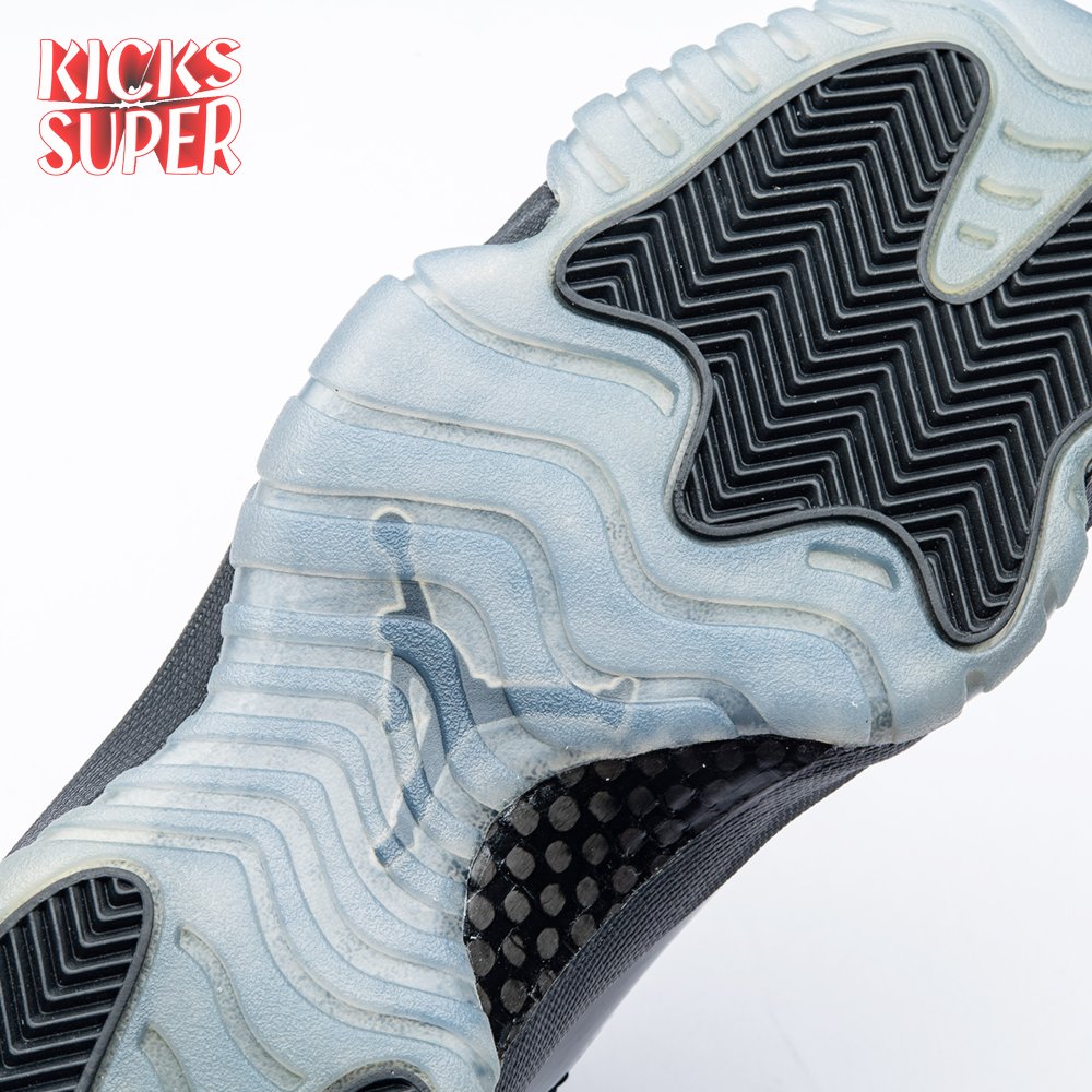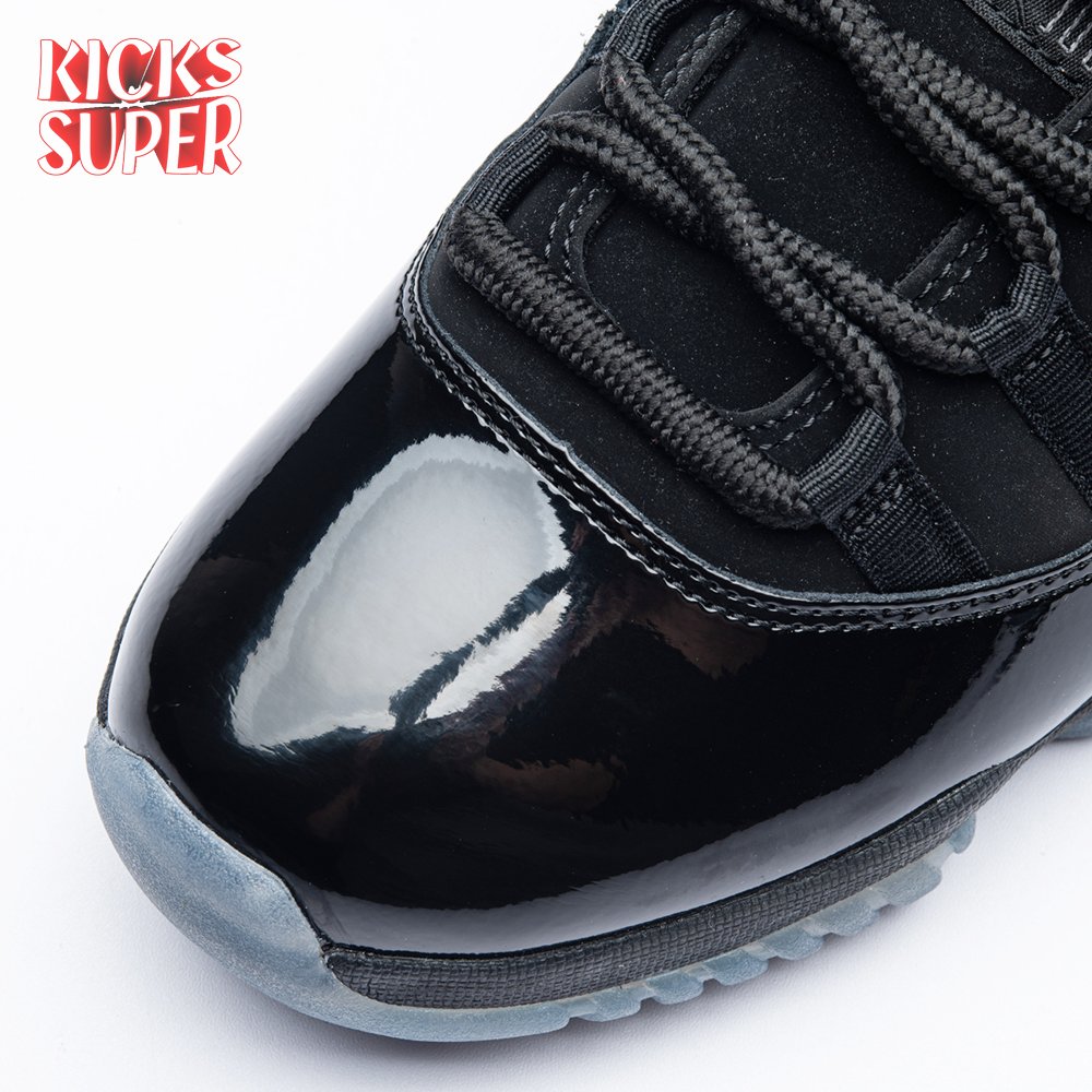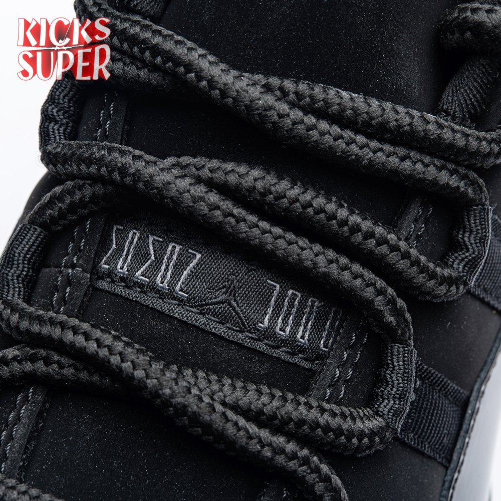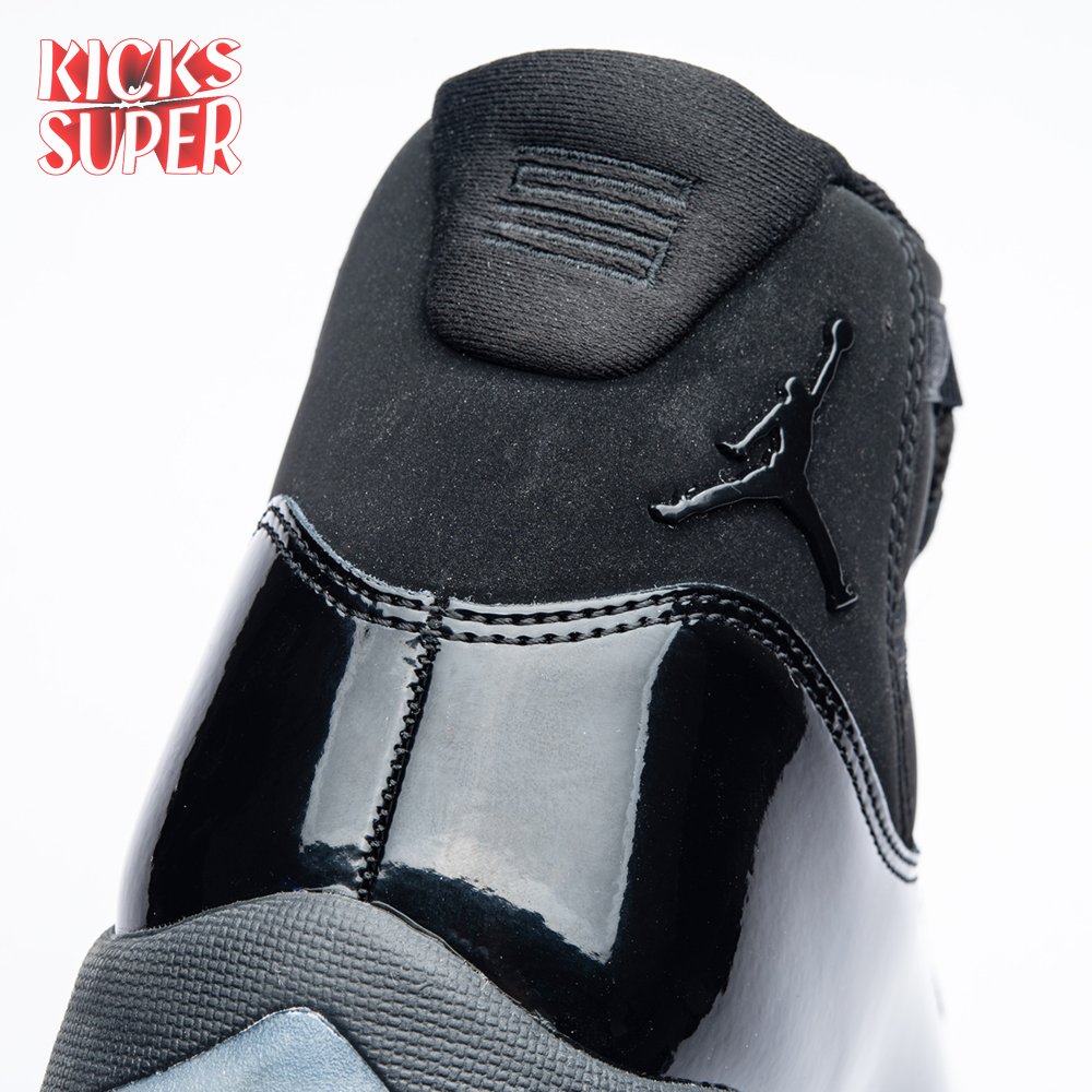 First teased in 2011 as a sample from the Air Jordan Blackout Collection, the Air Jordan 11 Retro 'Cap and Gown' was finally made available to the public in 2018. The name refers its formal look, designed to be worn for occasions such as graduation ceremonies"its laces are even inspired by graduation cords. The all-black model features a patent leather and premium nubuck upper atop an icy blue outsole.