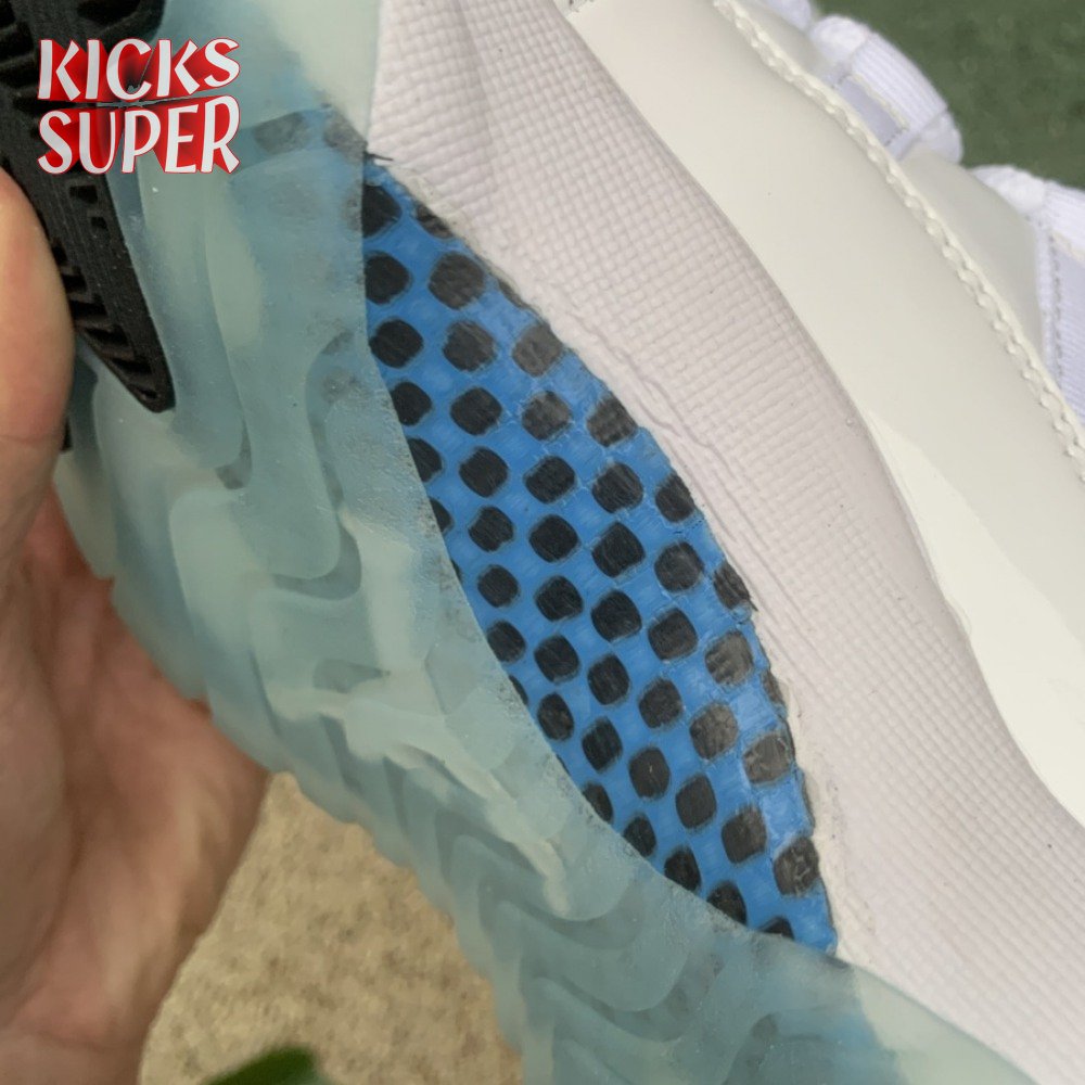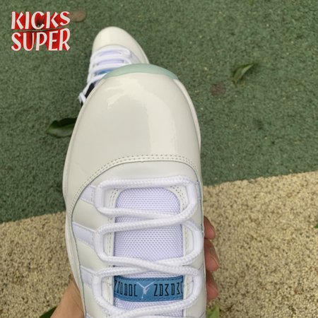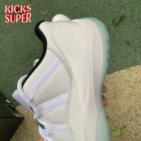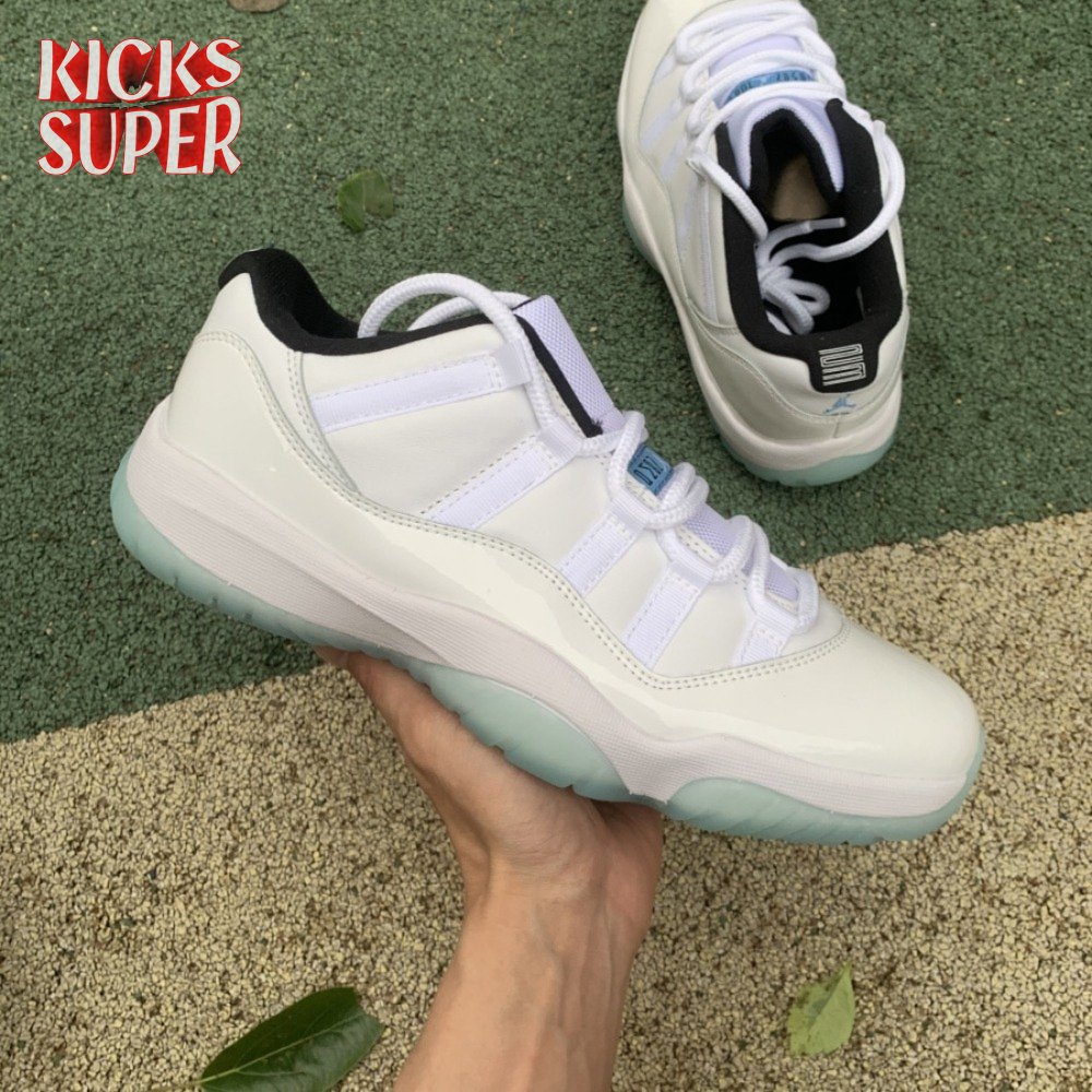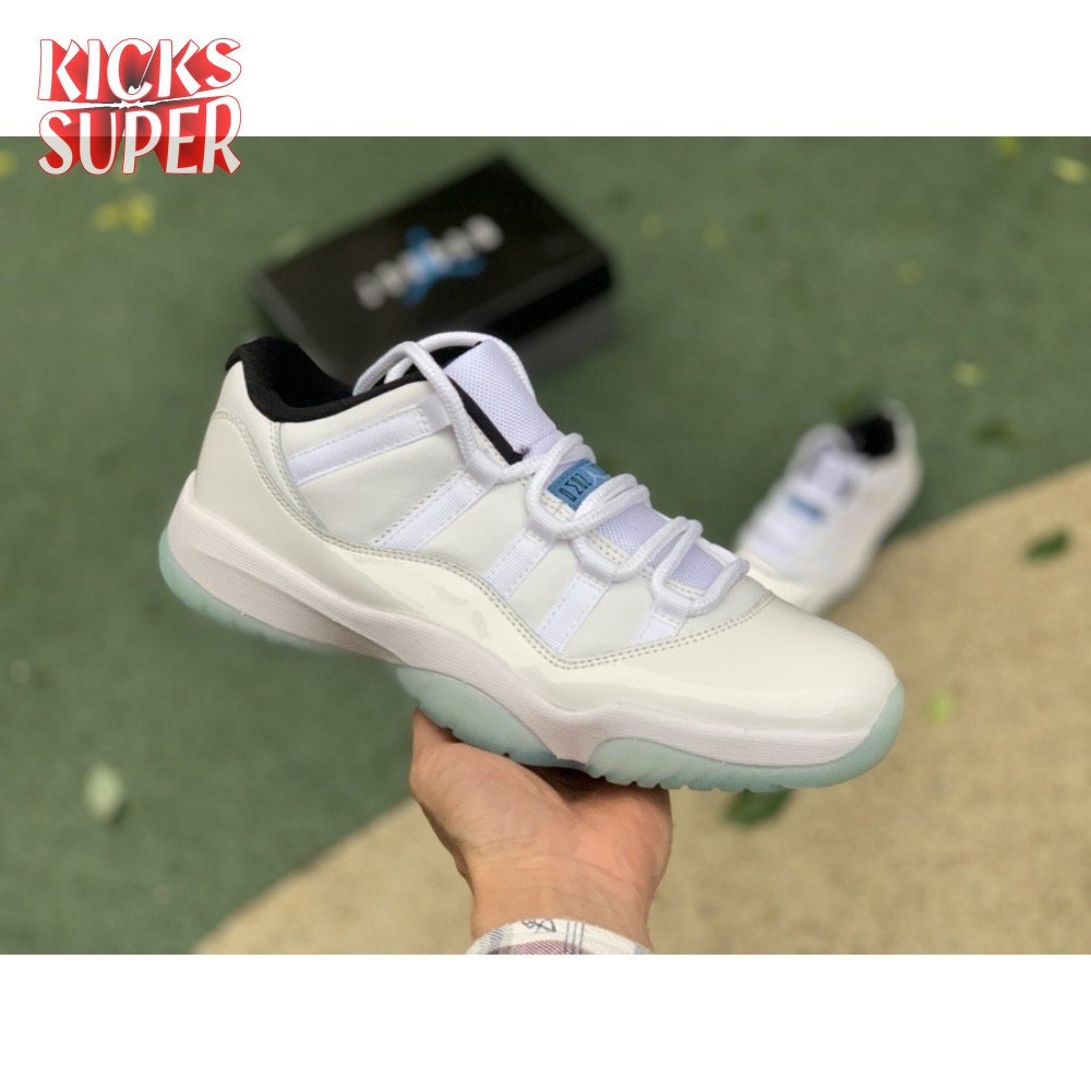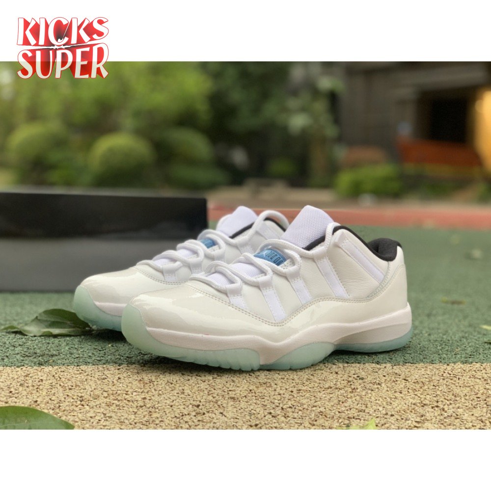 The Air Jordan 11 Retro Low "Legend Blue" delivers a low-top edition of the OG colorway that Michael Jordan unveiled at the 1996 NBA All-Star Game. The build is faithful to the original mid-top, featuring a white leather upper with a tonal patent leather mudguard and ballistic mesh tongue. A blue embroidered Jumpman at the heel gives the nod to MJ"s alma mater, while a "25" stamped on the sockliner references the 25th anniversary of the shoe"s worldwide debut.