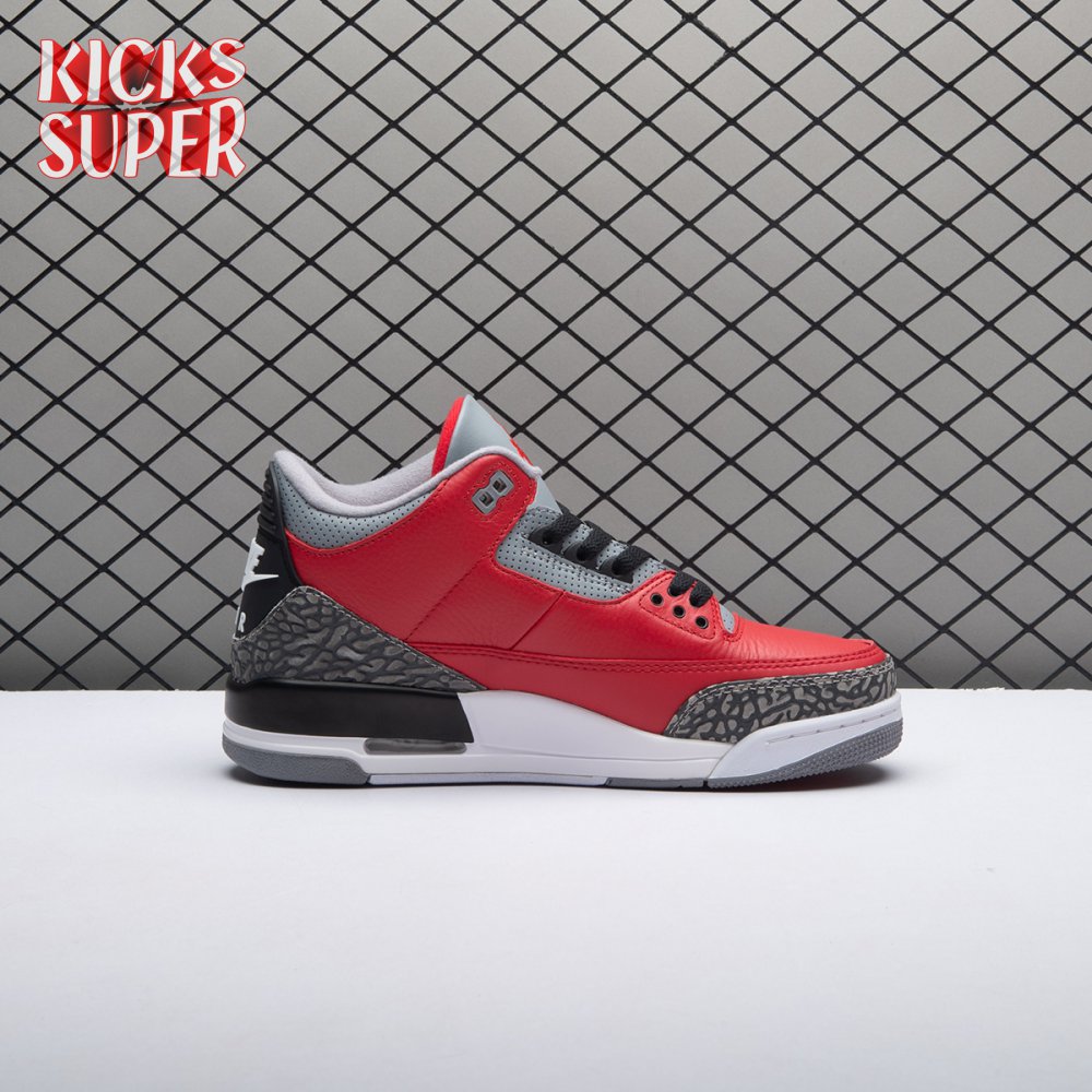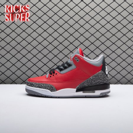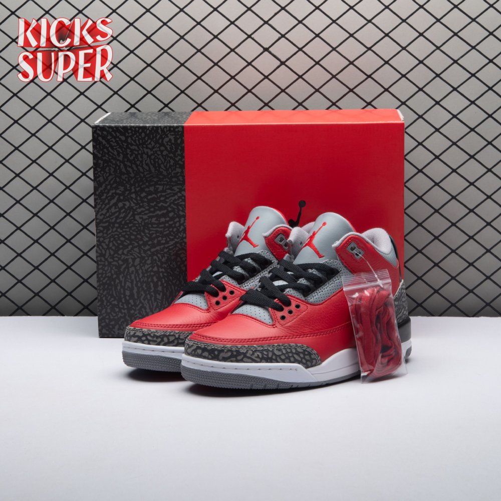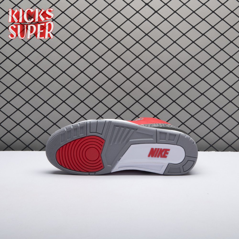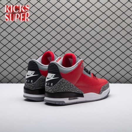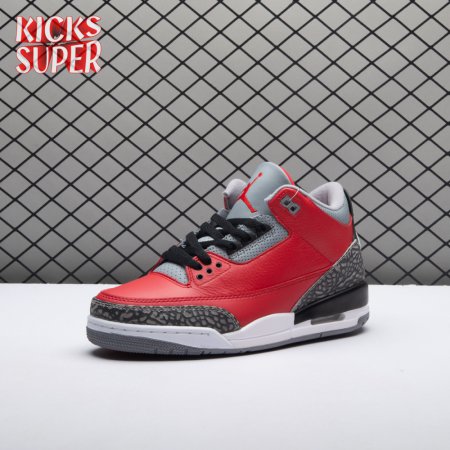 Dropping in conjunction with the 2020 NBA All-Star Weekend in Chicago, the Air Jordan 3 Retro SE 'Unite' showcases classic color blocking that stays true to the sneaker"s Windy City heritage. The tumbled leather upper is finished in a bold Fire Red hue, complete with Nike Air branding and grey cement-print overlays at the toe and heel. The mid-top is anchored by a contrasting white midsole with visible Air sole cushioning.