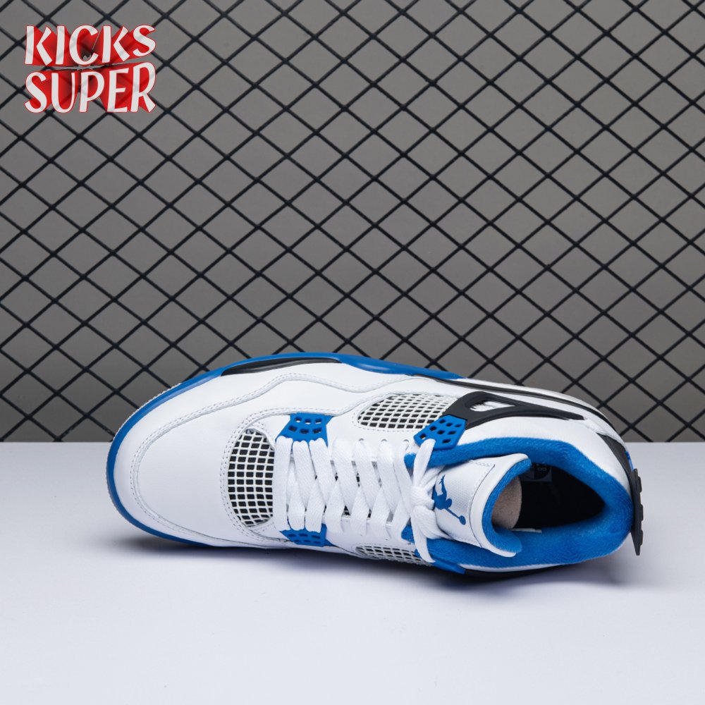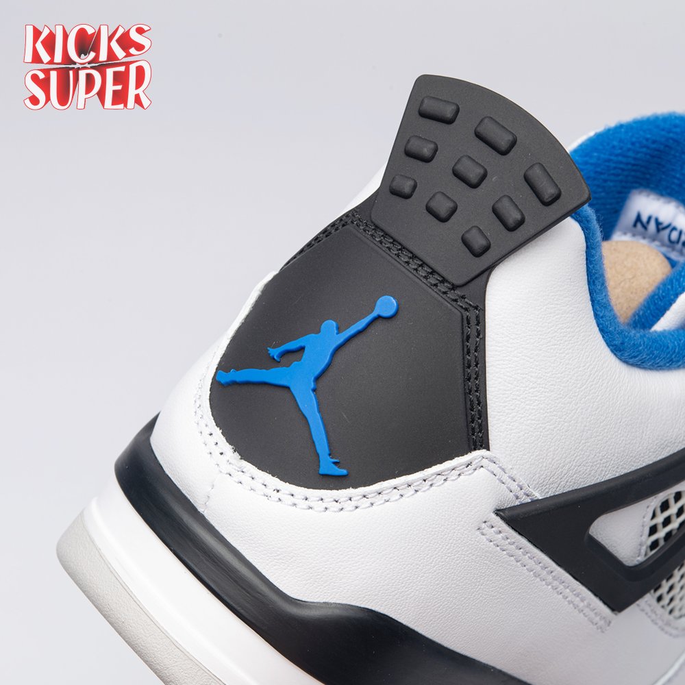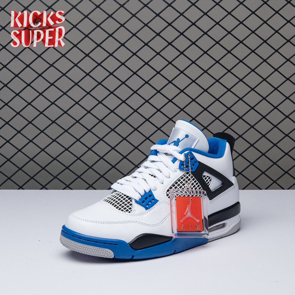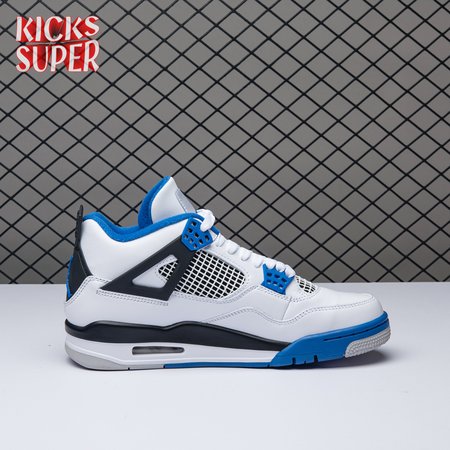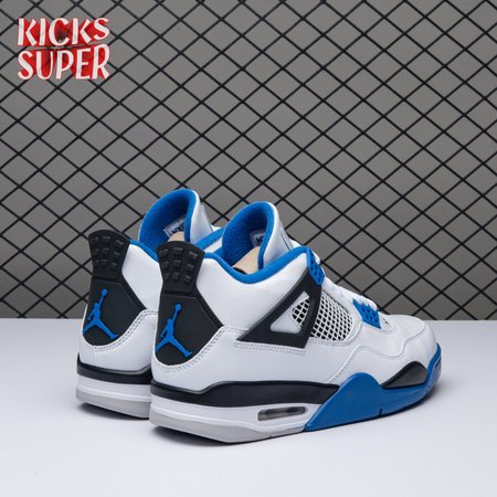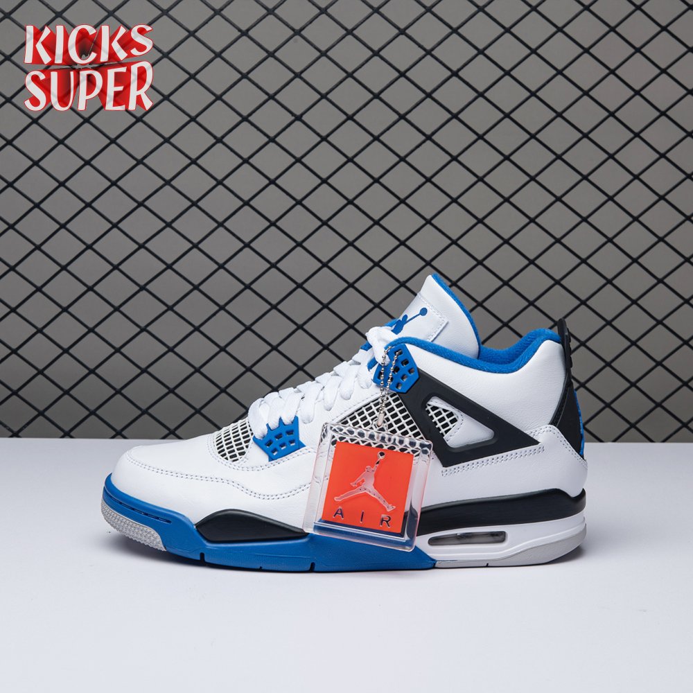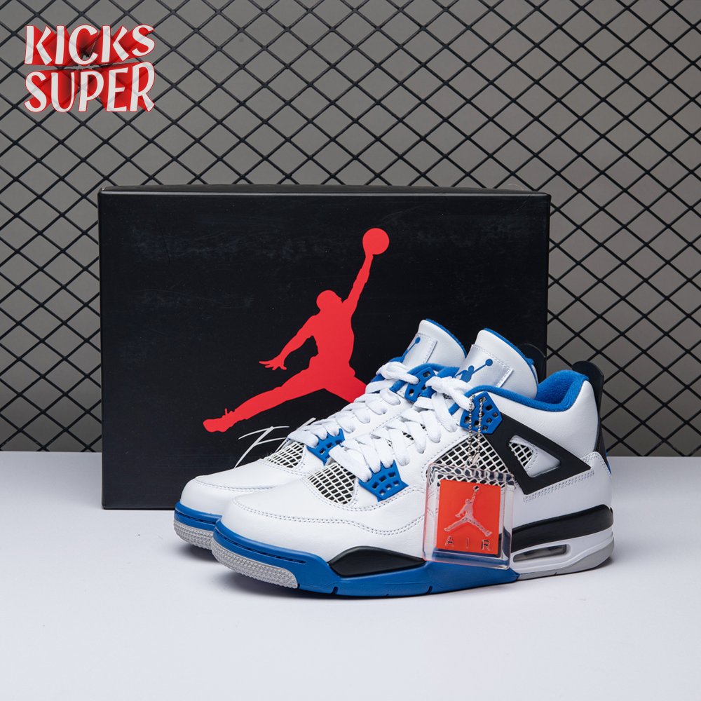 The Air Jordan 4 Retro "Motorsports" is inspired by a 2006 friends and family colorway created for the 4th anniversary of MJ"s Motorsport"s Racing team. Released to the general public in March of 2017, the sneaker incorporates the teams" white, black, and varsity royal blue colors, but removes the Mars Blackmon heel accent that graced the 2006 sneake. An Air Jordan 4 Retro 'Motorsports Alternate," released a few months later in a black colorway.