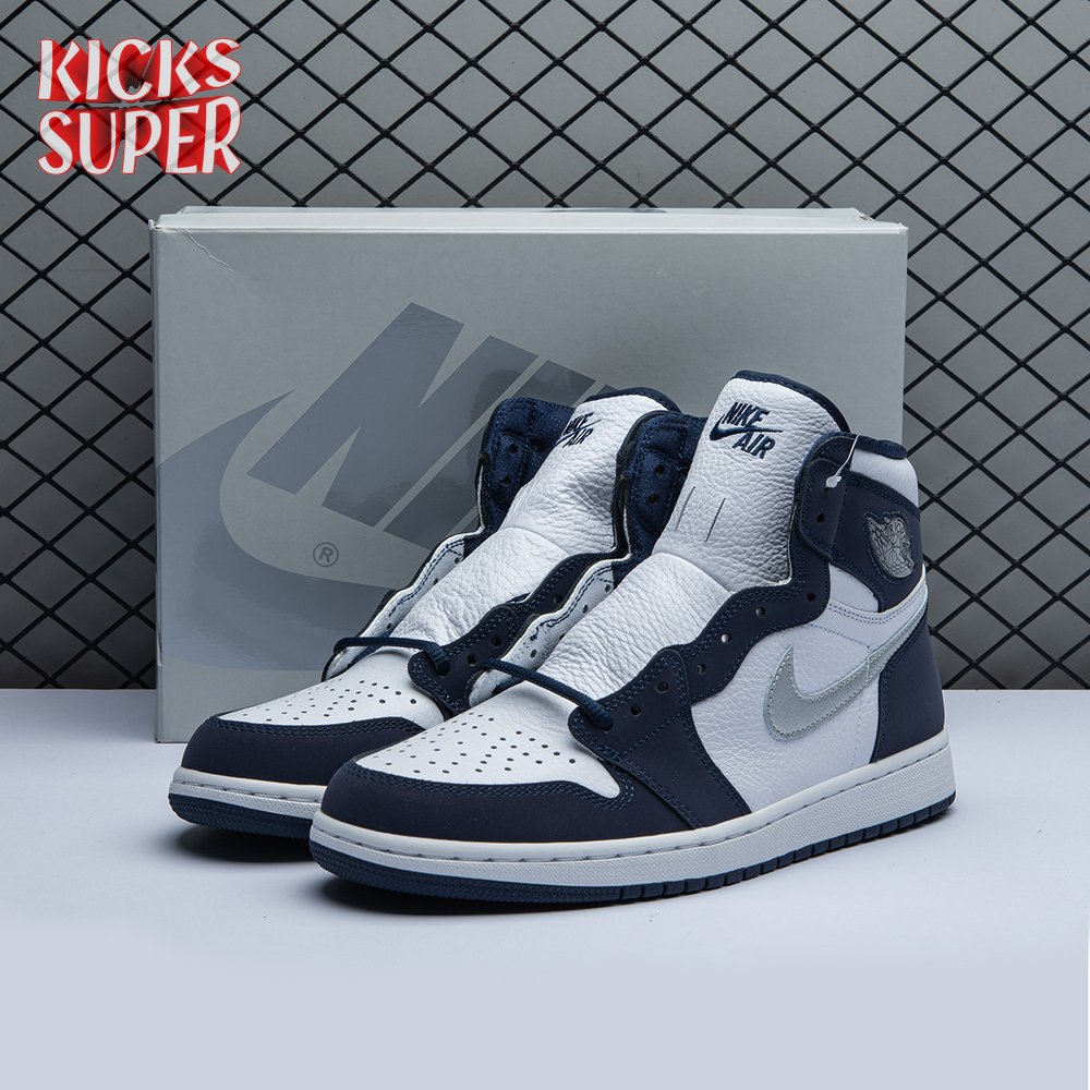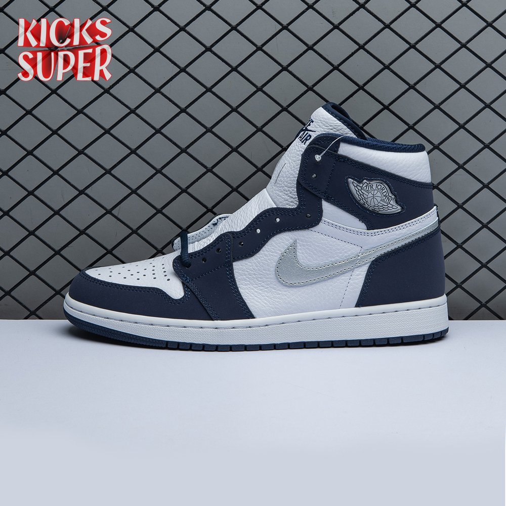 The 2020 reissue of the Air Jordan 1 Retro High CO.JP "Midnight Navy" brings back a Japan-exclusive colorway that first launched in 2001 in a limited run of just 3,000 pairs. Similar to the accompanying metallic silver edition, the shoe marks one of the first times that non-OG colors were featured on the high-top silhouette. Here, a white leather upper is accented with a silver Swoosh and navy nubuck overlays. A jeweled Wings logo adorns the lateral ankle, while Nike Air branding is embroidered across the tongue.