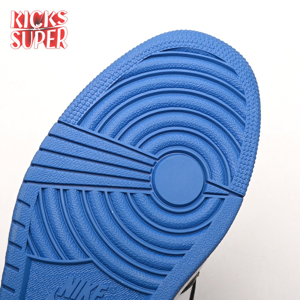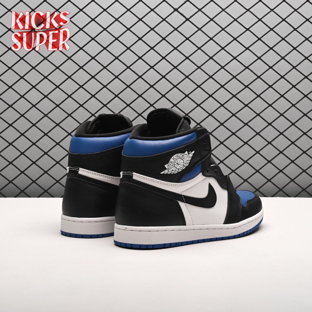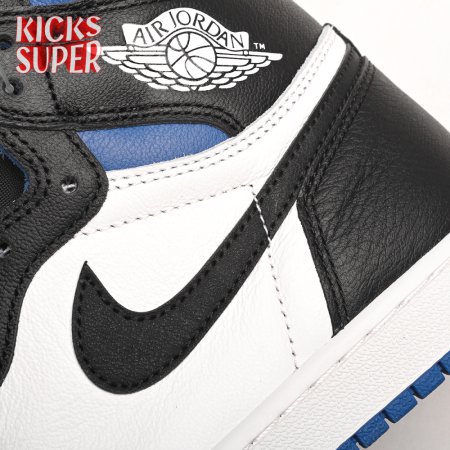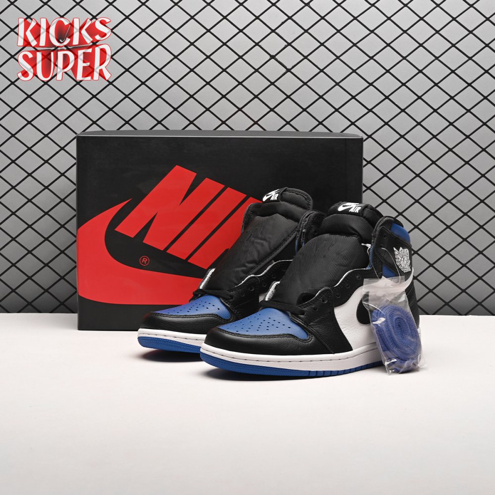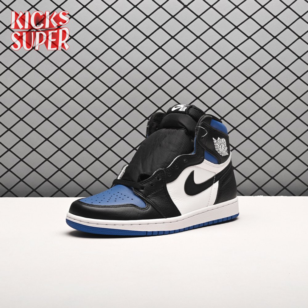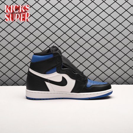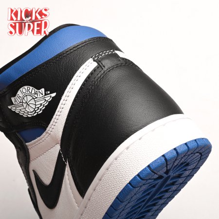 The Air Jordan 1 Retro High OG 'Royal Toe' applies a familiar blend of colors to the iconic silhouette. The all-leather upper features a white base with contrasting black overlays and pops of Game Royal at the collar, toe box and rubber outsole. A lightly padded nylon tongue in black is topped with a Nike Air tongue tag, while the classic Jordan Wings logo appears in white on the lateral collar flap.