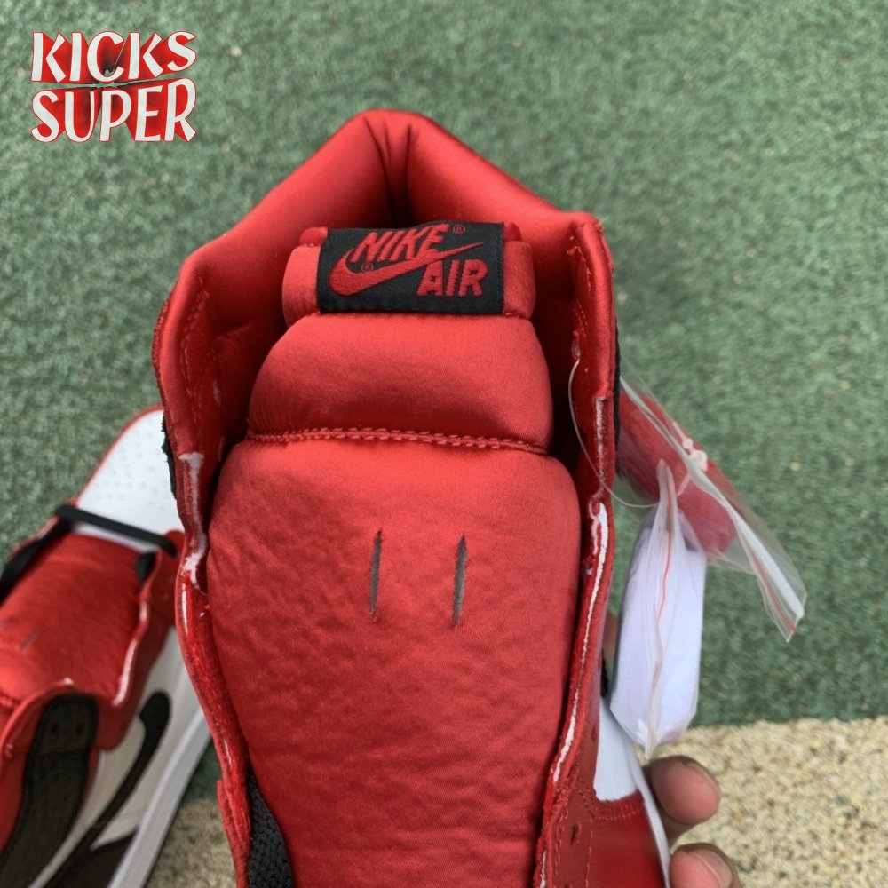 The women"s Air Jordan 1 Retro High OG "Satin Red" is the sequel to the women"s "Satin Black Toe" release from 2019. This pair features the same Chicago-based palette as its predecessor but the color blocking is flipped, so that the forefoot is finished in red and the heel and collar overlays are rendered in basic black. The latter two components " along with the Swoosh " are embellished with a snakeskin texture, while satin is utilized on the tongue and interior lining.
