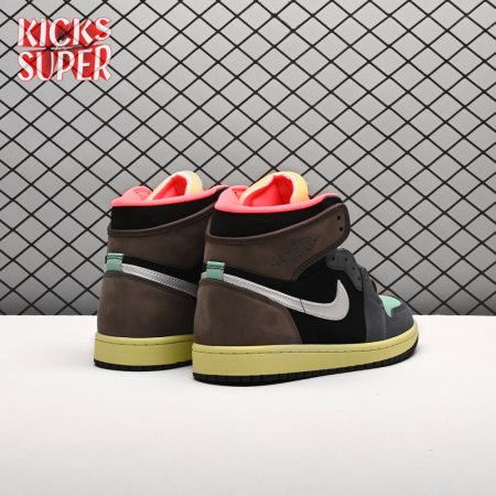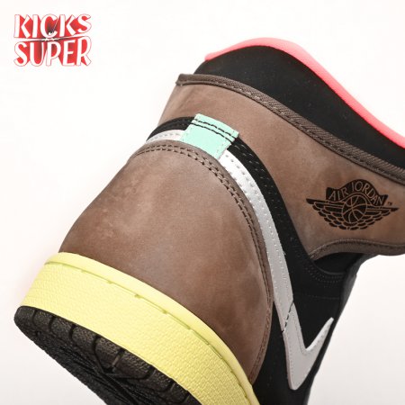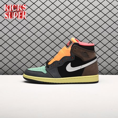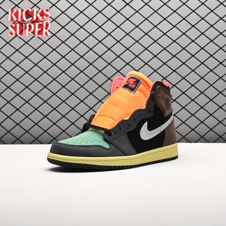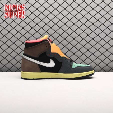 Inspired by Japan"s capital city, the Air Jordan 1 Retro High "Tokyo Bio Hack" features color blocking that recalls Undefeated"s Nike Dunk High NL collaboration from 2005. The leather and suede upper brings together an eclectic mix of colors, including rustic earth tones, eye-catching vibrant hues and a lone pop of metallic silver on the signature Swoosh. A painted midsole combines with a stitched Nike tag atop the exposed foam tongue for a unique DIY aesthetic.