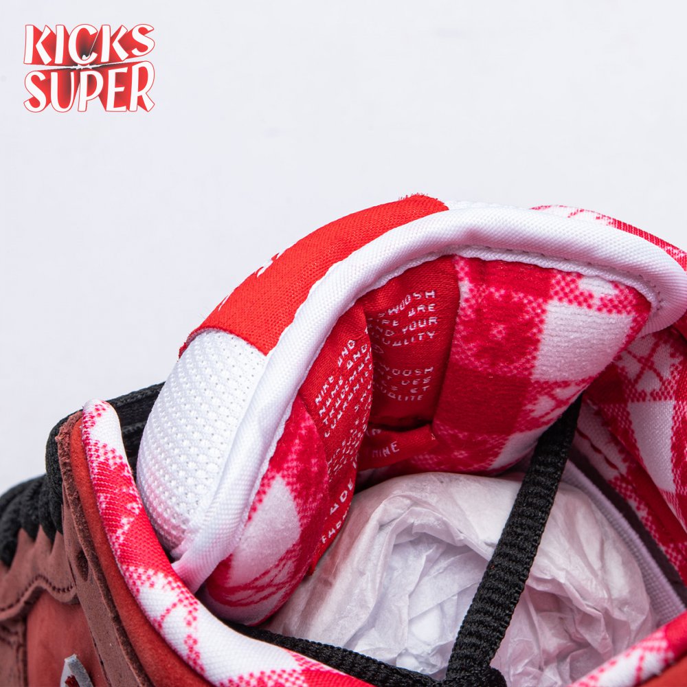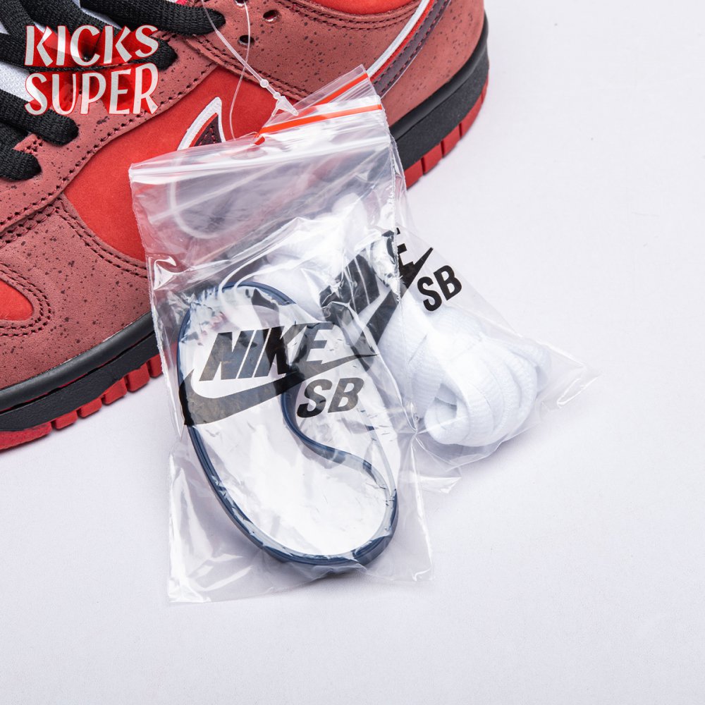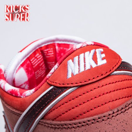 Boston based Concepts and Nike SB used lobster dinner as inspiration for this exclusive colorway. The Dunk Low Premium SB 'Lobster' features a soft suede upper dressed in an alternating Pink Clay and Sport Red color scheme as a nod to the crustacean"s iconic colors. The sneaker also boasts an oversized leather Swoosh, bib-inspired insole and sock liners and a bright blue wristband around the toe, which alludes to the blue elastic bands placed around a lobster's claws.