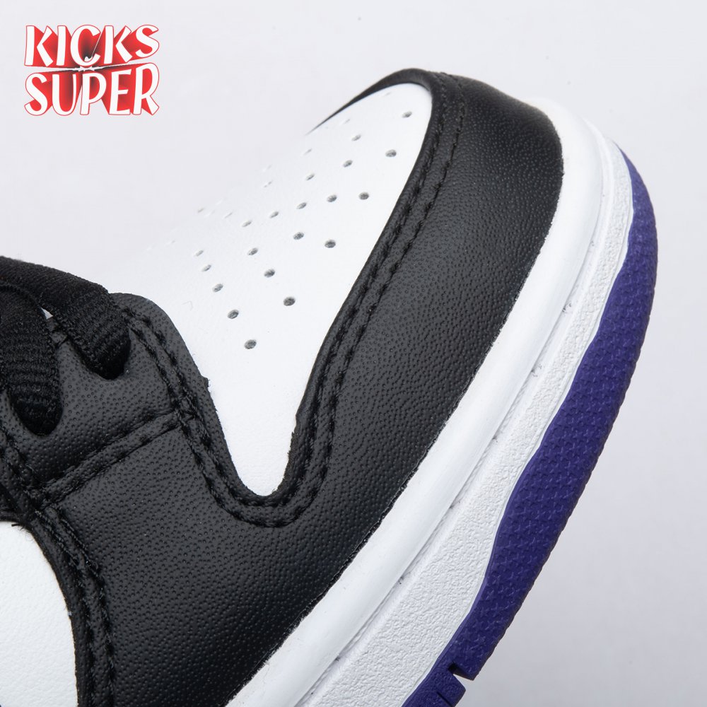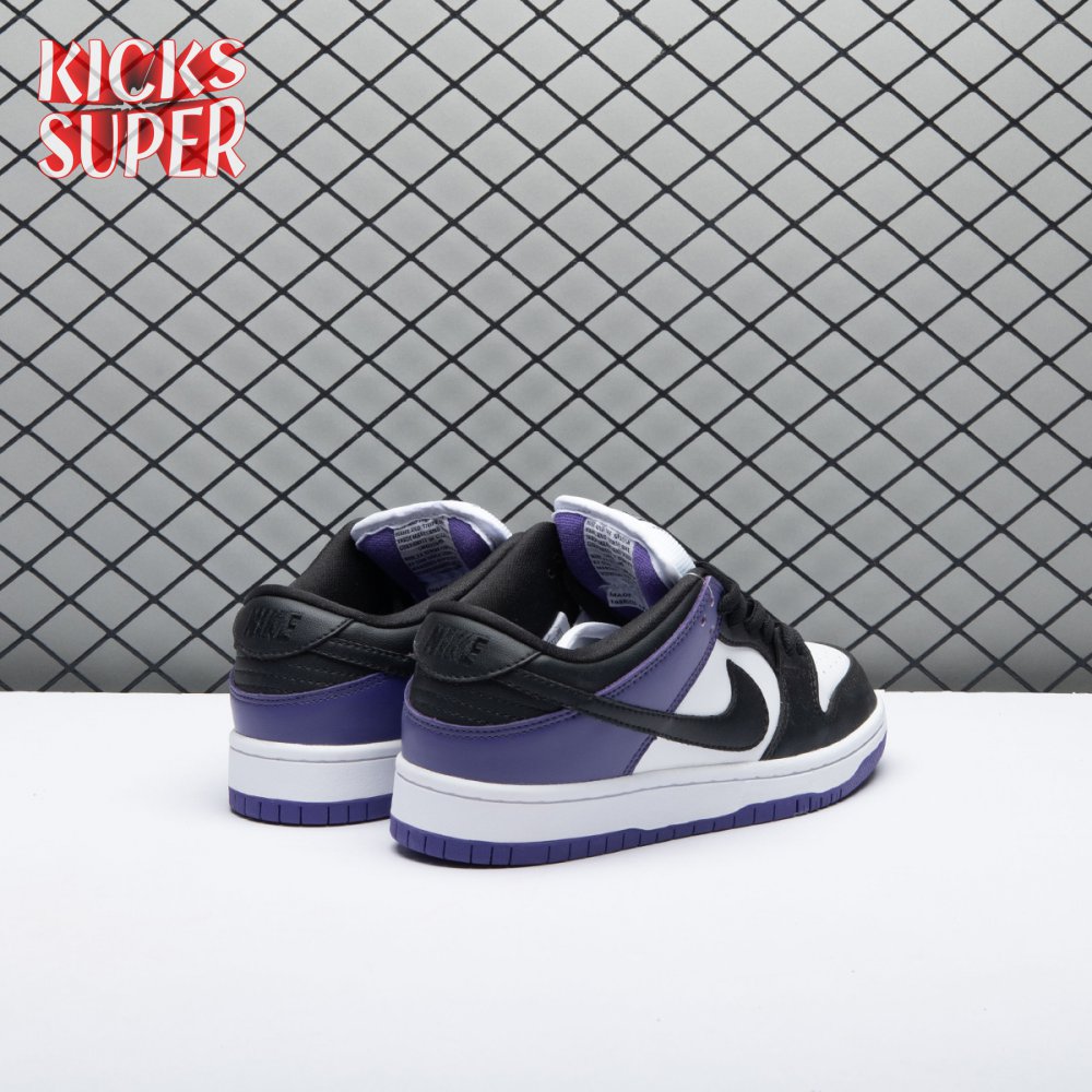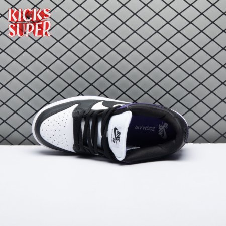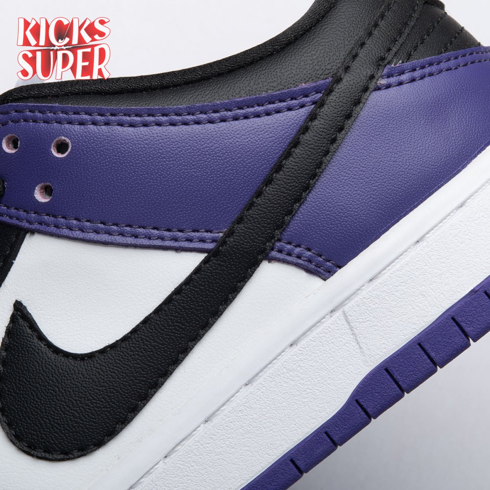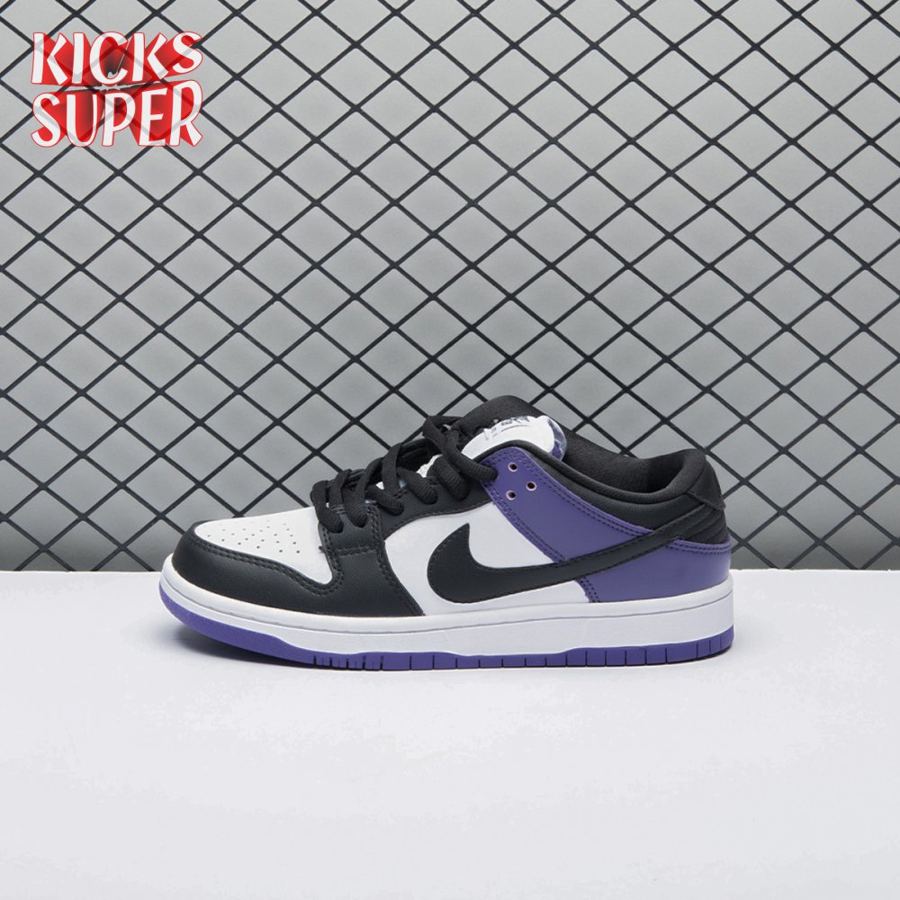 The Nike Dunk Low SB "Court Purple" delivers a straightforward colorway of the classic silhouette, redolent of the brand"s pink and silver box eras. The low-top makes use of a white leather upper with contrasting black overlays on the forefoot, eyestay and collar. A heel overlay in Court Purple is matched by the rubber outsole, featuring a grippy traction pattern originally designed for the hardwood. Zoom Air cushioning in the sockliner combines with a stuffed tongue to provide enhanced comfort.