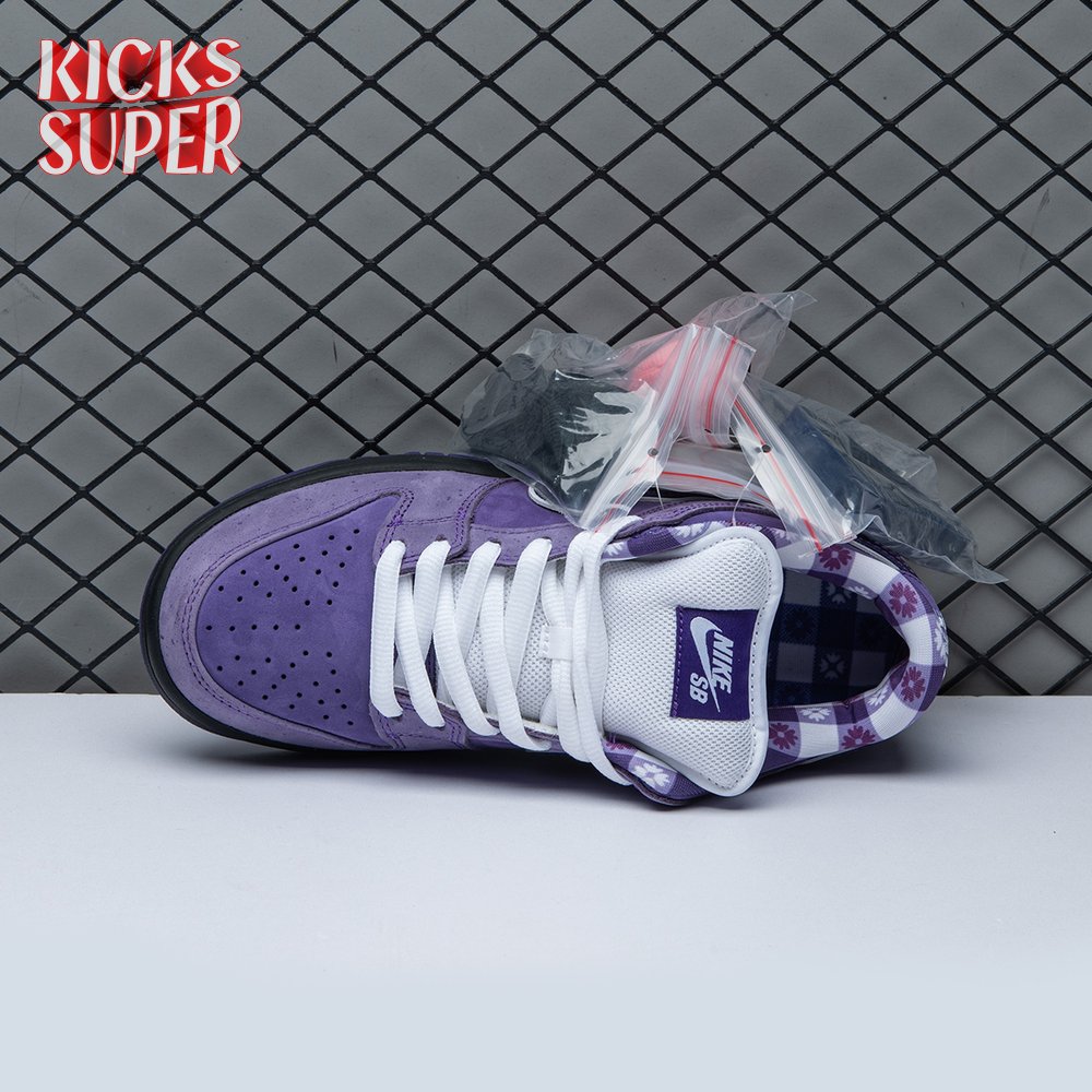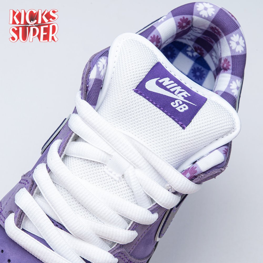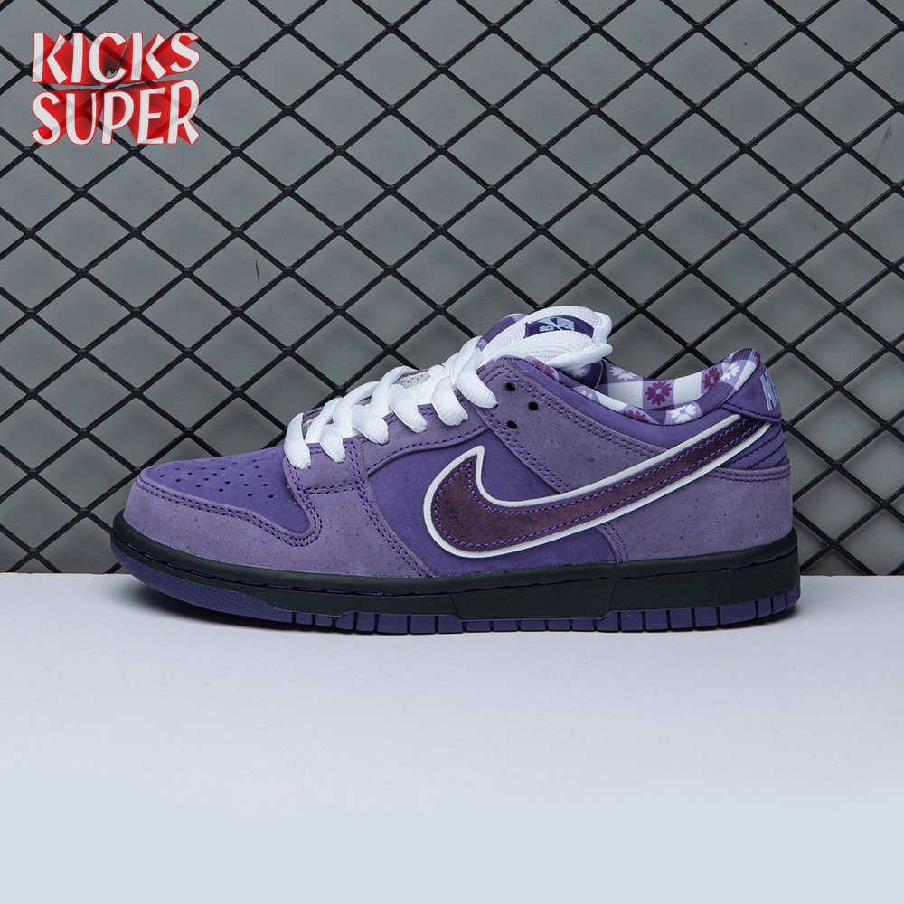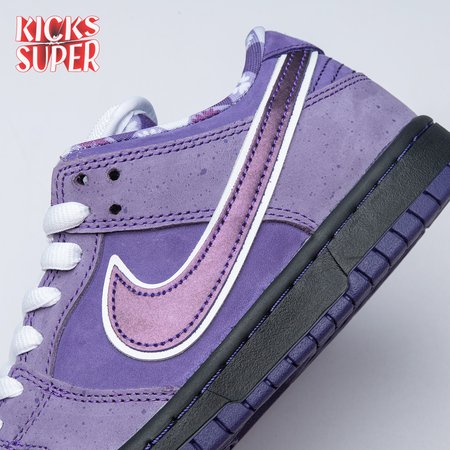 Concepts and Nike SB are back at it again, with a new iteration of the 'Lobster' inspiration. The Dunk Low Premium SB 'Purple Lobster' is similar to the three previous executions, inspired by odd color specimens found in nature due to genetic abnormalities that make their exoskeleton appear in different shades, such as yellow, blue and purple. Special details include a red and white plaid pattern on the lining, and an elastic band wrapped around the forefoot similar to how lobster claws are secured.
