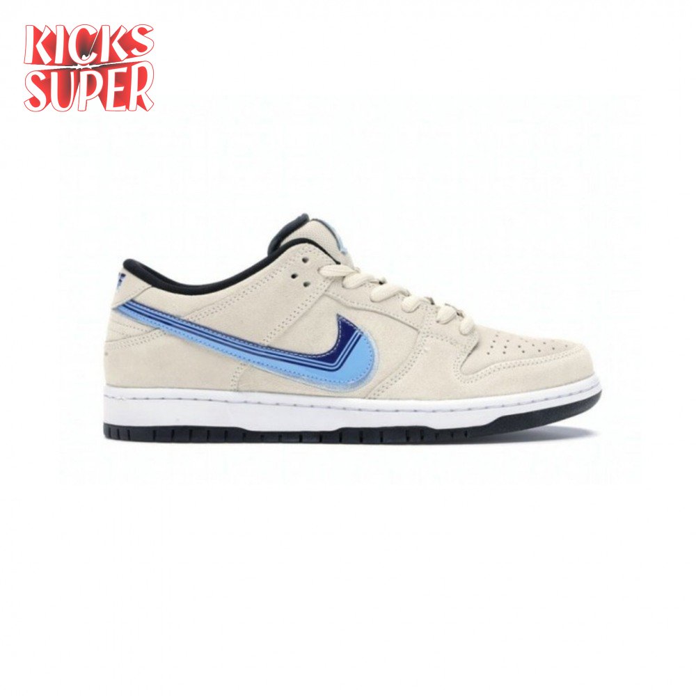 Dropping in January 2020 exclusively at select skate shops, the Dunk SB Low 'Tie-Dye Raygun - White' brings back a coveted design from Nike SB"s Pink Box era. The white colorway, released overseas in 2005 as the "away" version of the shoe, is updated with tie dye detailing in honor of the late Sandy Bodecker, the influential Nike executive who jumpstarted the brand"s skateboarding division. The embroidered graphic on the lateral heel gives the nod to the Roswell Rayguns, the fictional ABA team that starred in a 2002 Nike Basketball ad campaign.