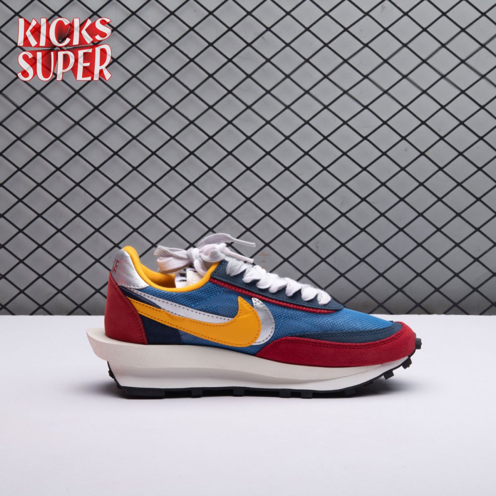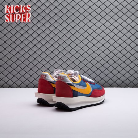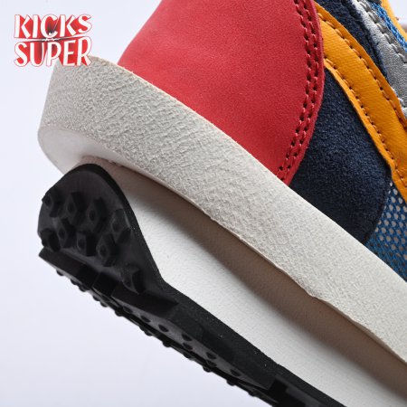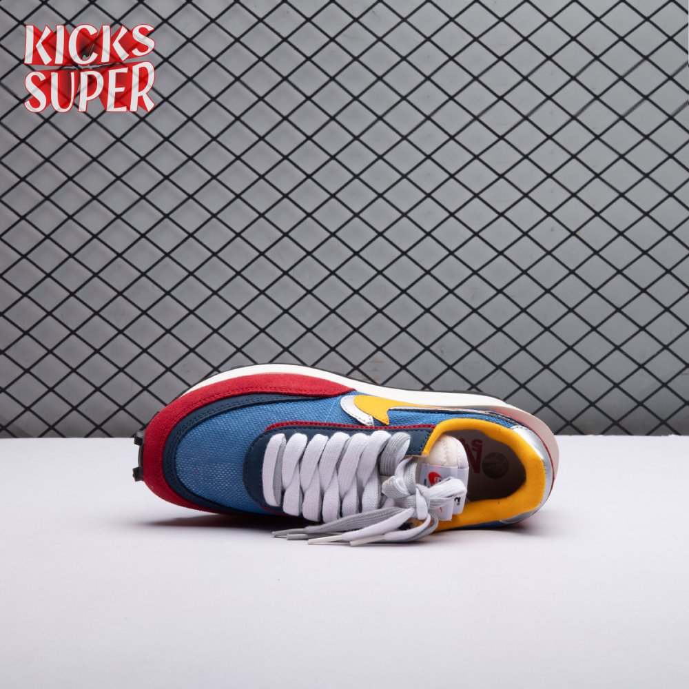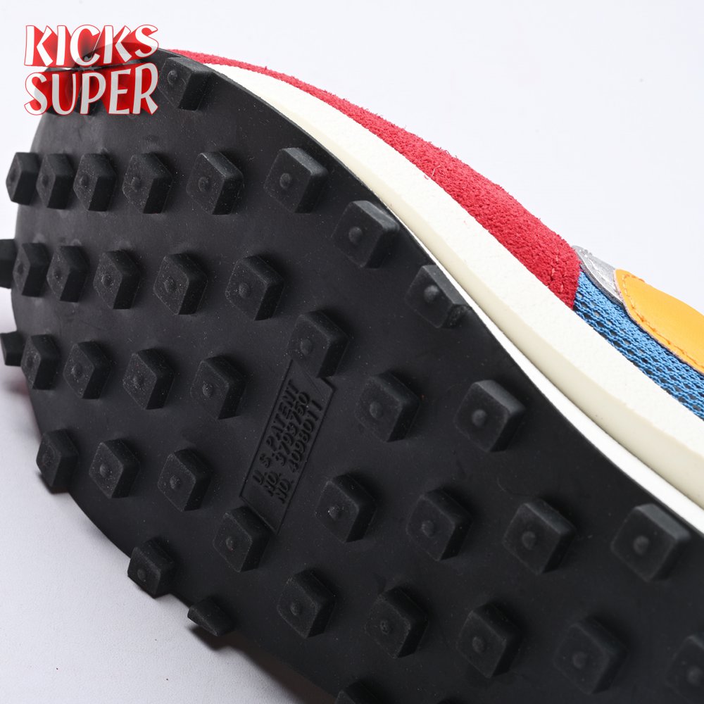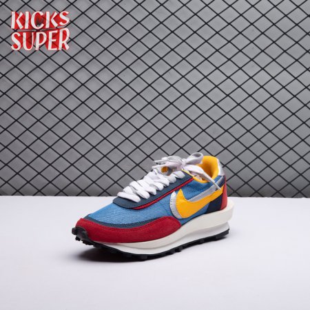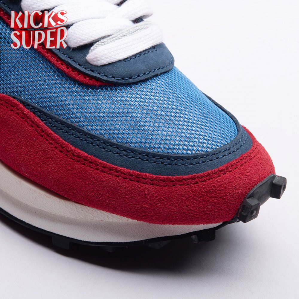 Sacai and Nike collaborate again, with the Nike LDWaffle emerging from Paris Fashion Week at the Sacai SP19 runway show. Featuring a unique hybridization technique, the shoe mixes two Nike runners from the archives: the Waffle Daybreak and the LDV. With two shoes coming together, a unique upper features a double Swoosh, double tongue, double heel counter, double eyestay and double laces. It"s set against a blue and red upper that mixes suede, leather and mesh while a sculpted midsole juts out past the heel, adding an extra element of crazy design lines on an already chaotic shoe. The classic waffle outsole brings everything together, while Nike and Sacai branding can be seen on the back heel and insole.
