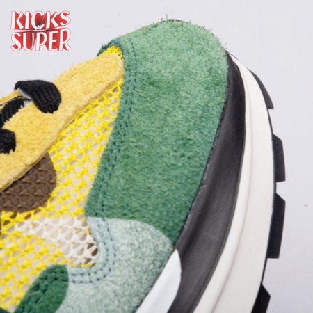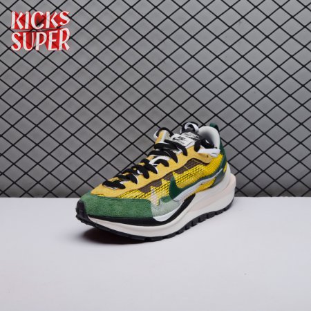 Made in partnership with the progressive Japanese fashion label, the Sacai x Nike VaporWaffle "Tour Yellow" picks up from where the brands" 2019 LDV Waffle collaboration left off. Like its predecessor, this pair doubles up on the tongue, laces and Swoosh branding. A breathable yellow mesh build, fortified with teal overlays in leather and suede, rides on a stacked midsole with split construction at the heel. Nike"s signature waffle outsole delivers grippy traction.