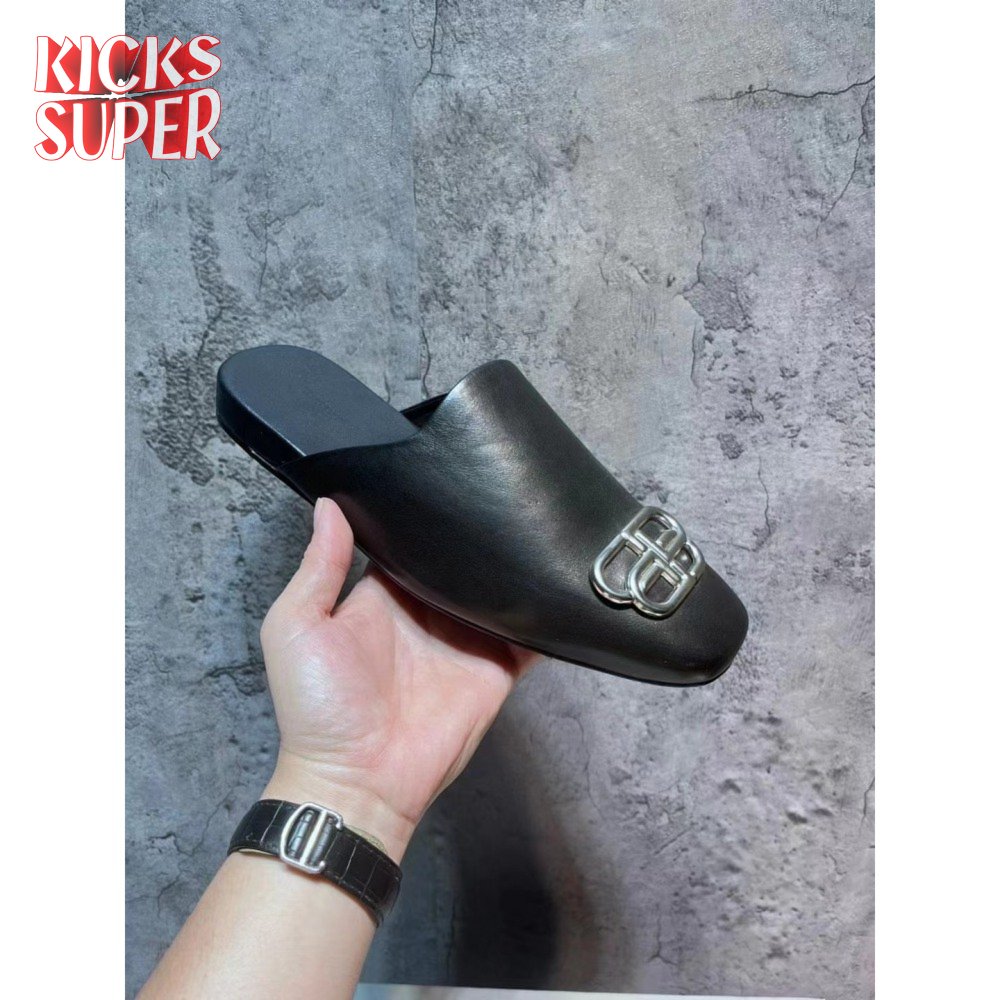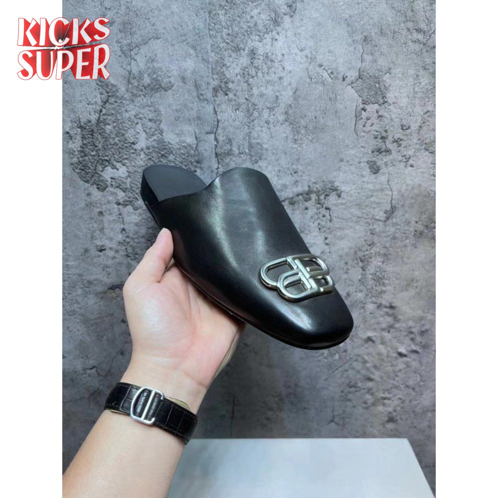 Balenciaga Cosy BB-Logo Mules in Smooth Calfskin