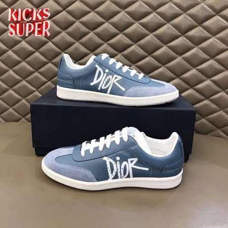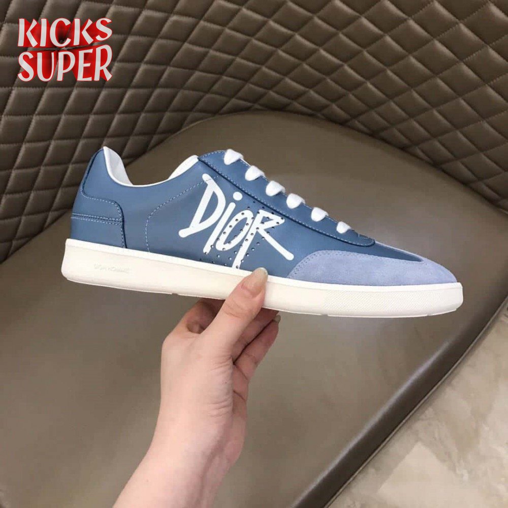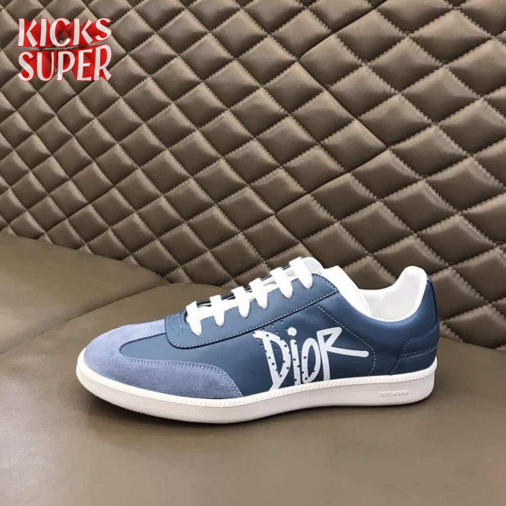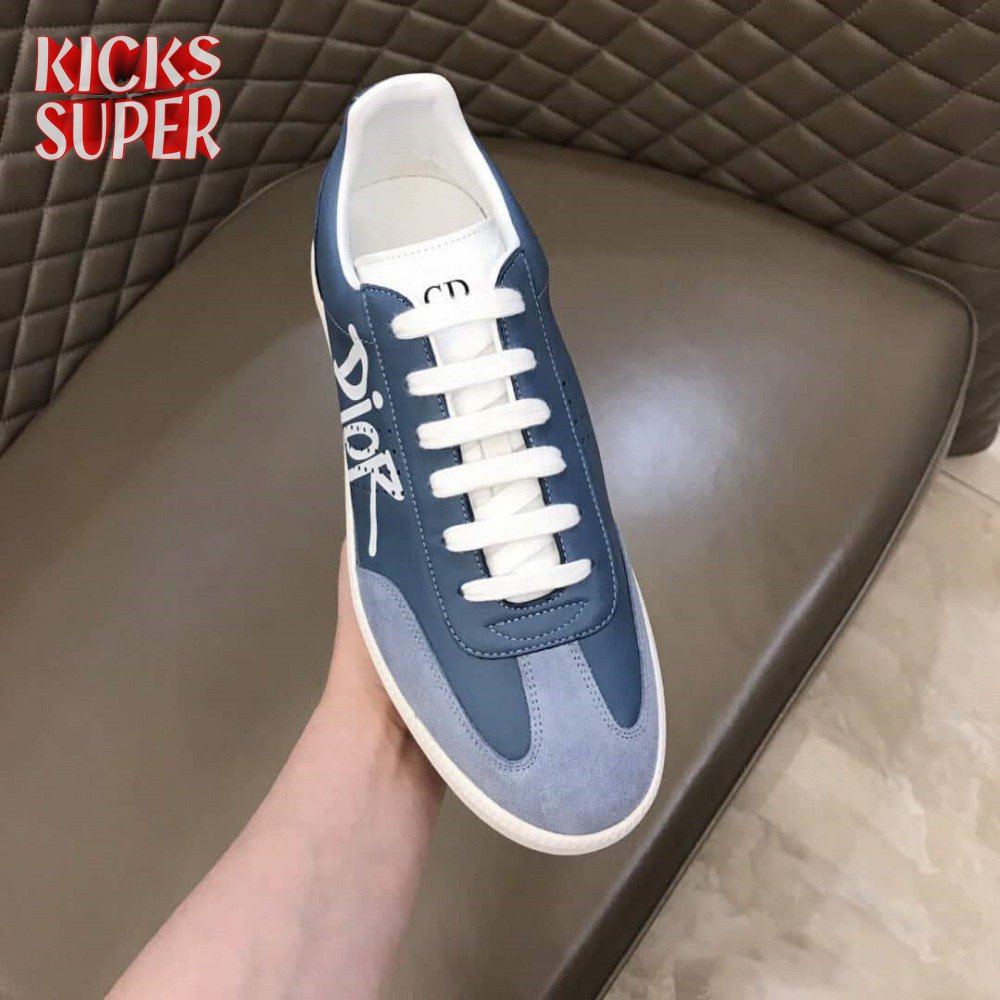 DIOR B01 SNEAKER BLUE SMOOTH CALFSKIN AND SUEDE WITH DIOR AND SHAWN SIGNATURE - CD57
