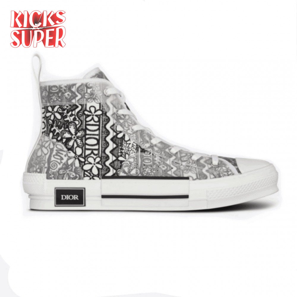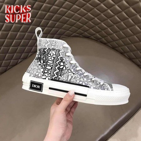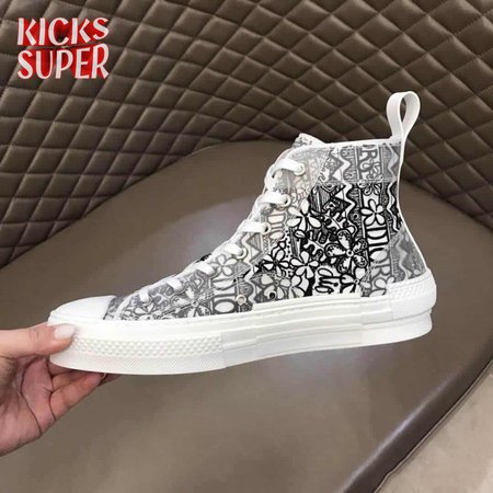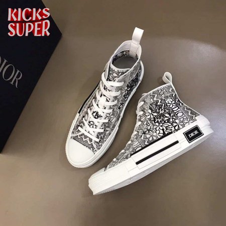 DIOR B23 HIGH-TOP SNEAKER WHITE CANVAS WITH DIOR AND SHAWN EMBROIDERY - CD73