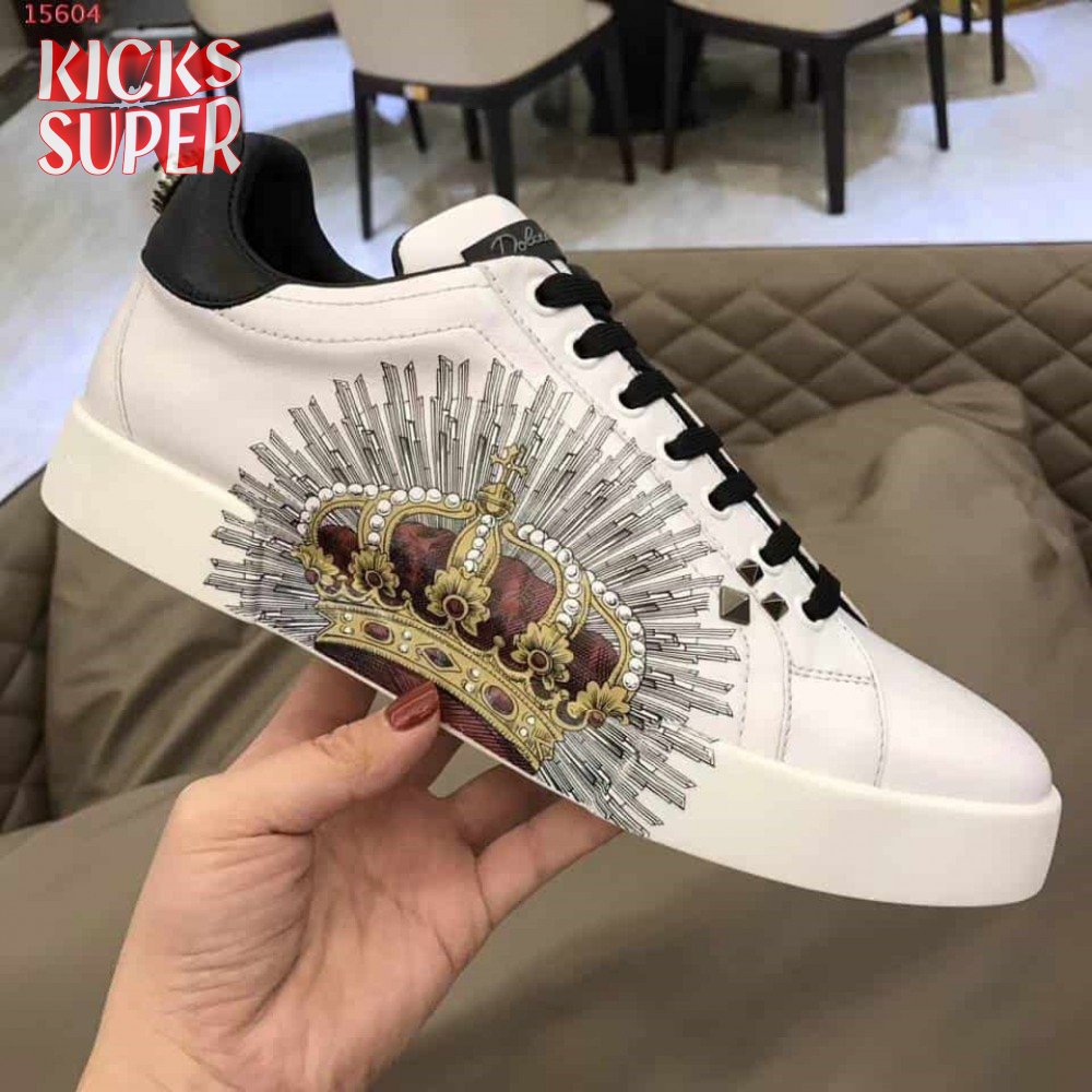 DOLCE & GABBANA PRINTED CALFSKIN PORTOFINO SNEAKERS - DG9