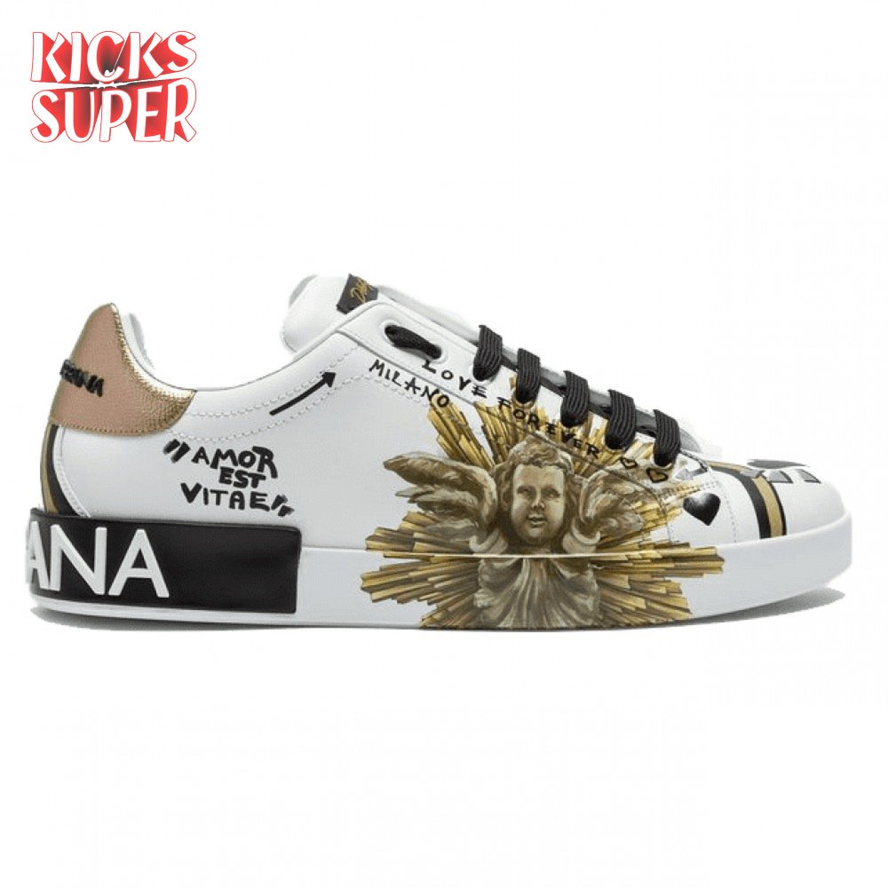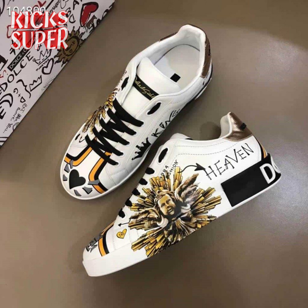 DOLCE & GABBANA PRINTED CALFSKIN PORTOFINO SNEAKERS - DG7