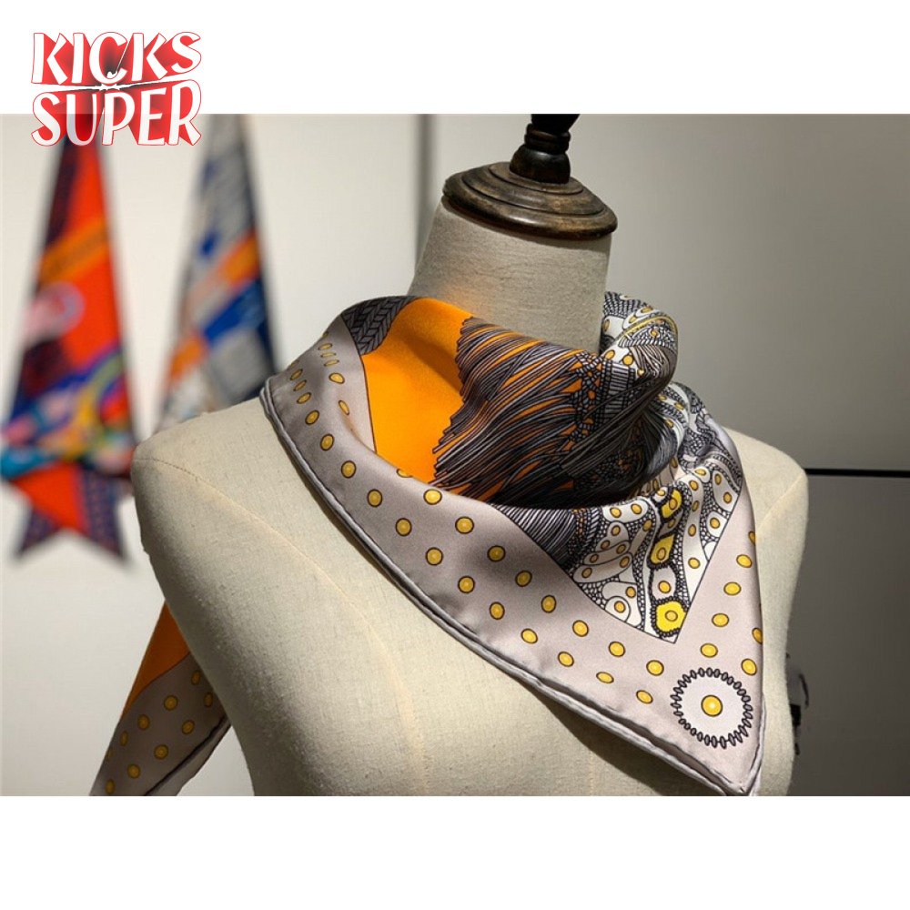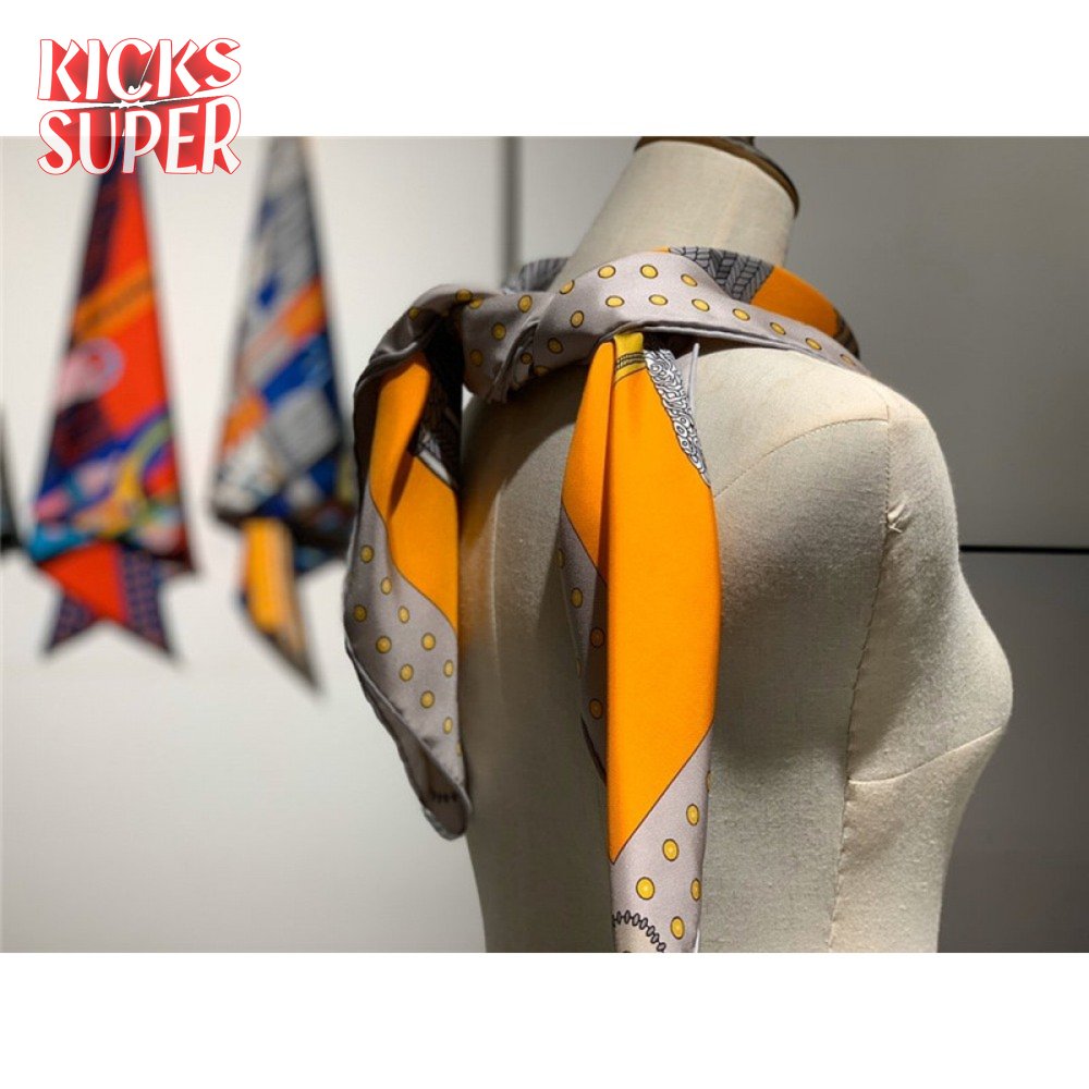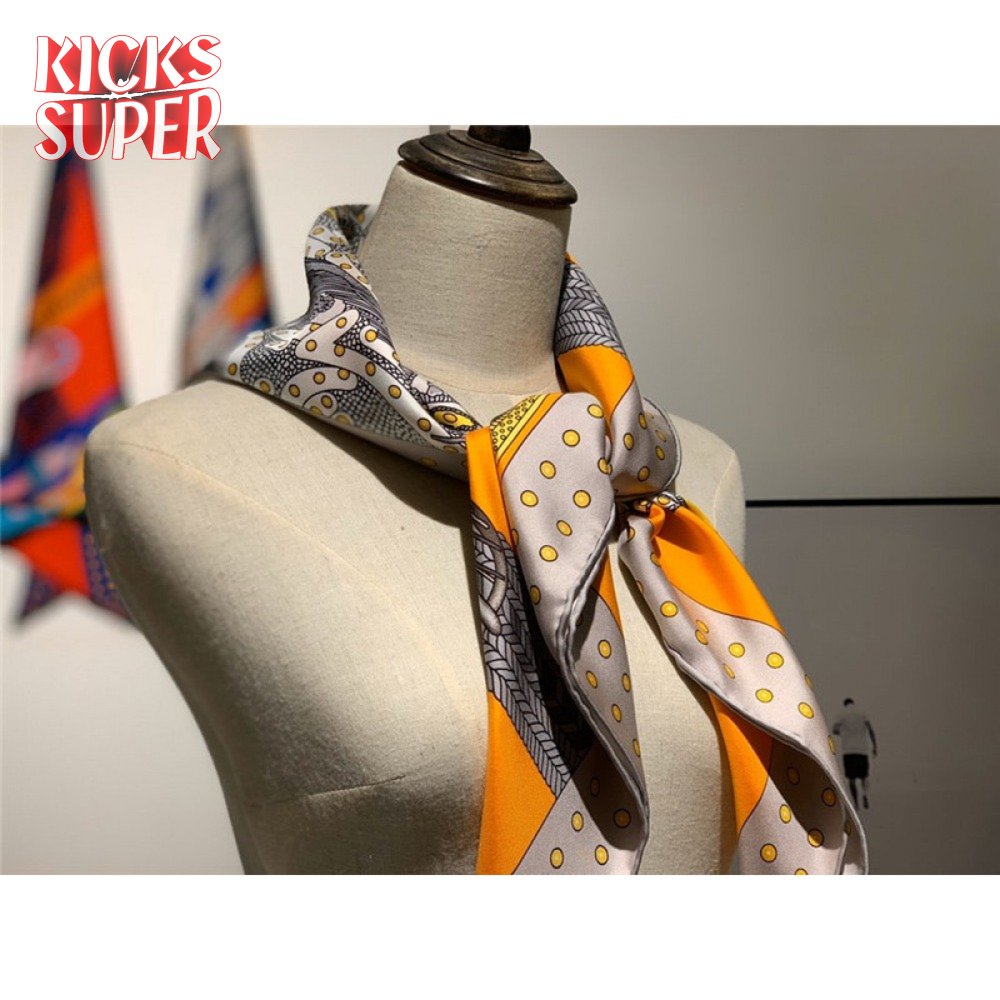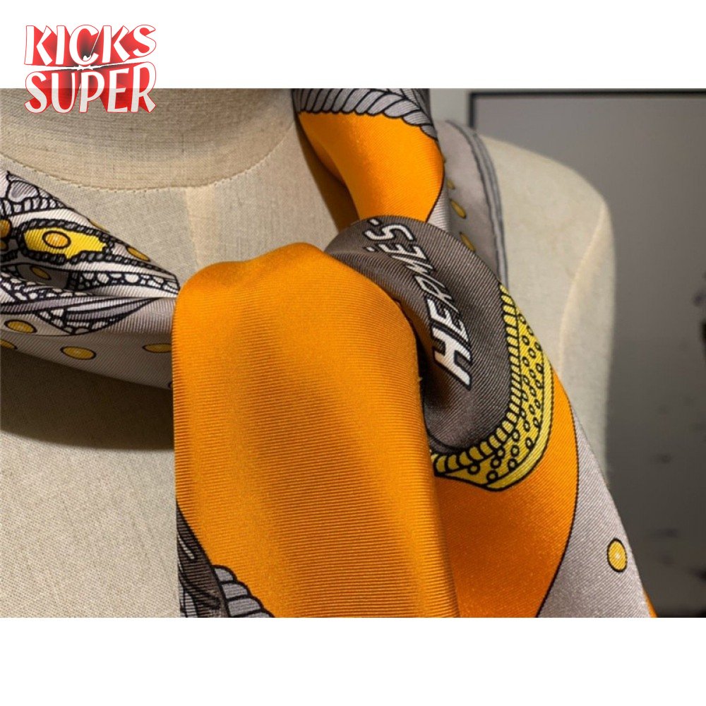 Hermes "Noble Saddle" Silk scarf Orange