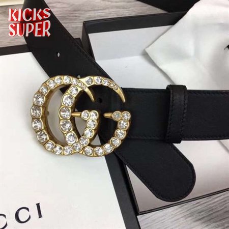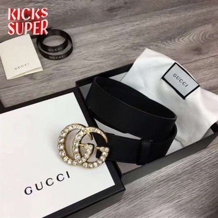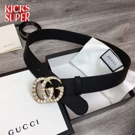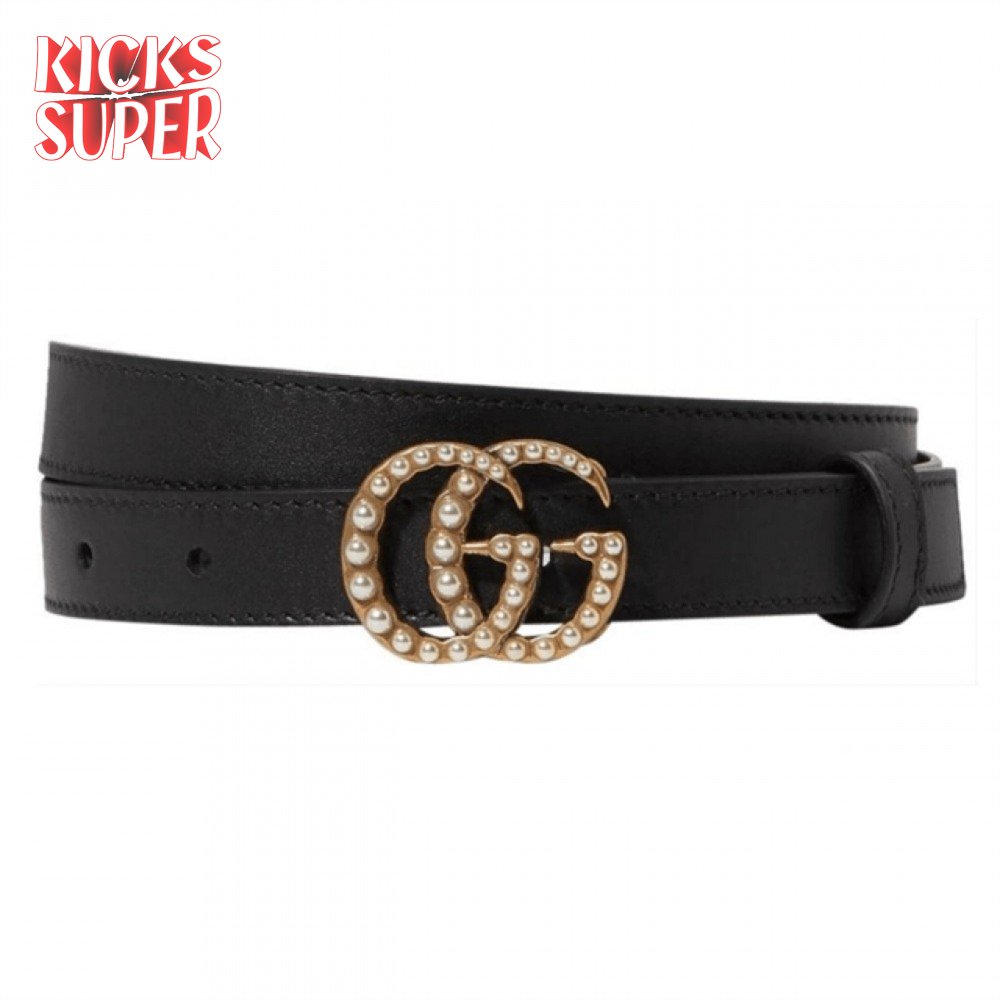 GUCCI BLACK FAUX PEARL-EMBELLISHED LEATHER BELT - B44