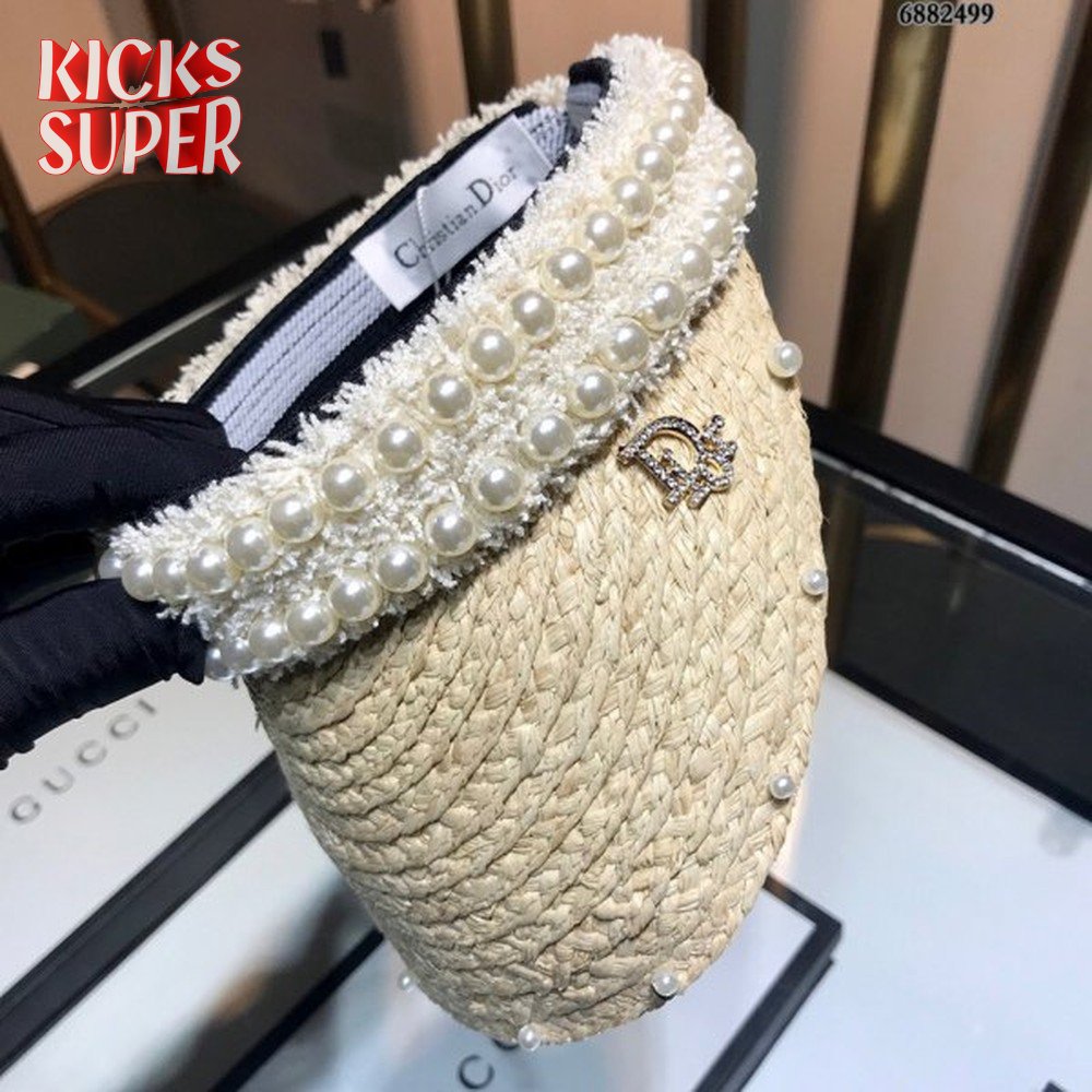Best Christian Dior Natural raffia splicing sun Empty top hat