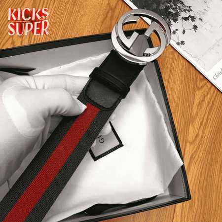 GUCCI MEN'S WEB STRIPED CANVAS BELT - B9