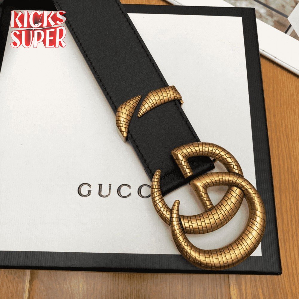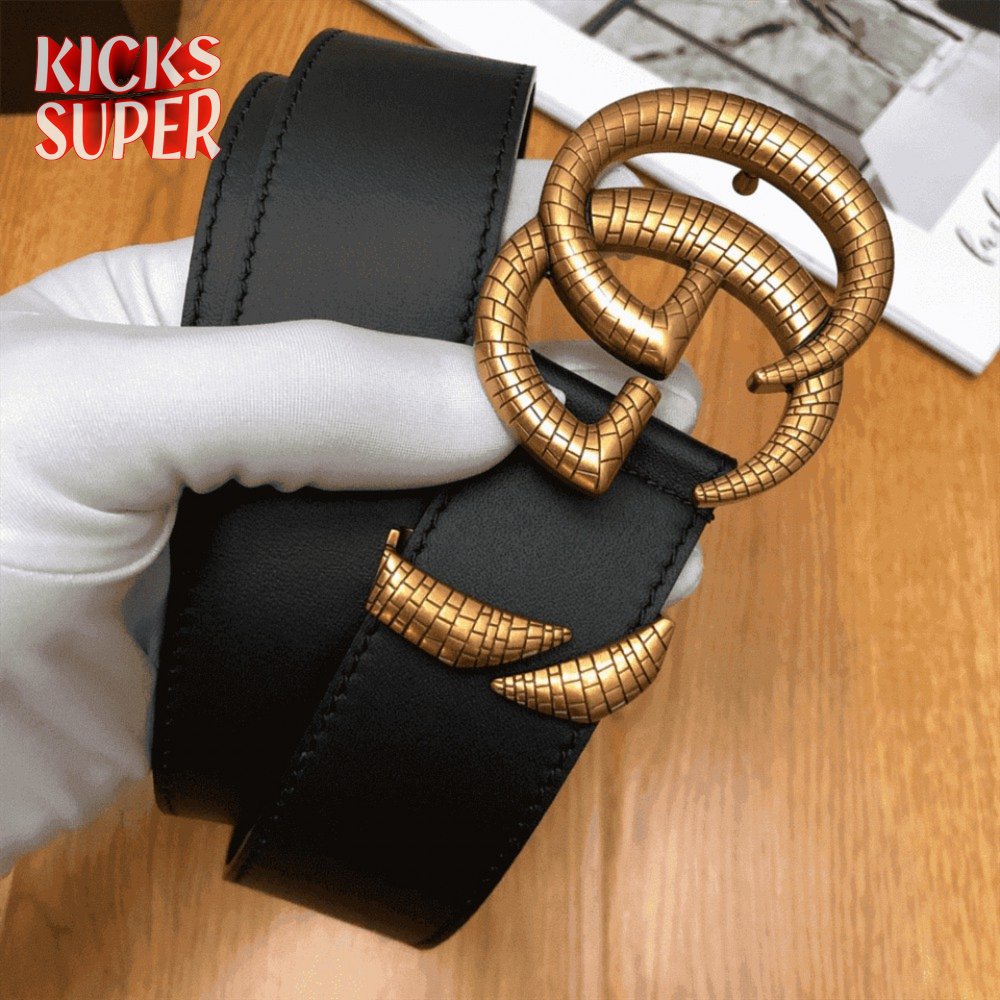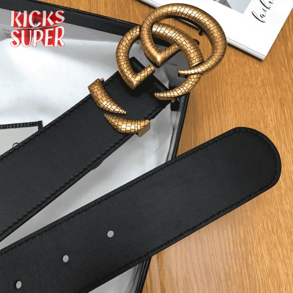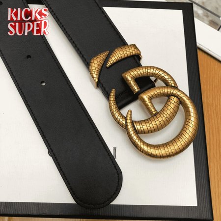 GUCCI LEATHER BELT WITH DOUBLE G BUCKLE - B11