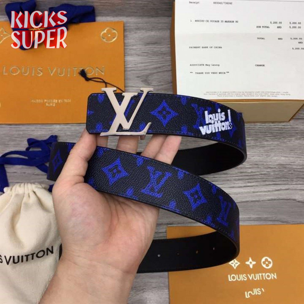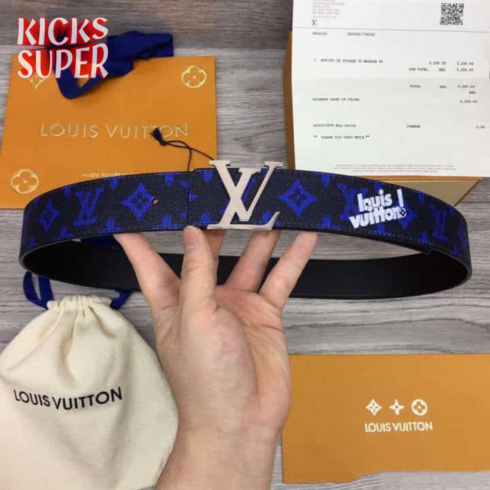 initiales everyday 40mm reversible belt blue monogram black calf leather - b79